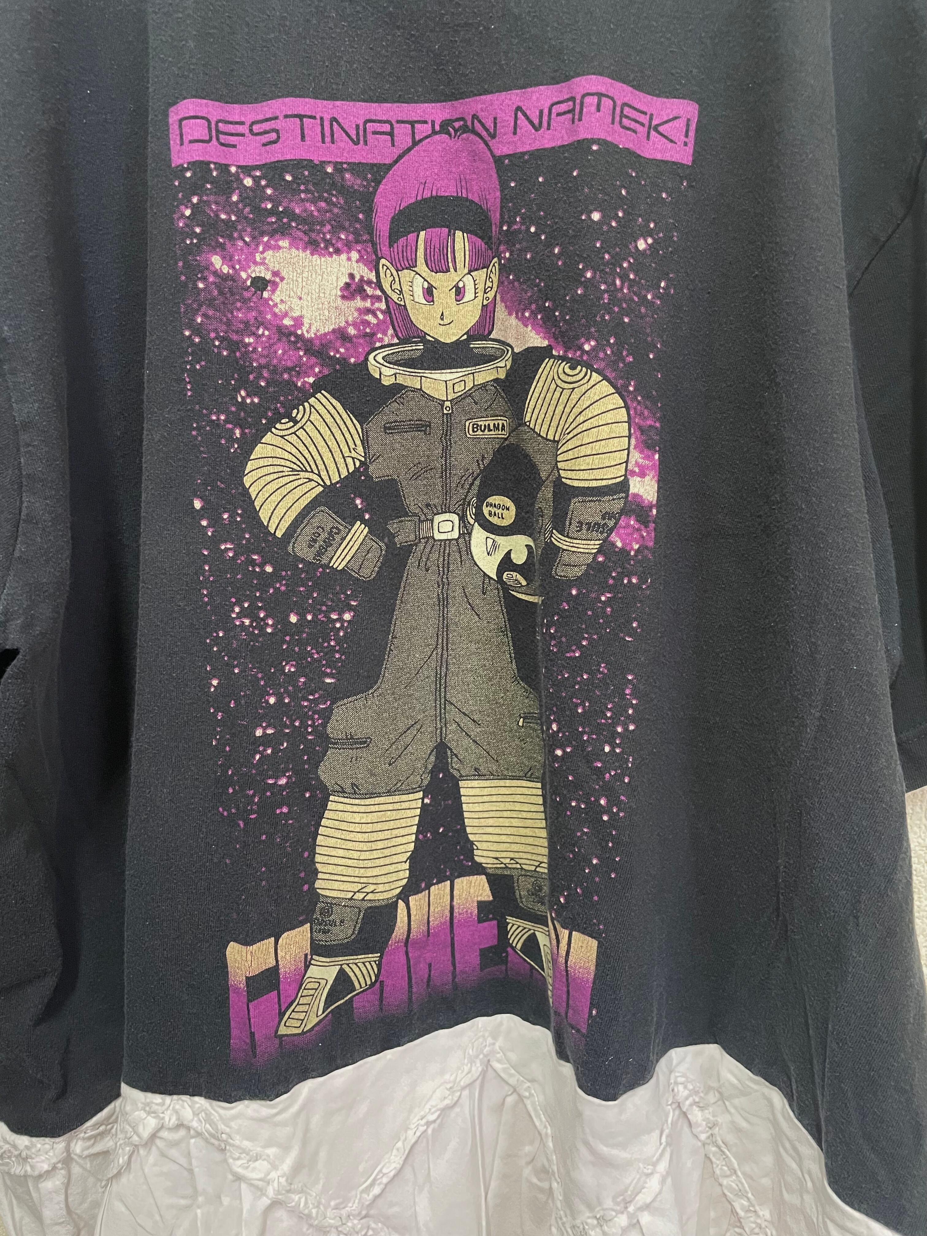 かわいい黒Tシャツに、白のフリルスカートを合わせています♬