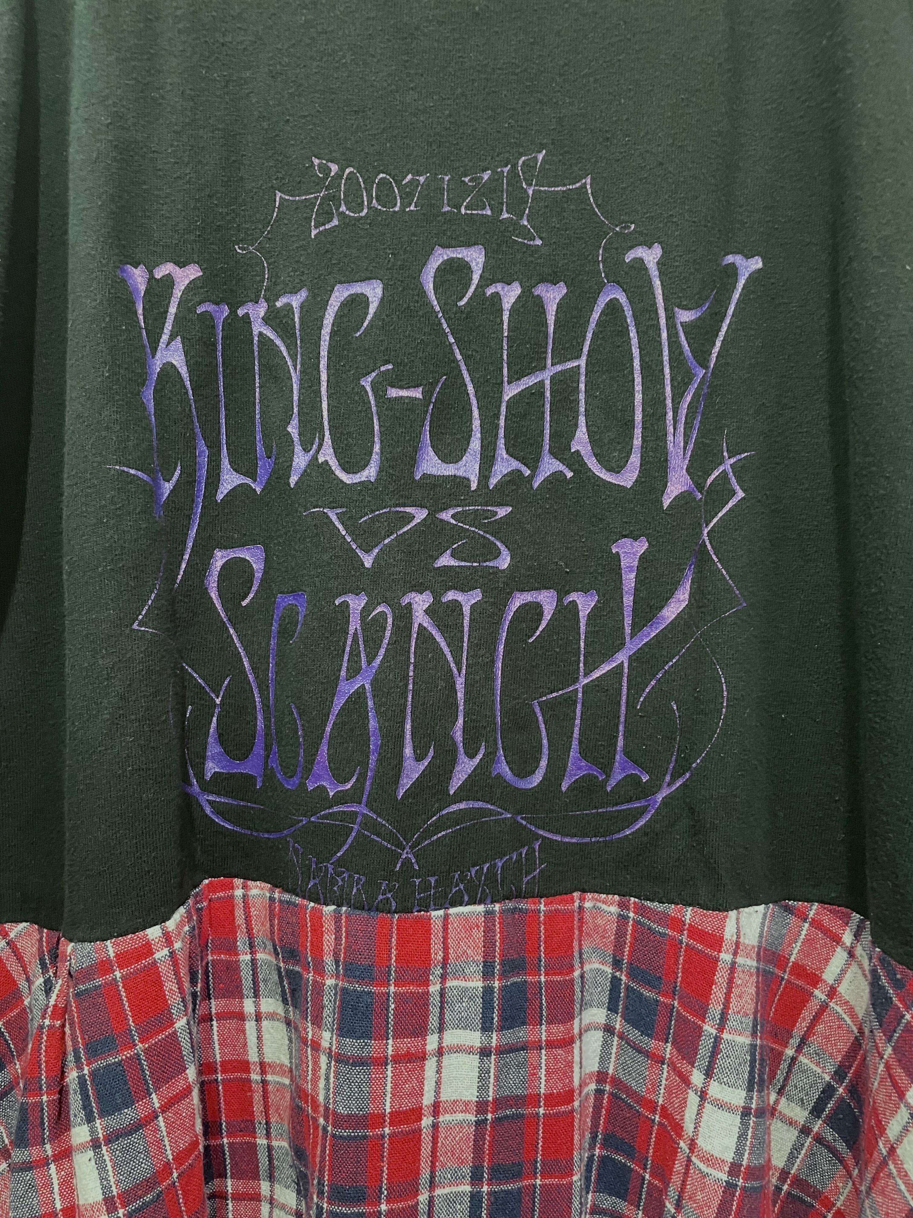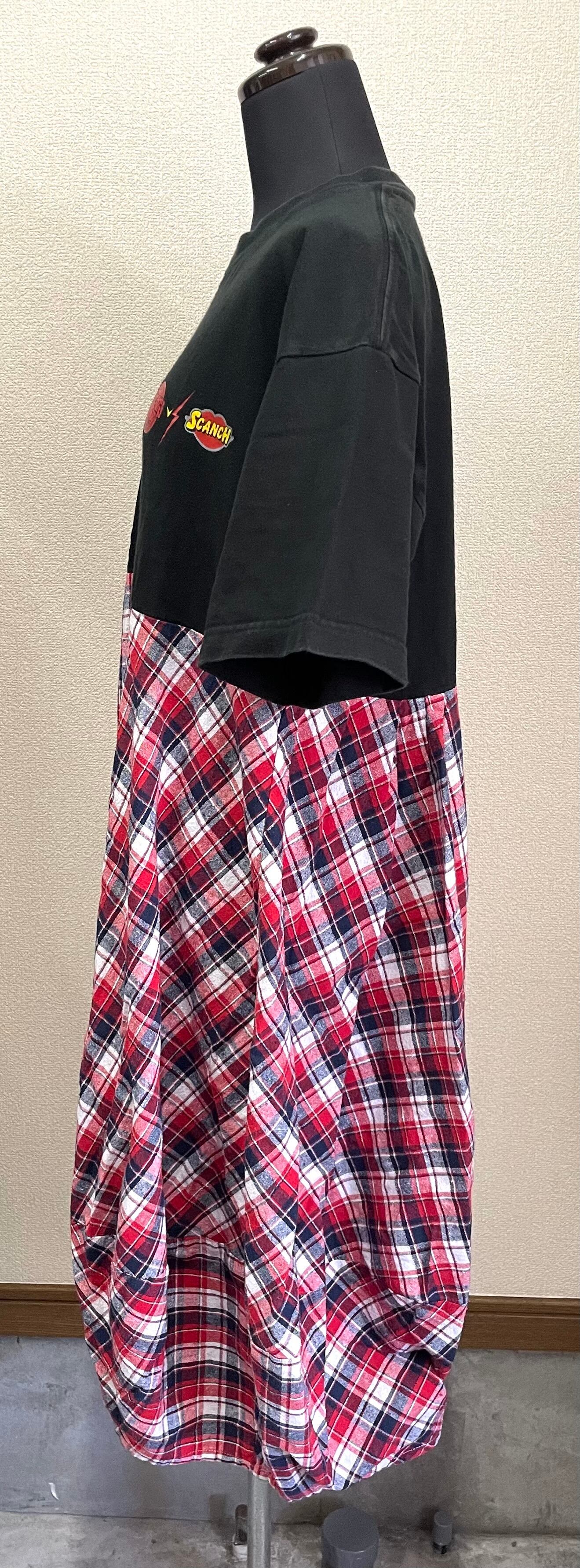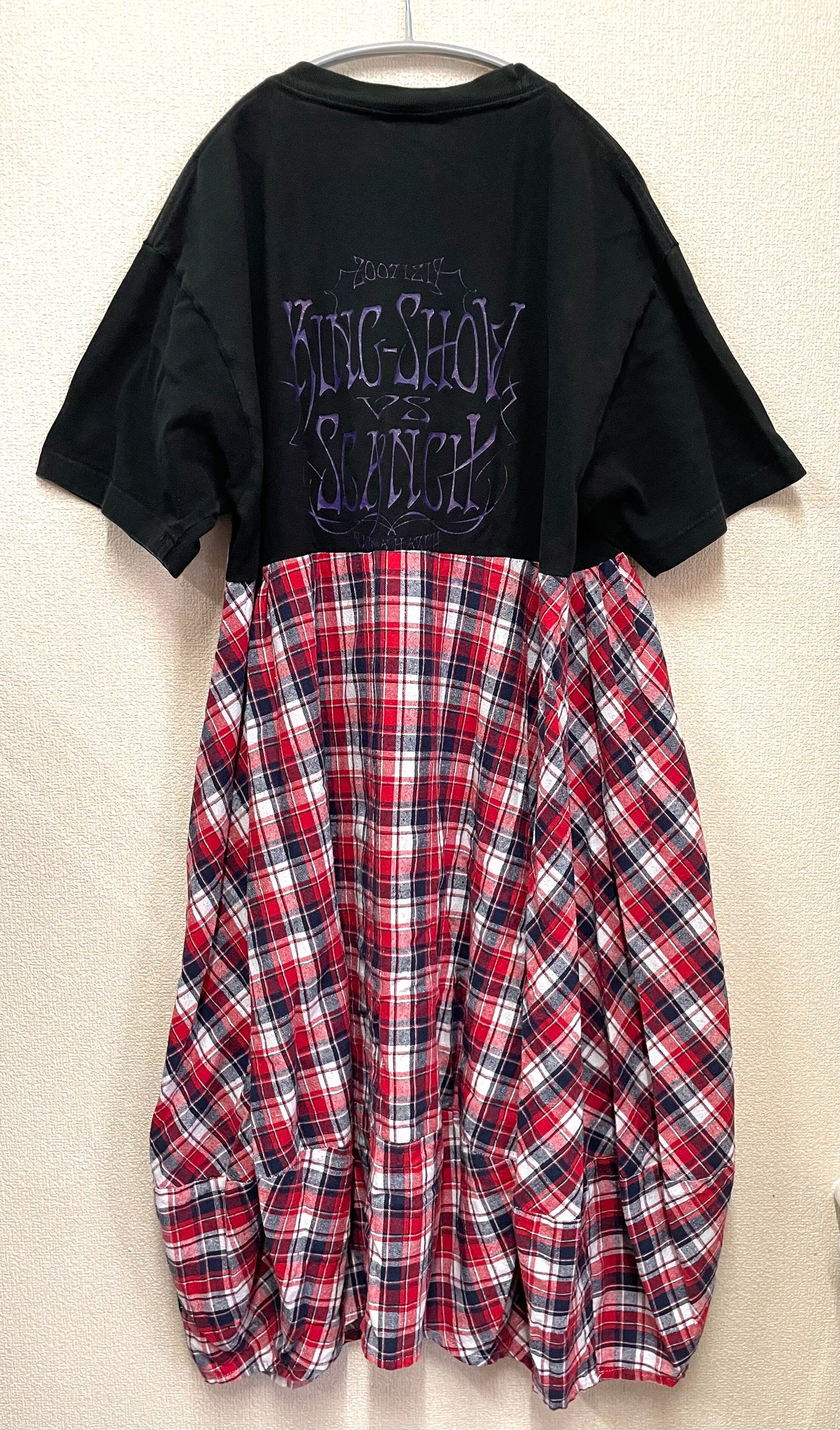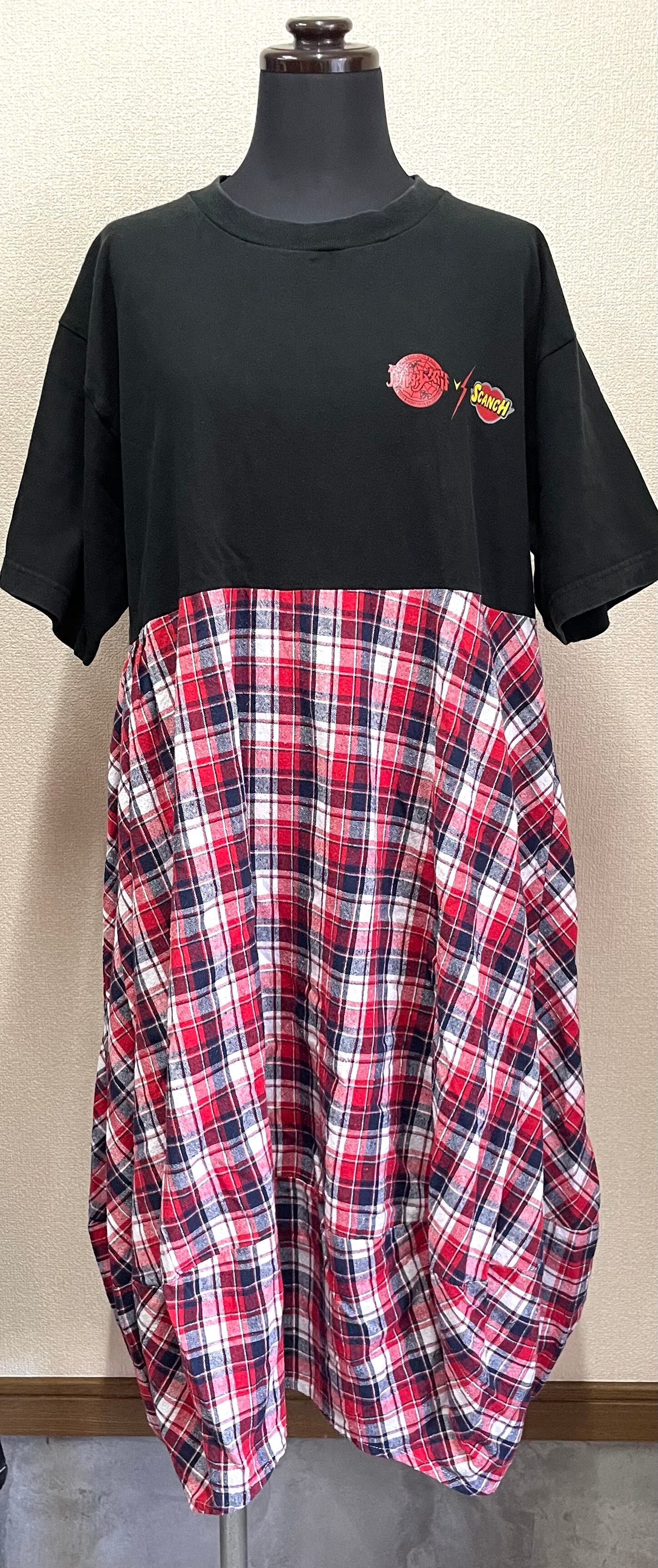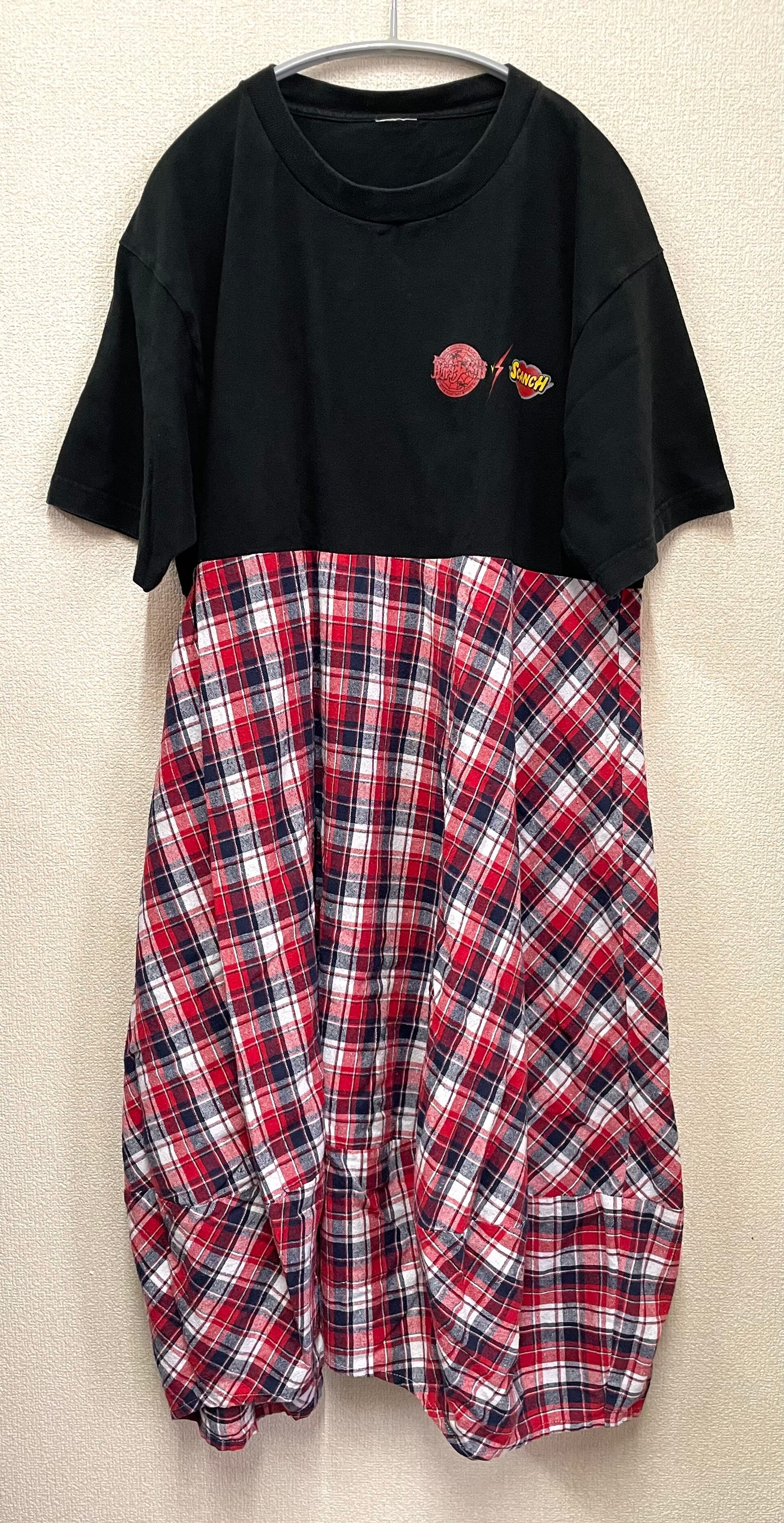 究極の対バン黒Tシャツに、チェック柄のデザインスカートを合わせています♬