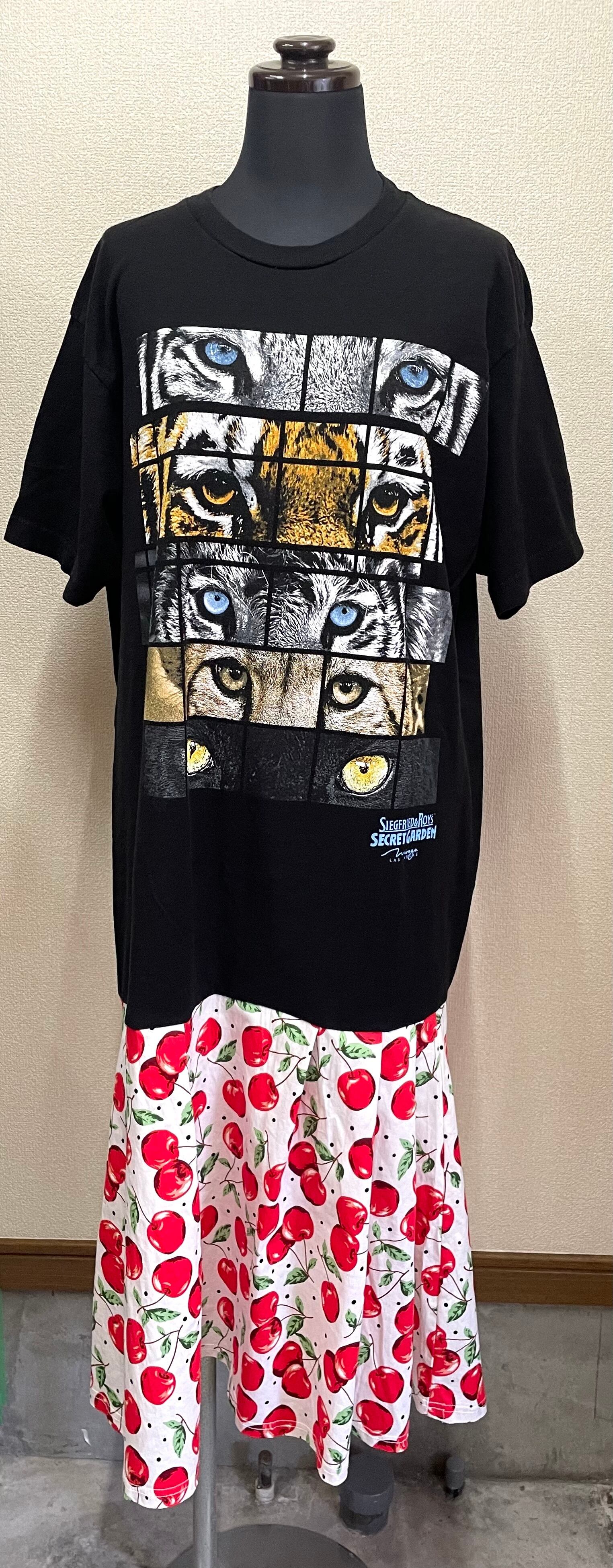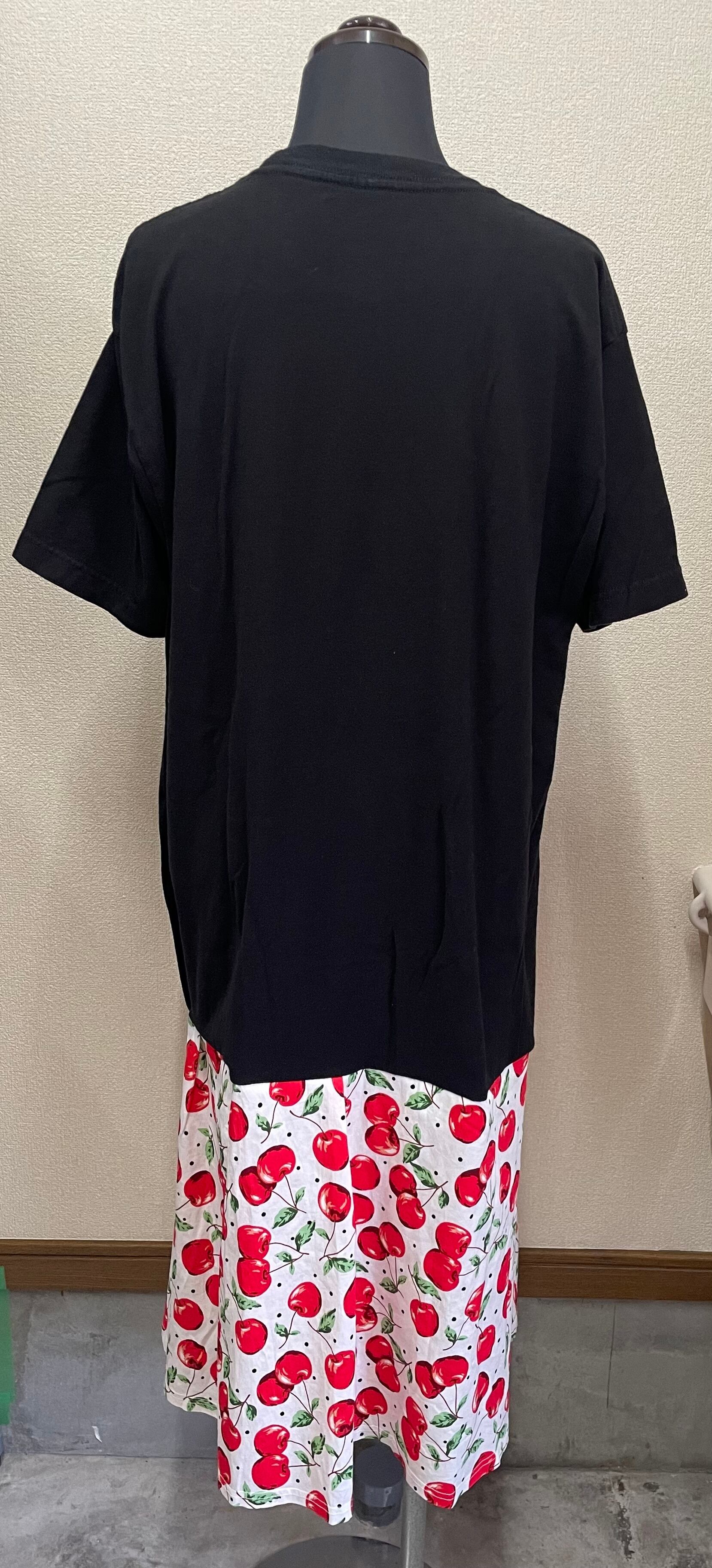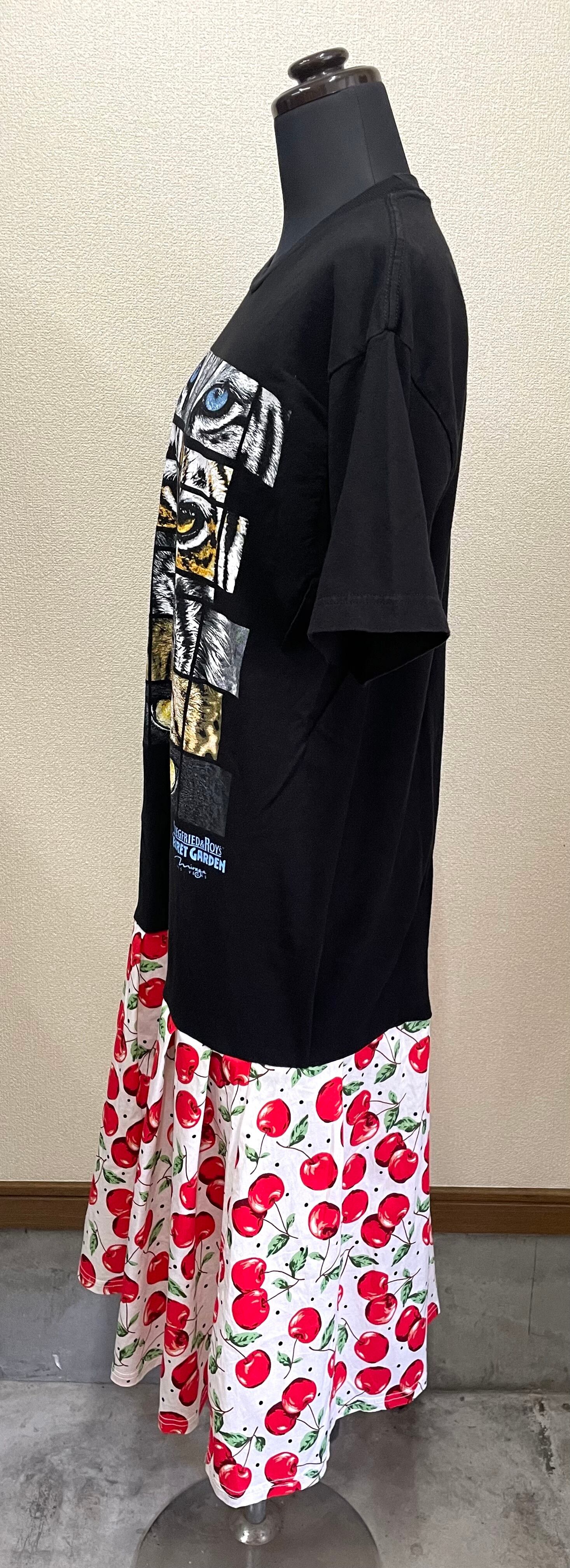 トラやヒョウなどの黒Tシャツに、さくらんぼスカートを合わせています♬