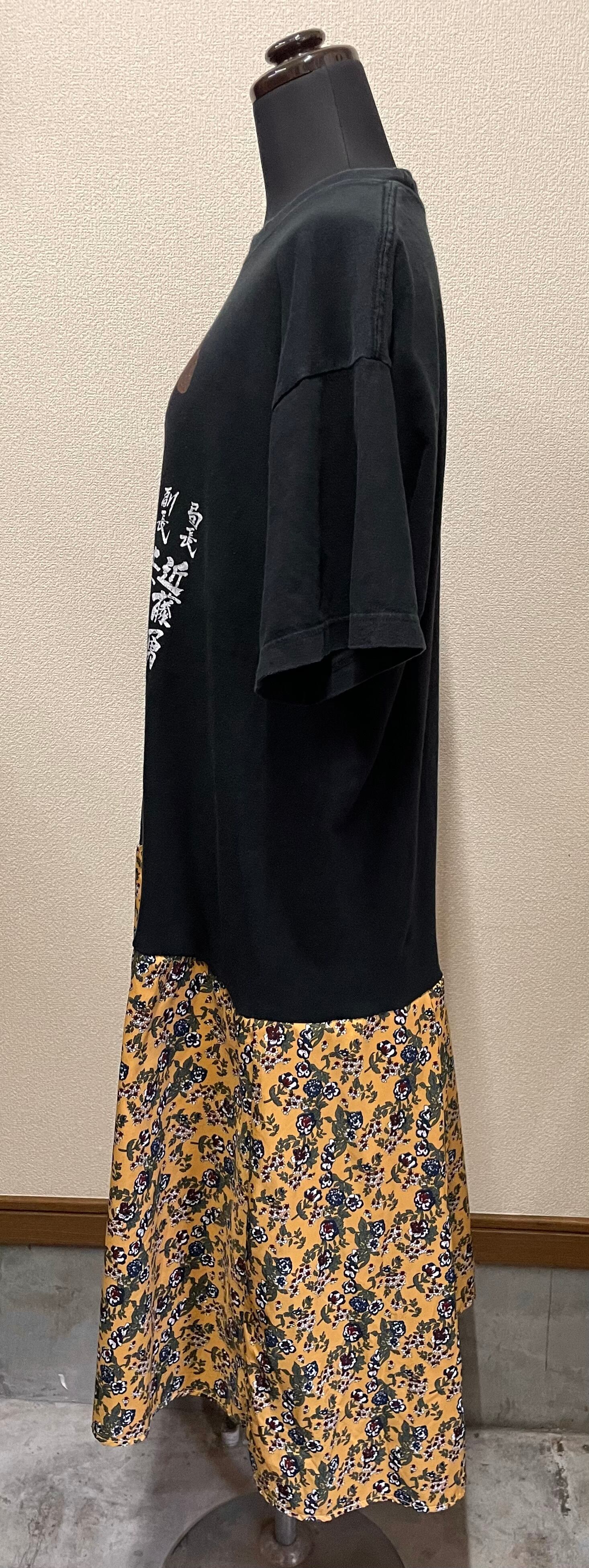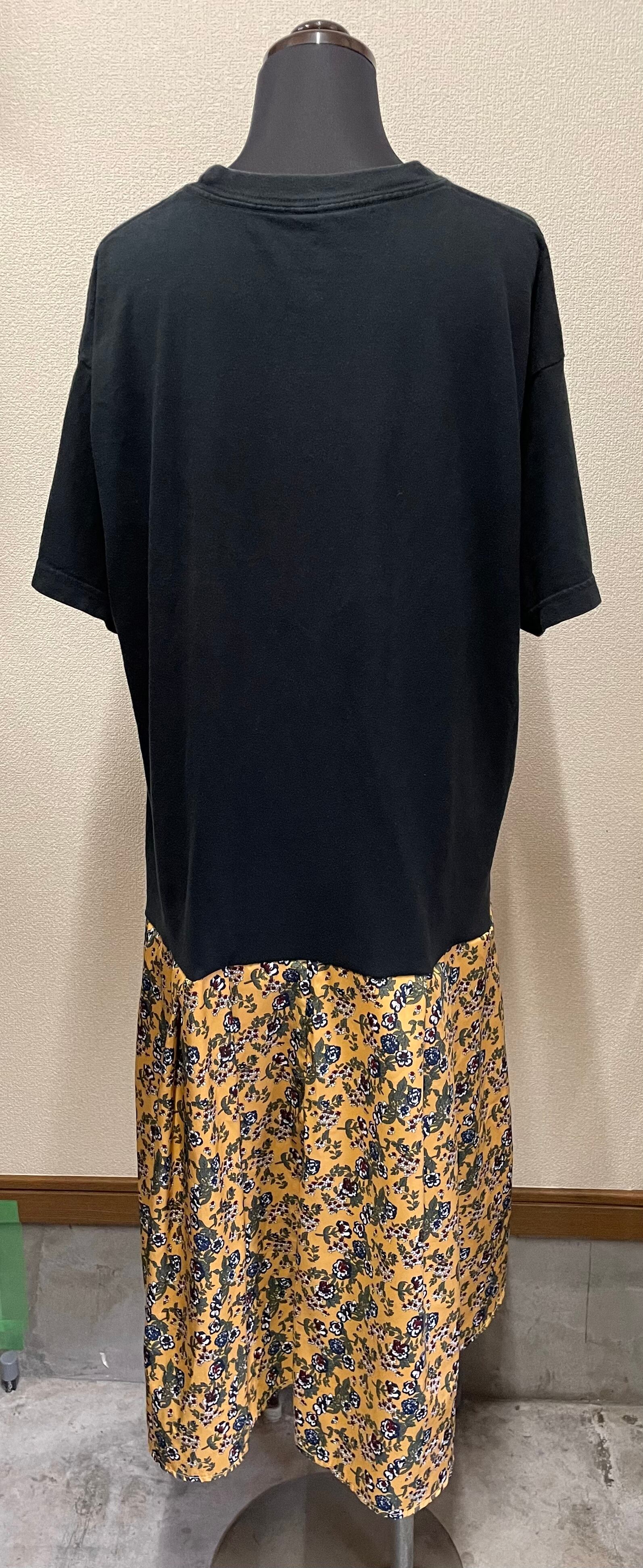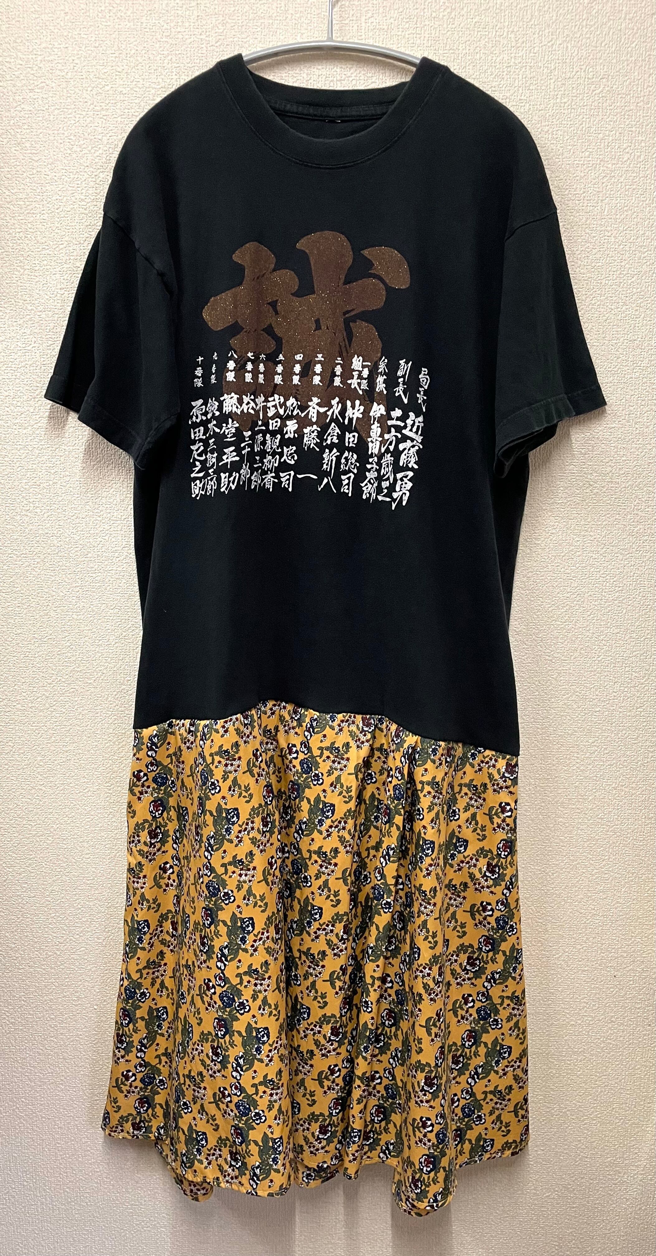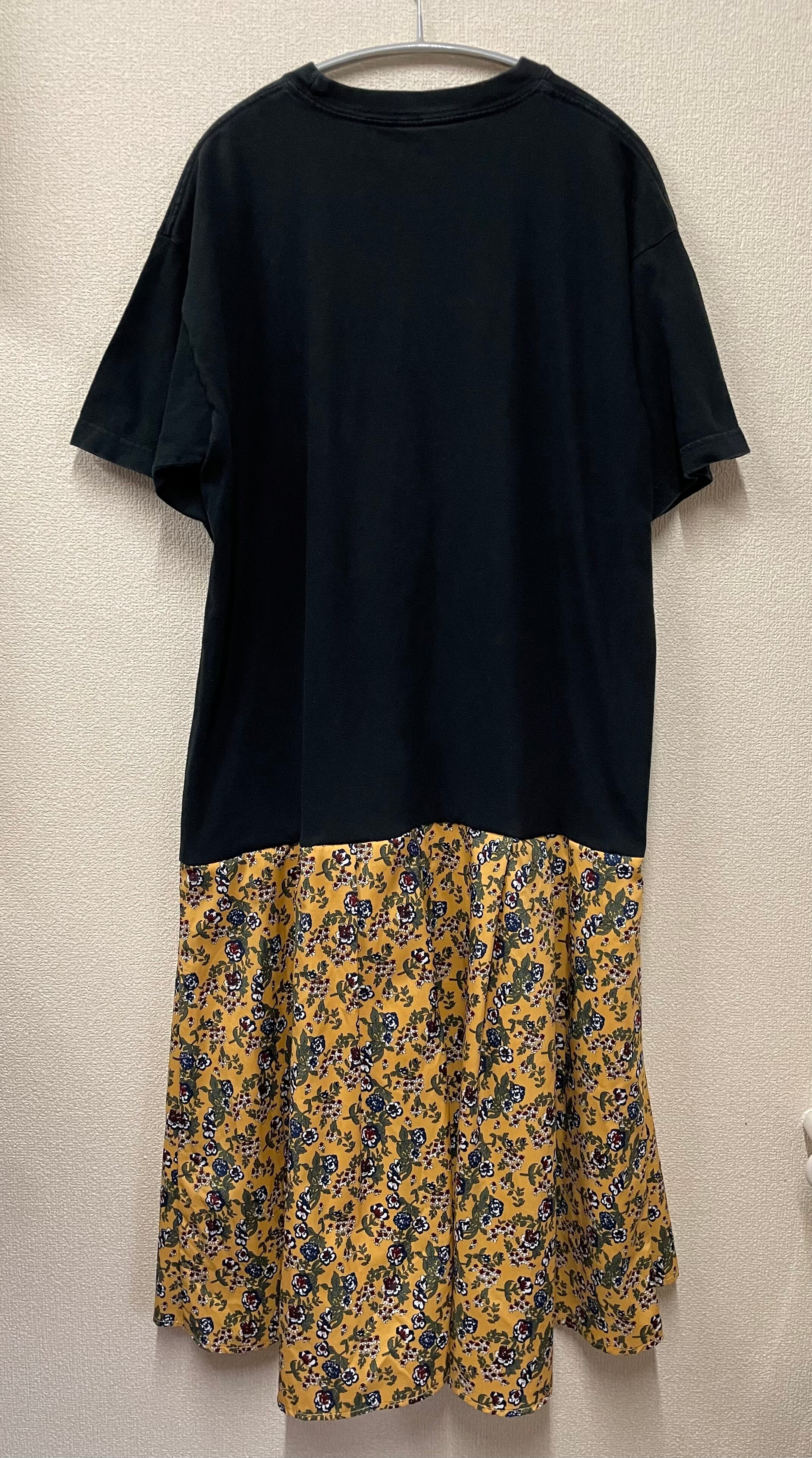かっこいい黒Tシャツに、植物柄のスカートを合わせています♬