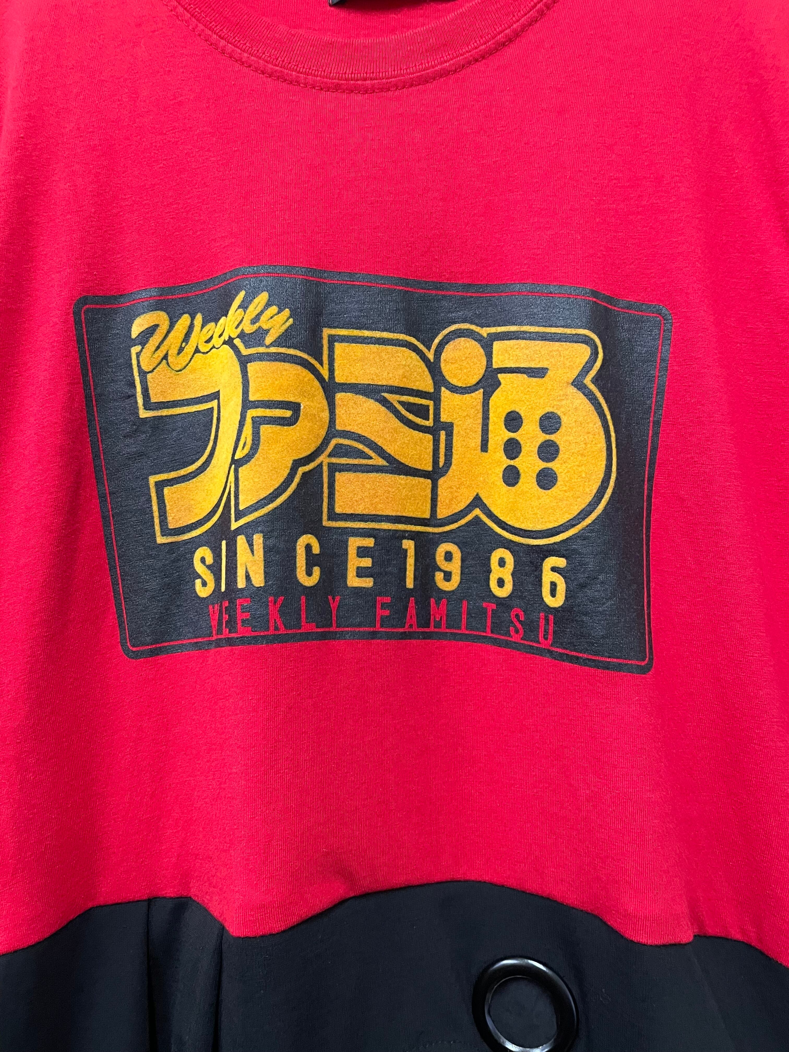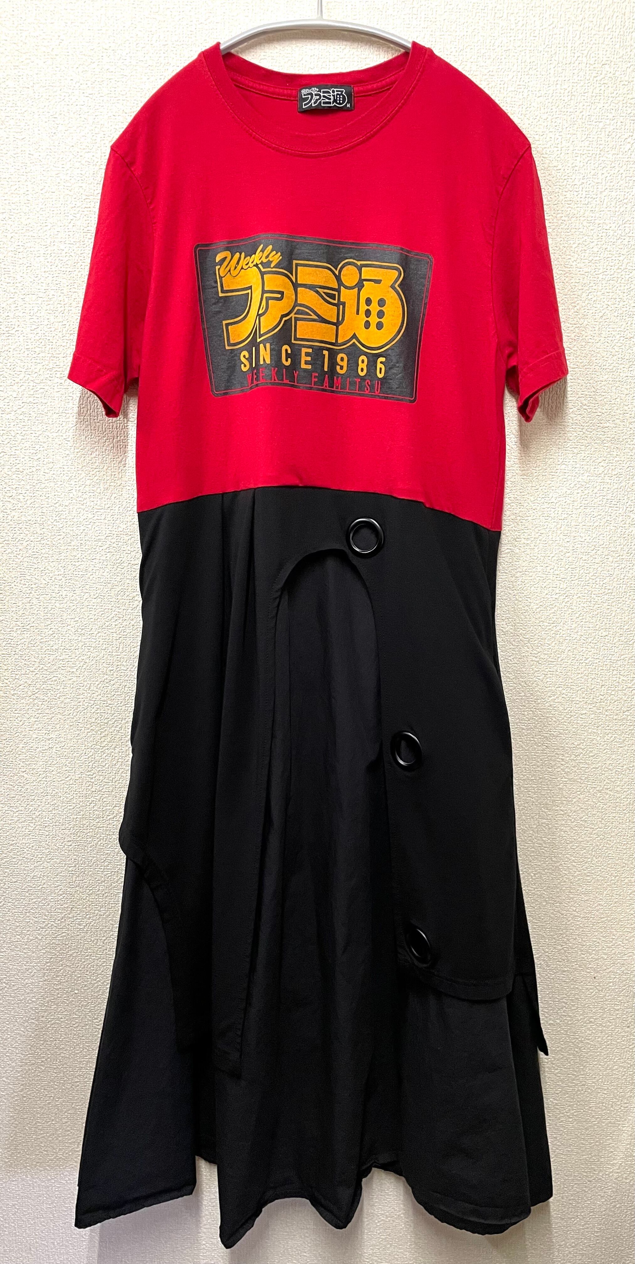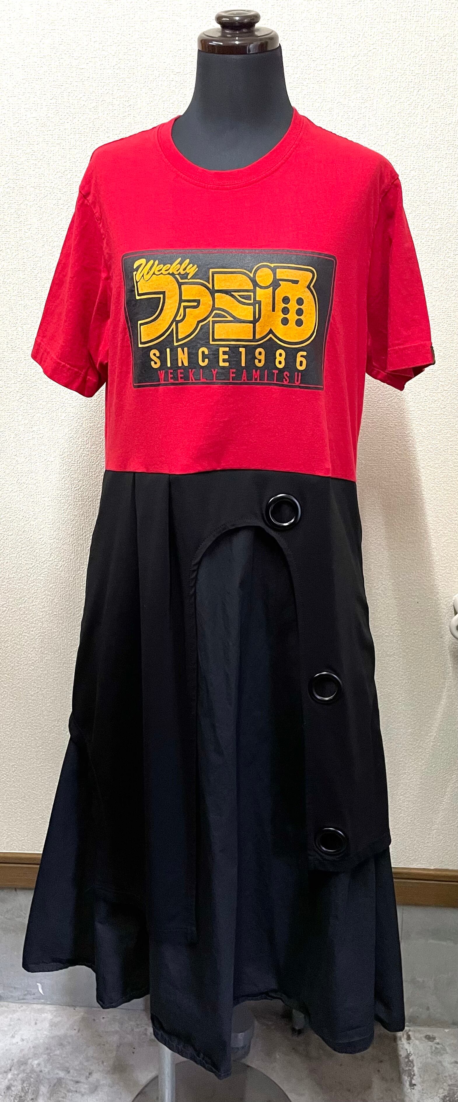 かわいい赤Tシャツに、黒のデザインスカートを合わせています♬