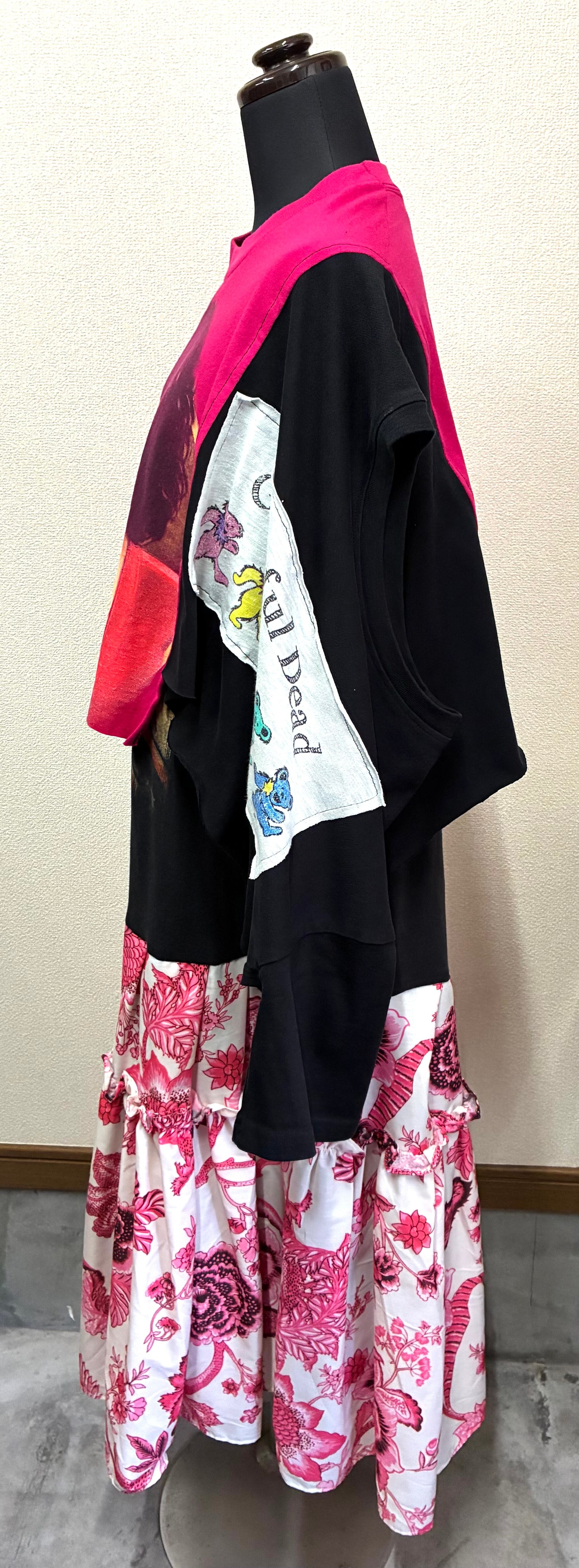 ワンピースは別売りですが、画像の12枚目以降のようにワンピースと重ねたりいろんな楽しみ方が出来るTシャツです。
