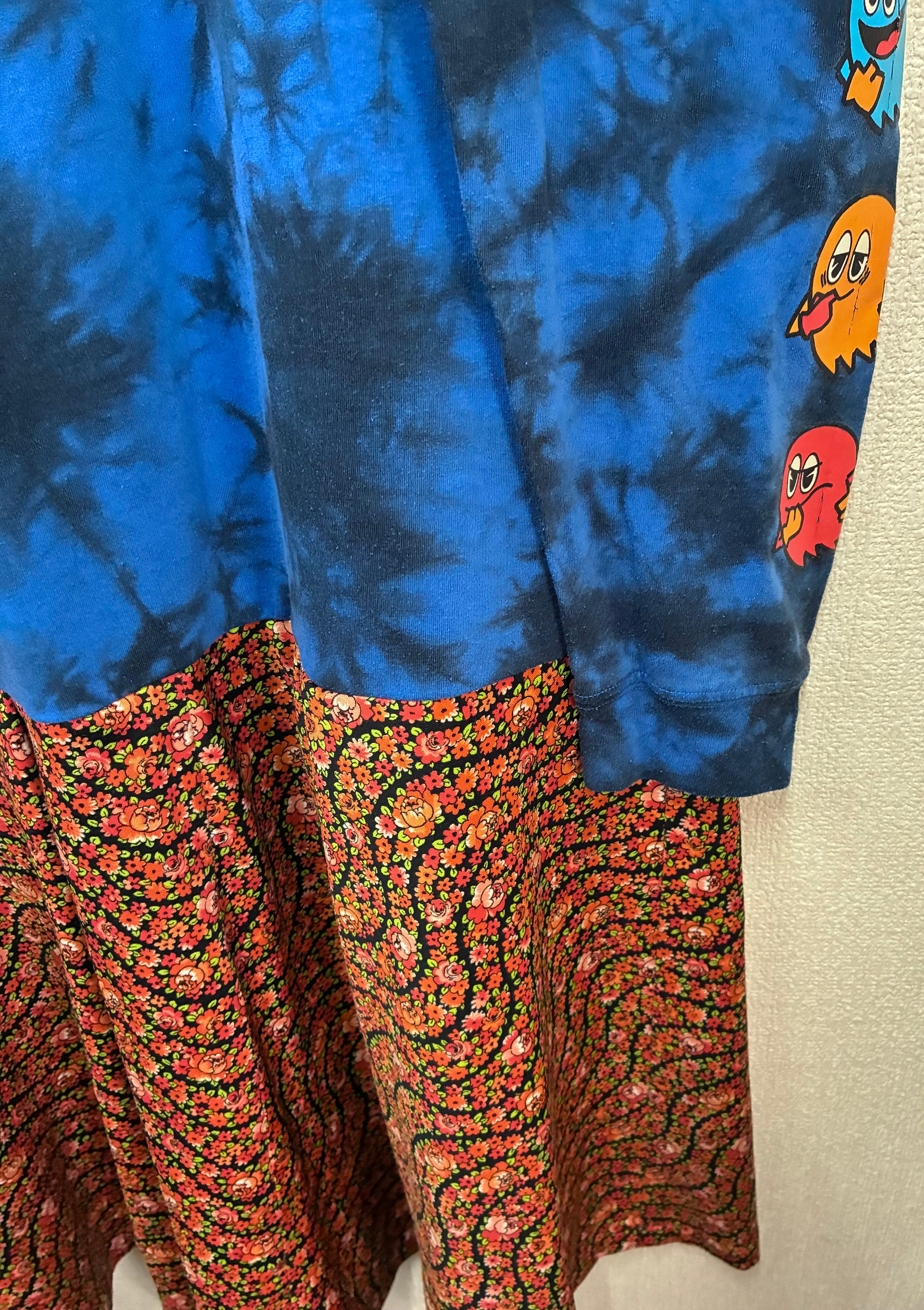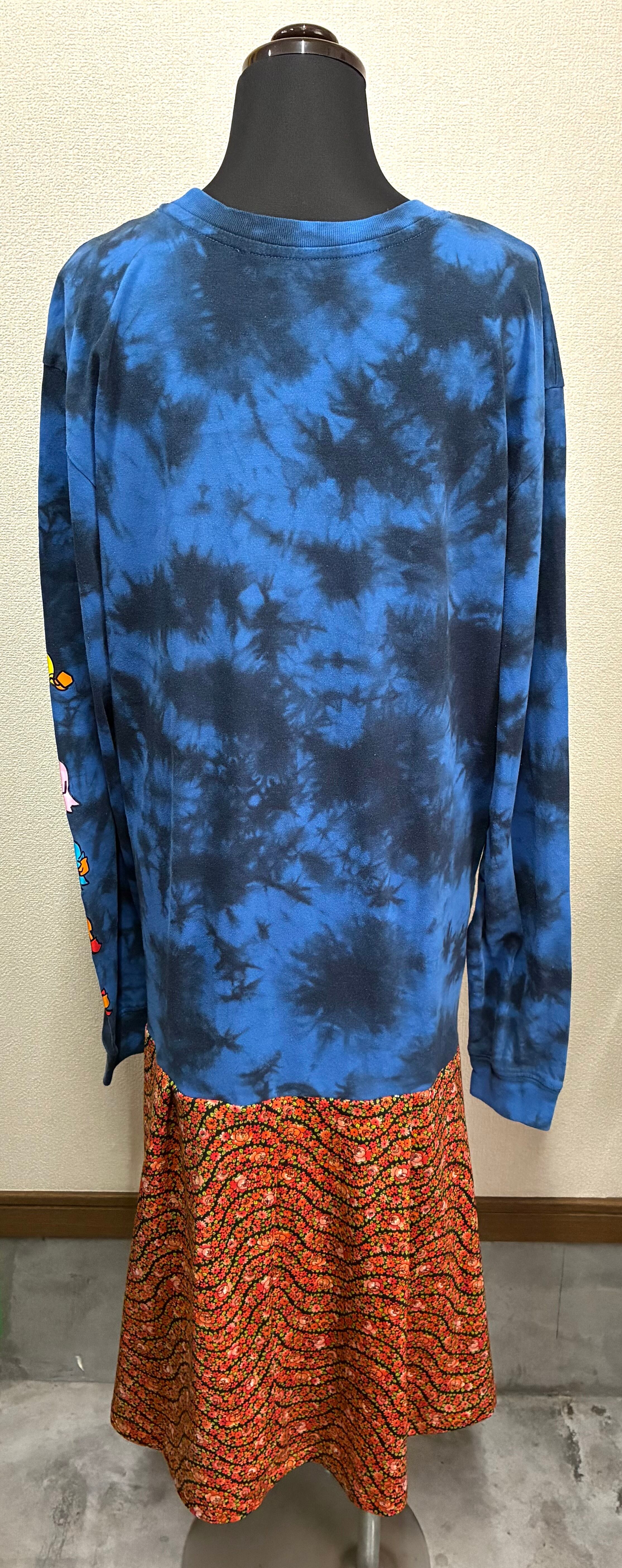 かわいいプリントのタイダイロンTに、レトロな小花柄スカートを合わせています♬