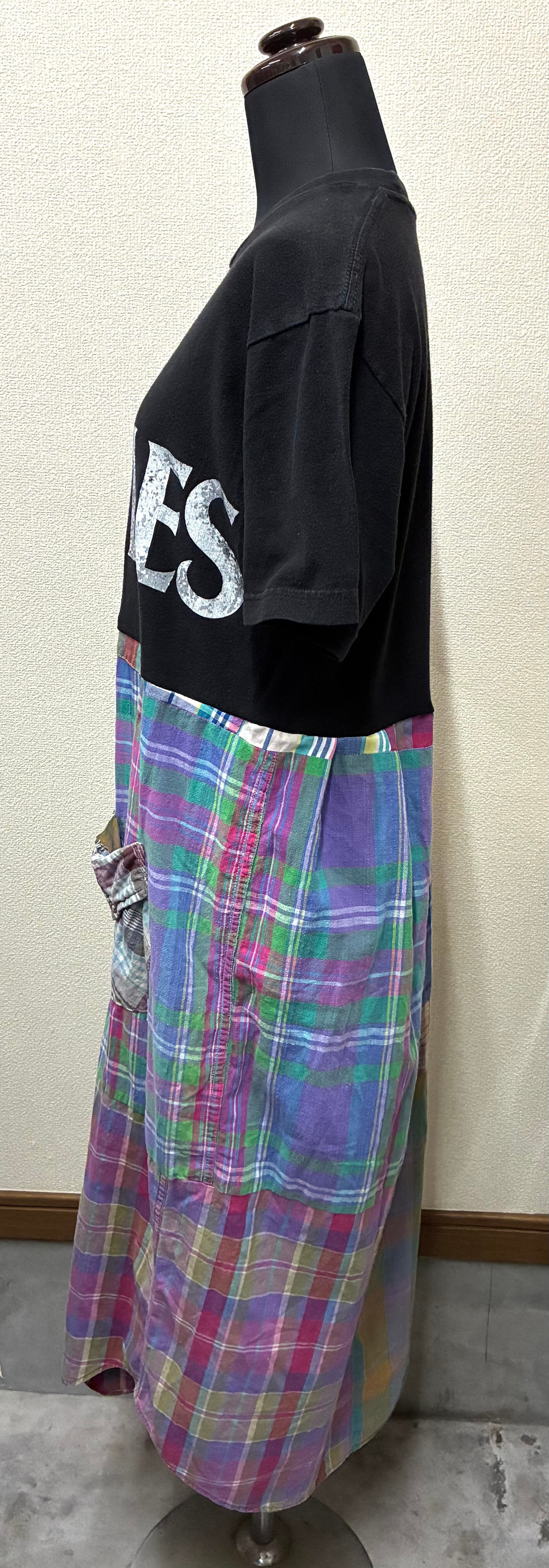 素敵な黒Tシャツに、チェック柄パッチワークスカートを合わせています♬
