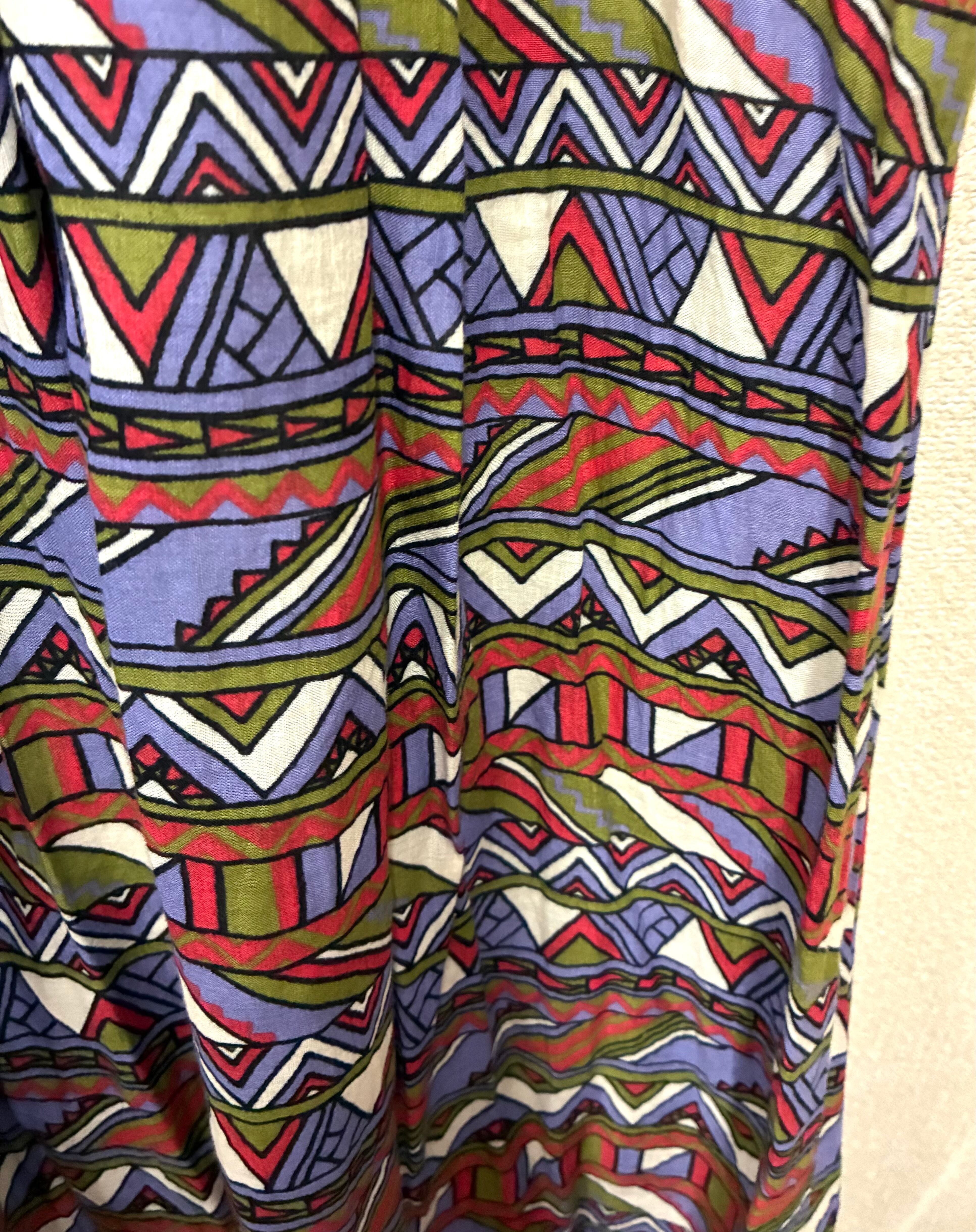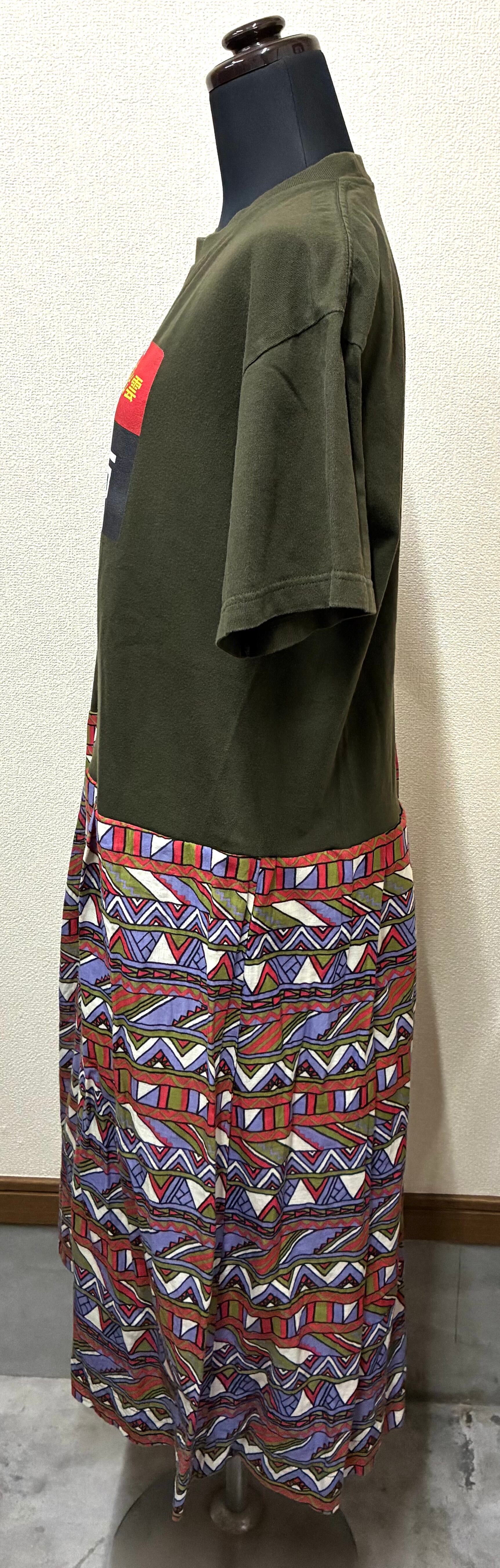 かわいいカーキーTシャツに、柄スカートを合わせています♬