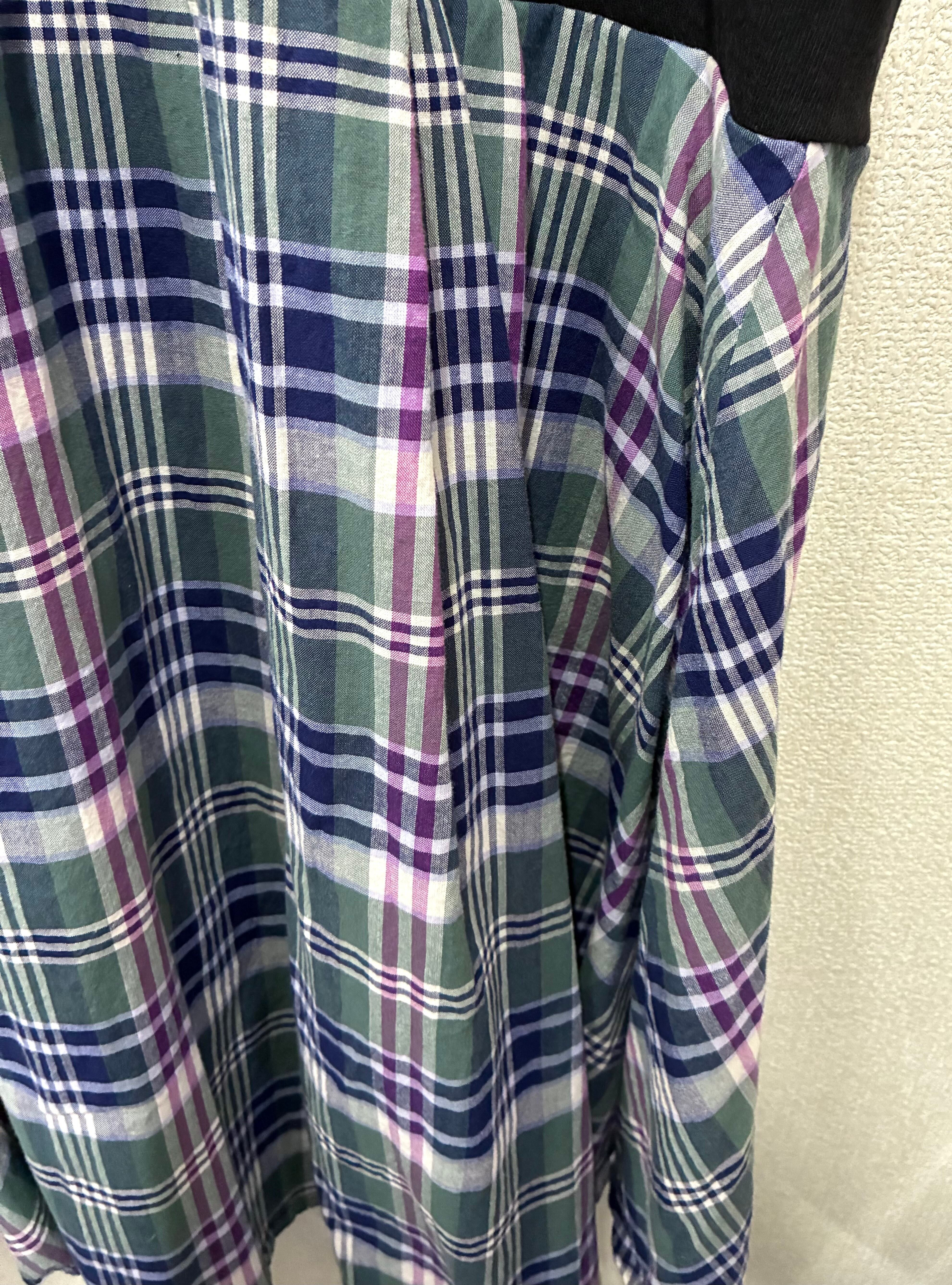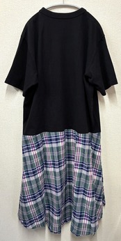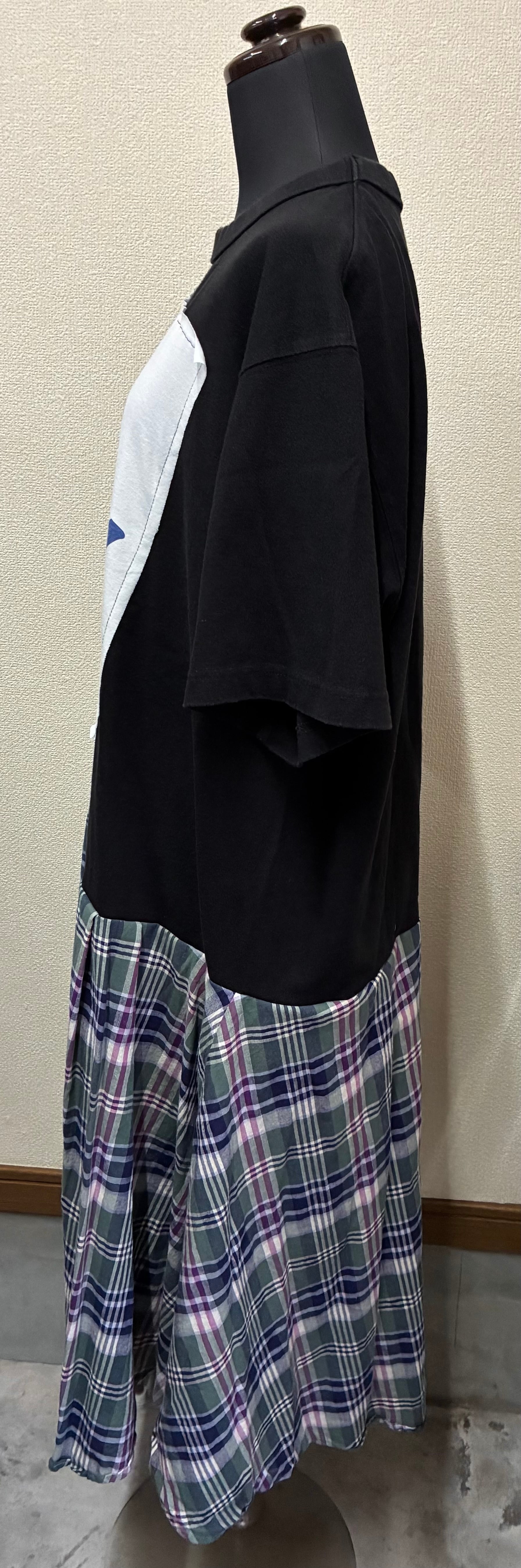 黒Tシャツにかわいいふわふわなやつを縫いつけ、チェック柄スカートを合わせています♬