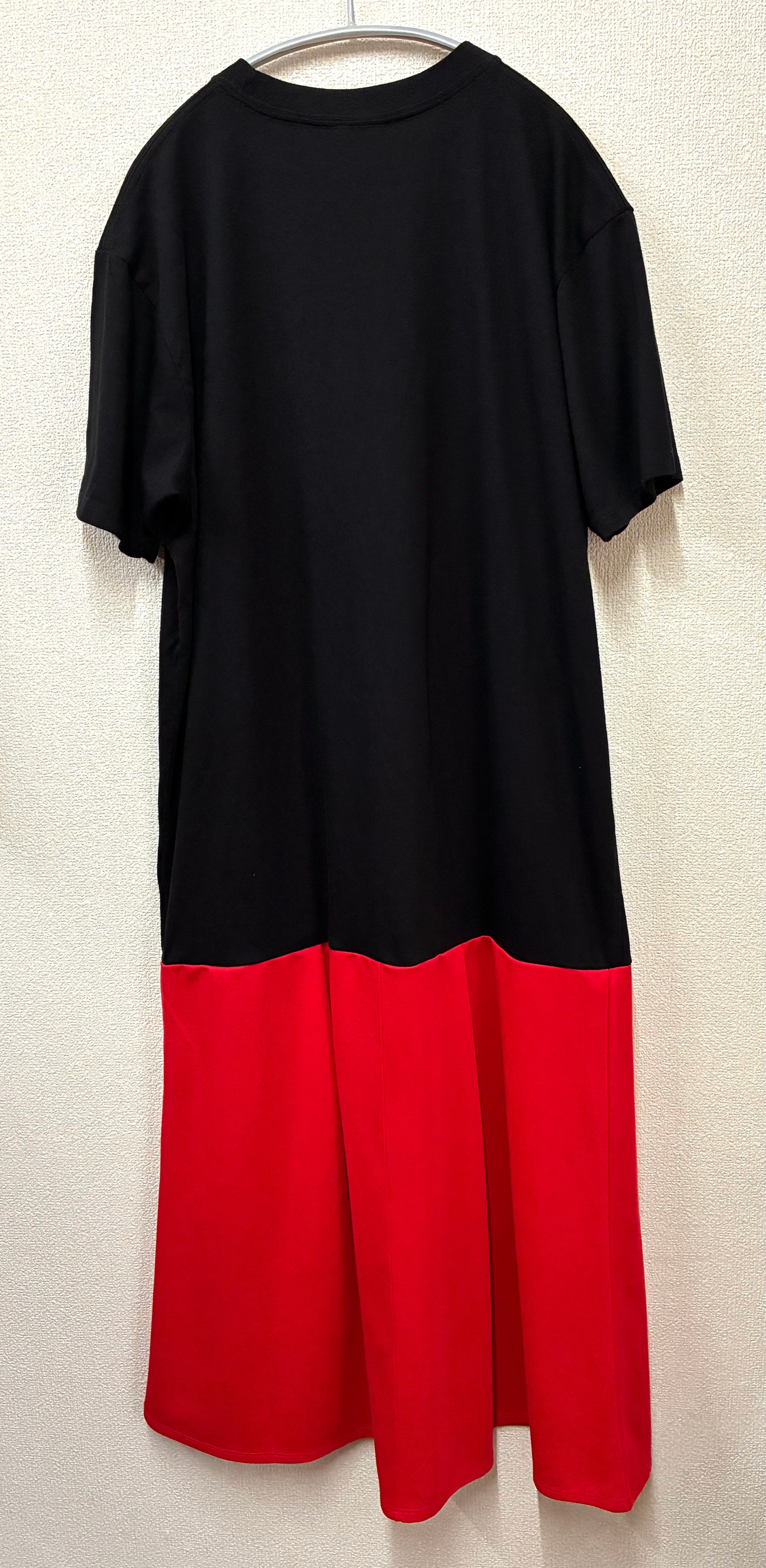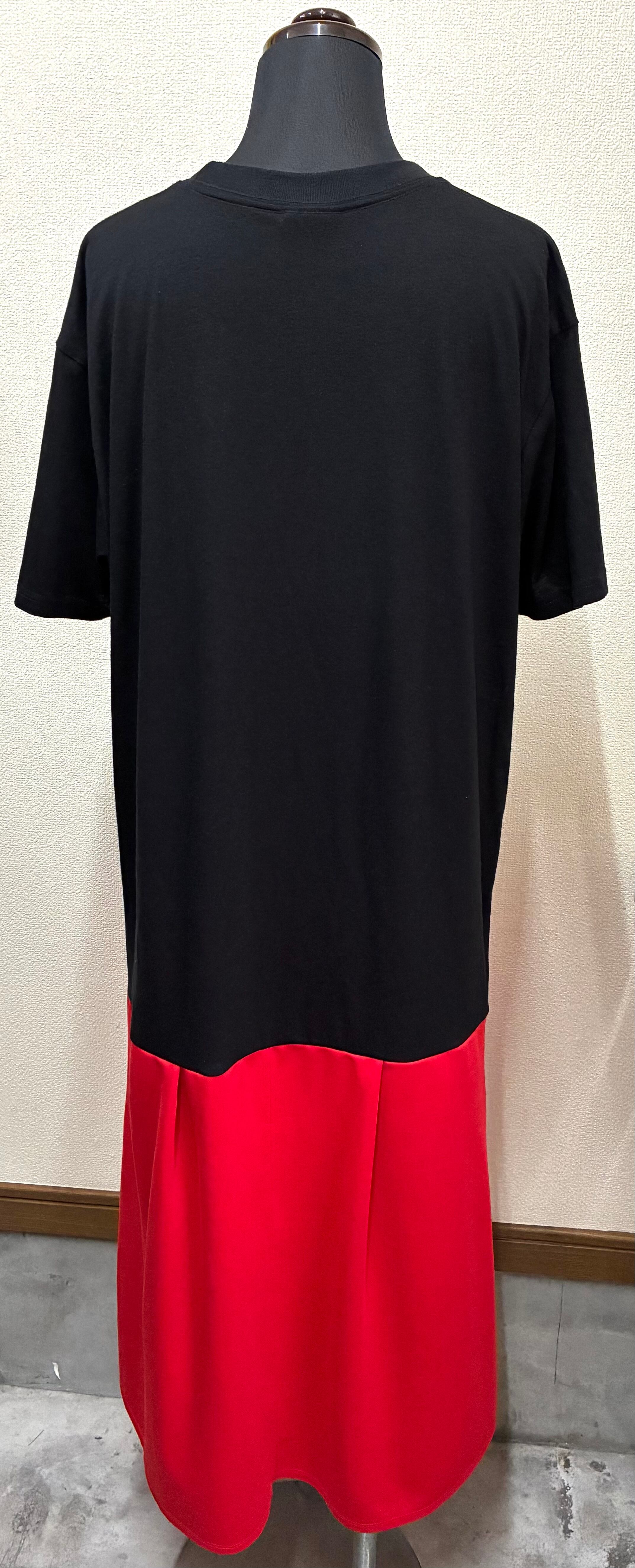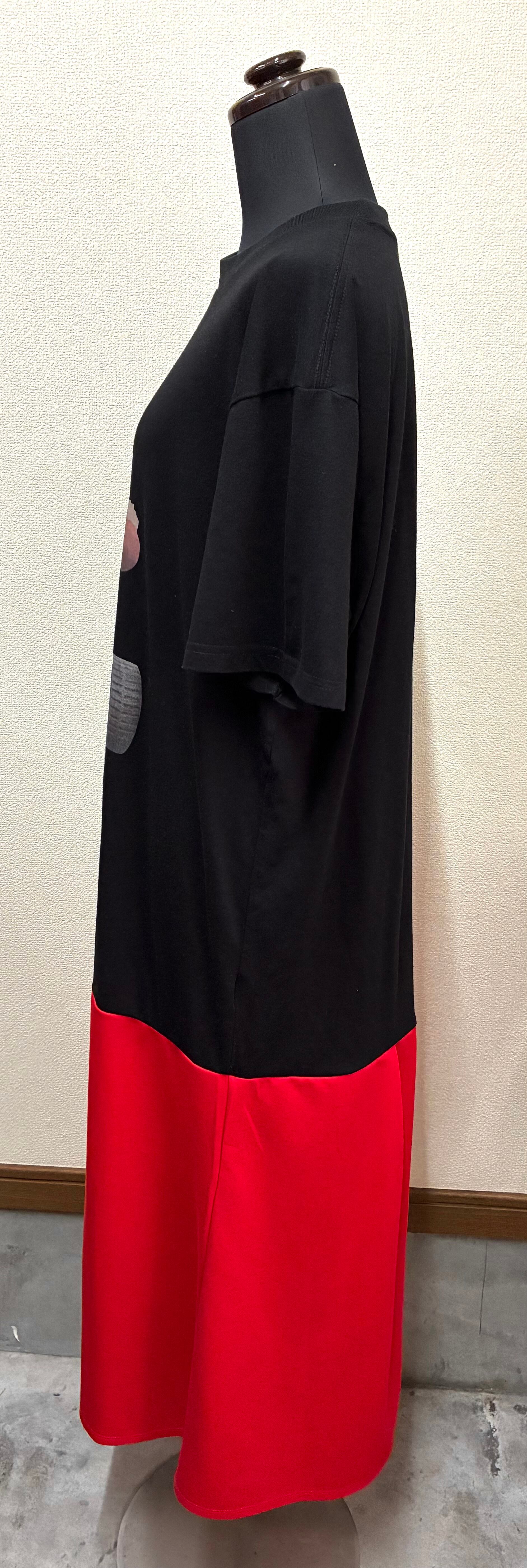 かわいい黒Tシャツにを縫いつけ、赤スカートを合わせています♬