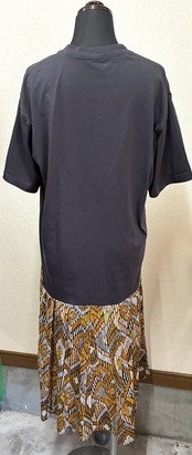 とてもかわいいグレーTシャツに、薄手の柄スカートを合わせています♬