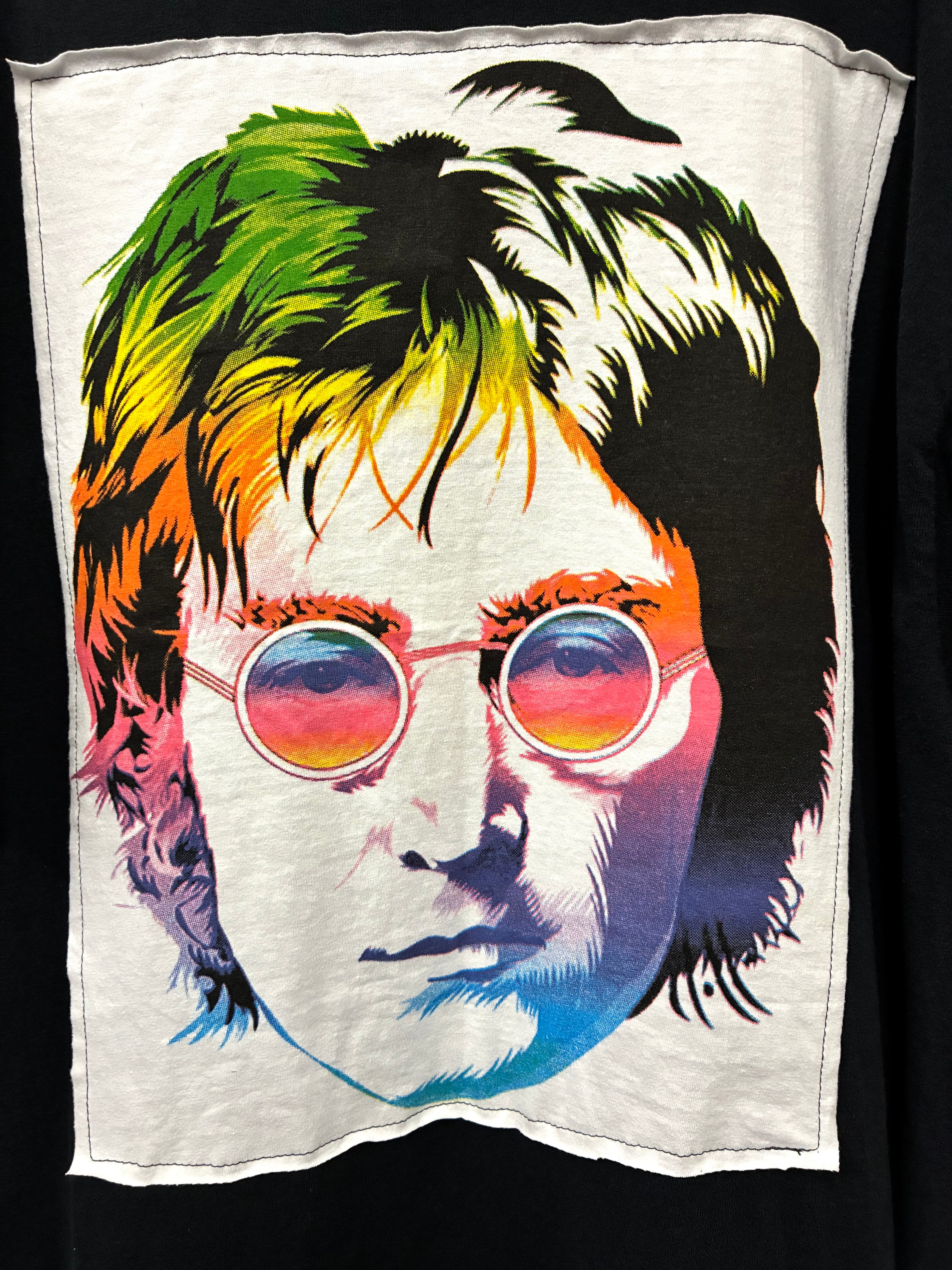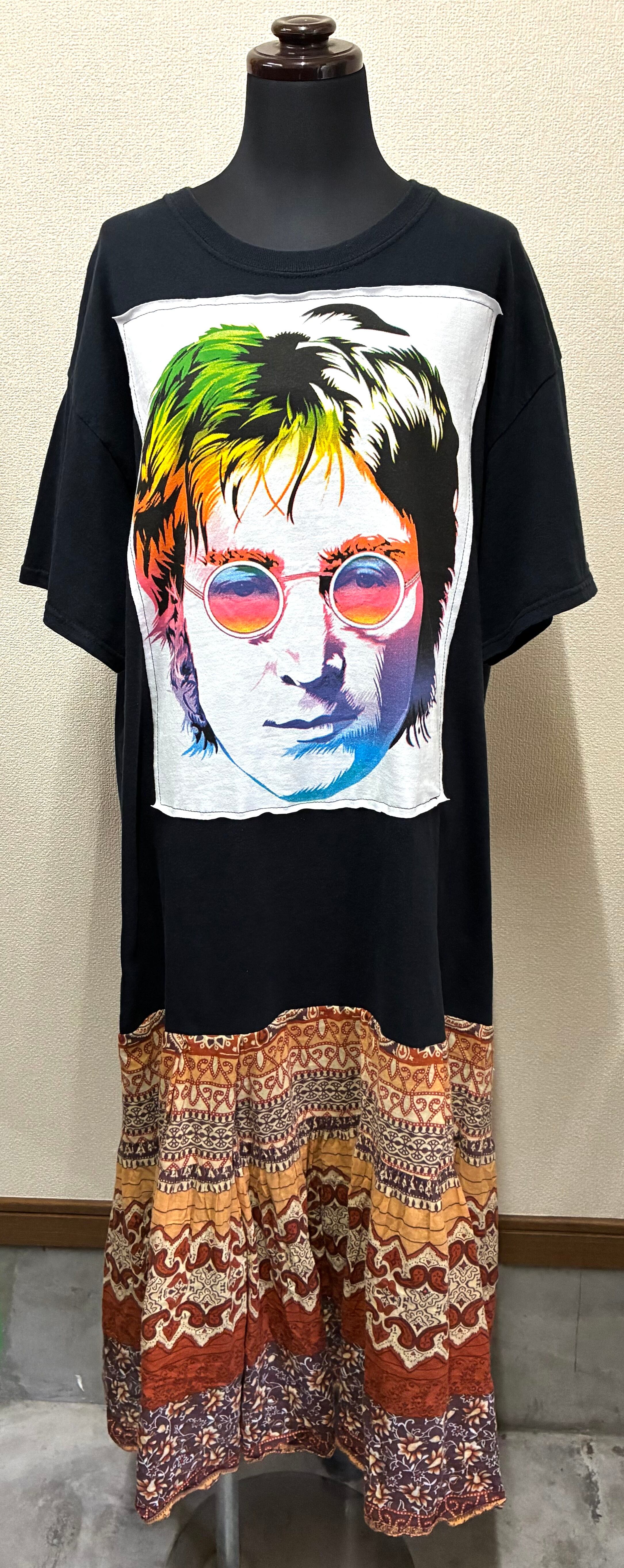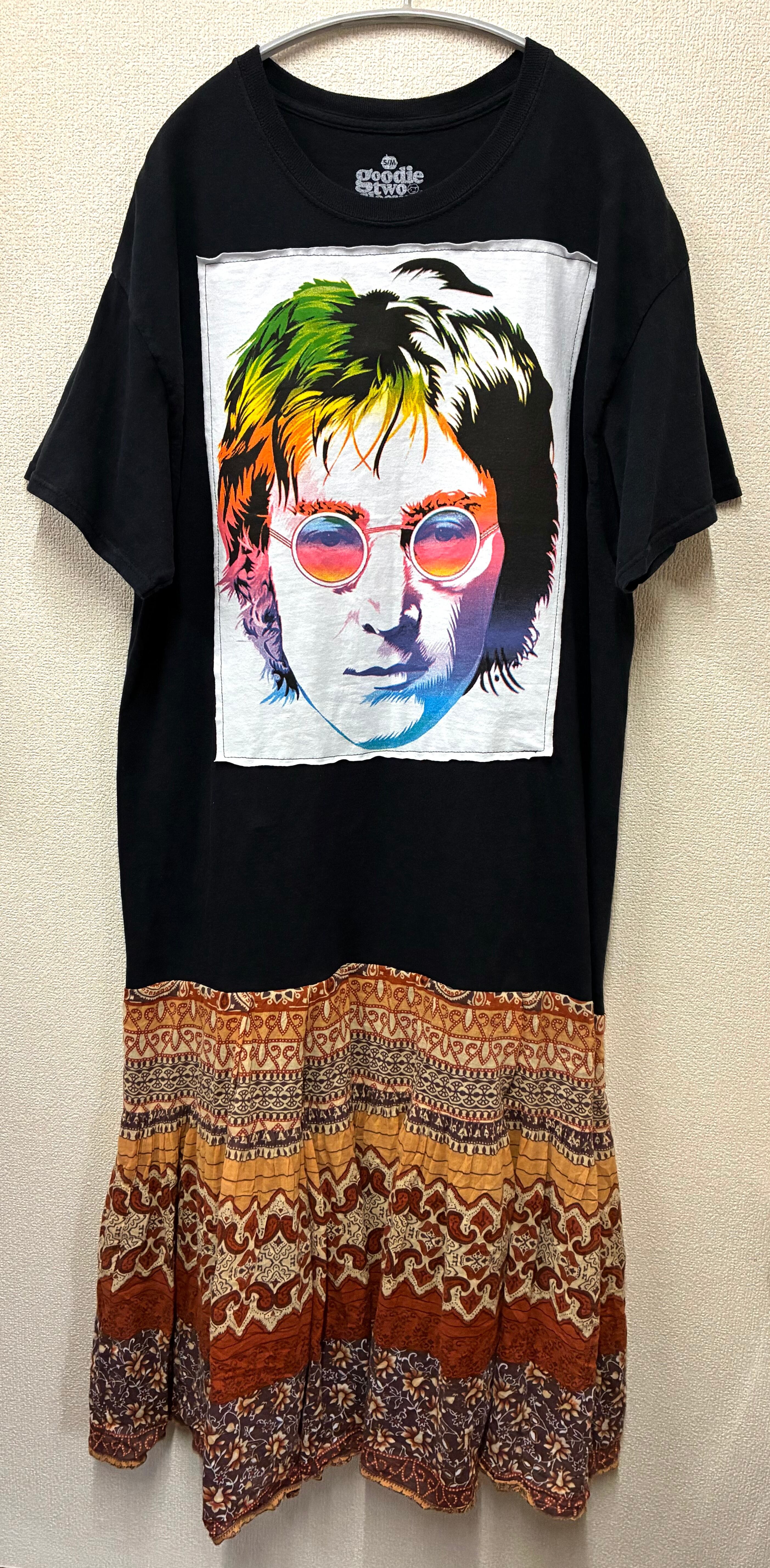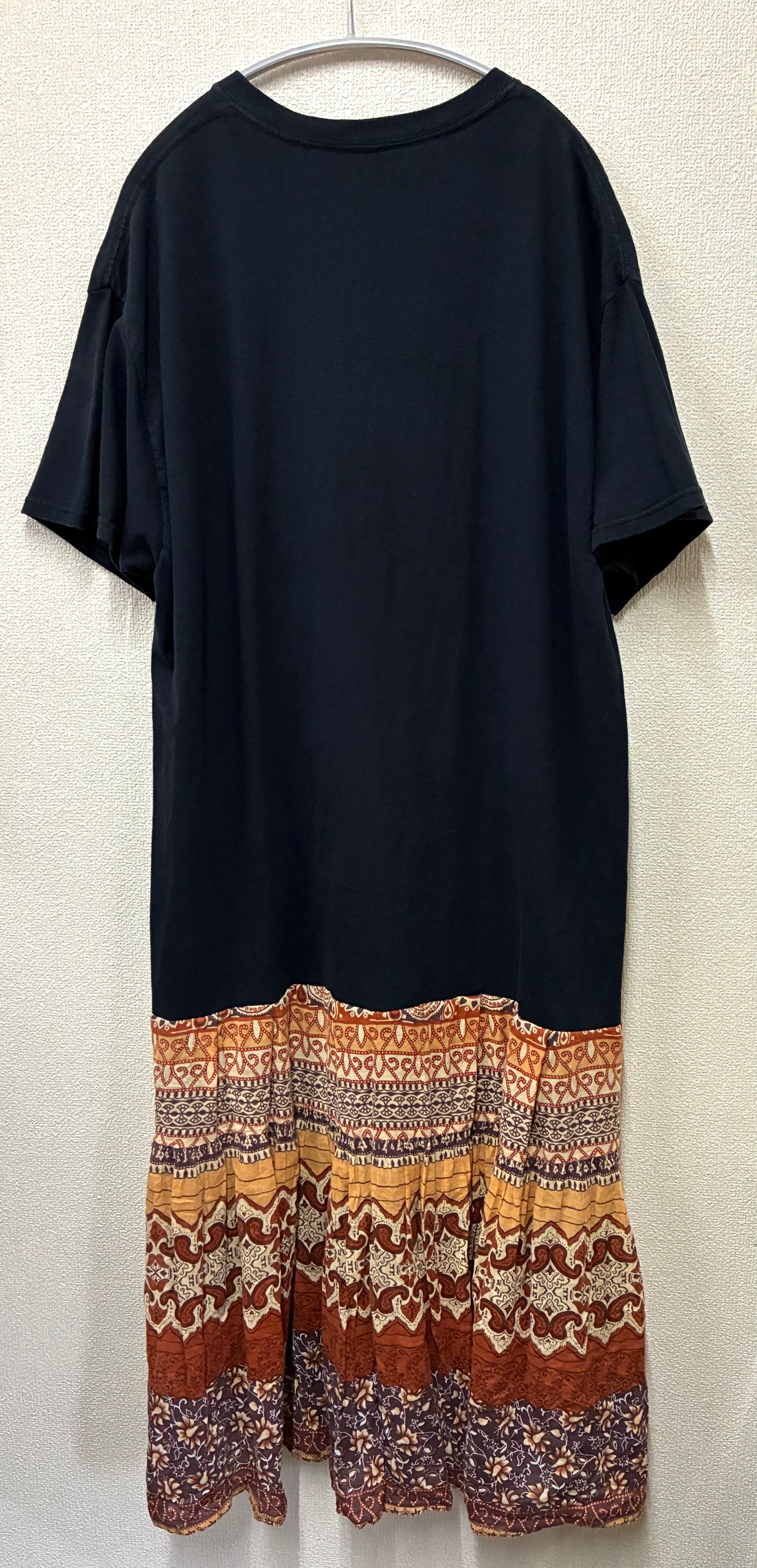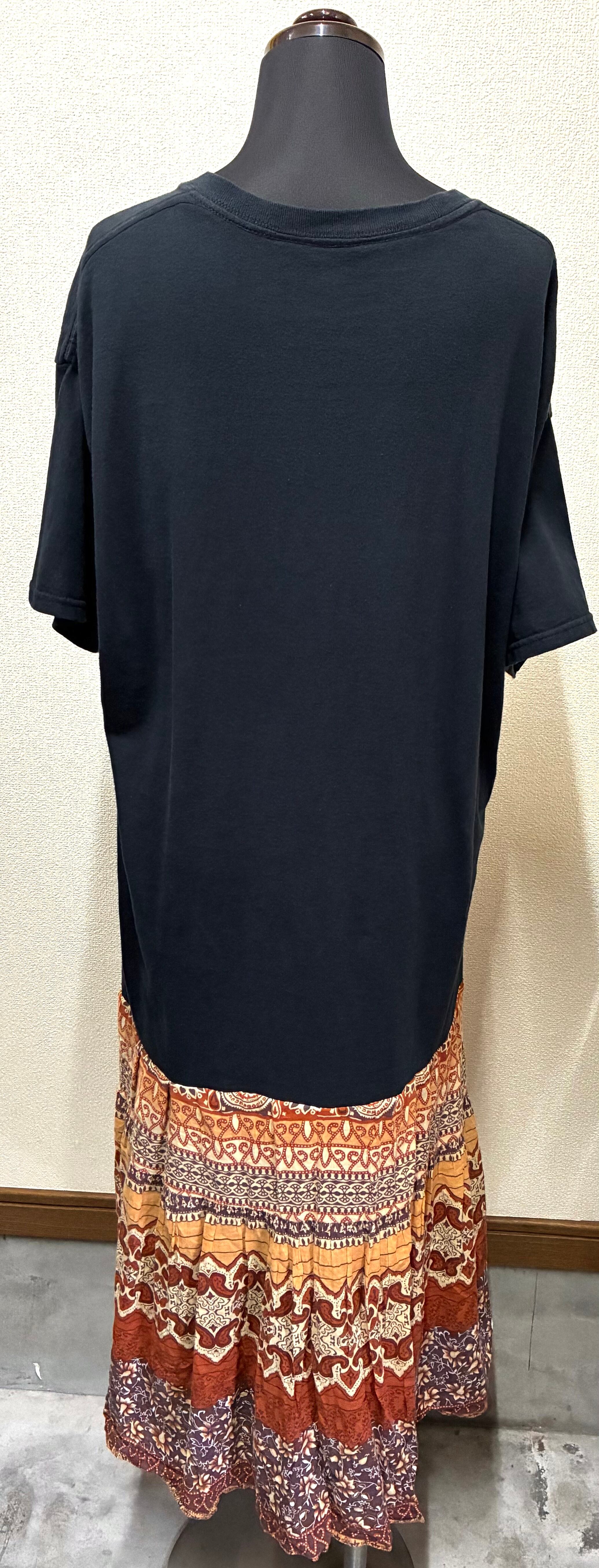 黒Tシャツにカラフルな男性を縫いつけ、アジアンテイストな柄スカートを合わせています♬