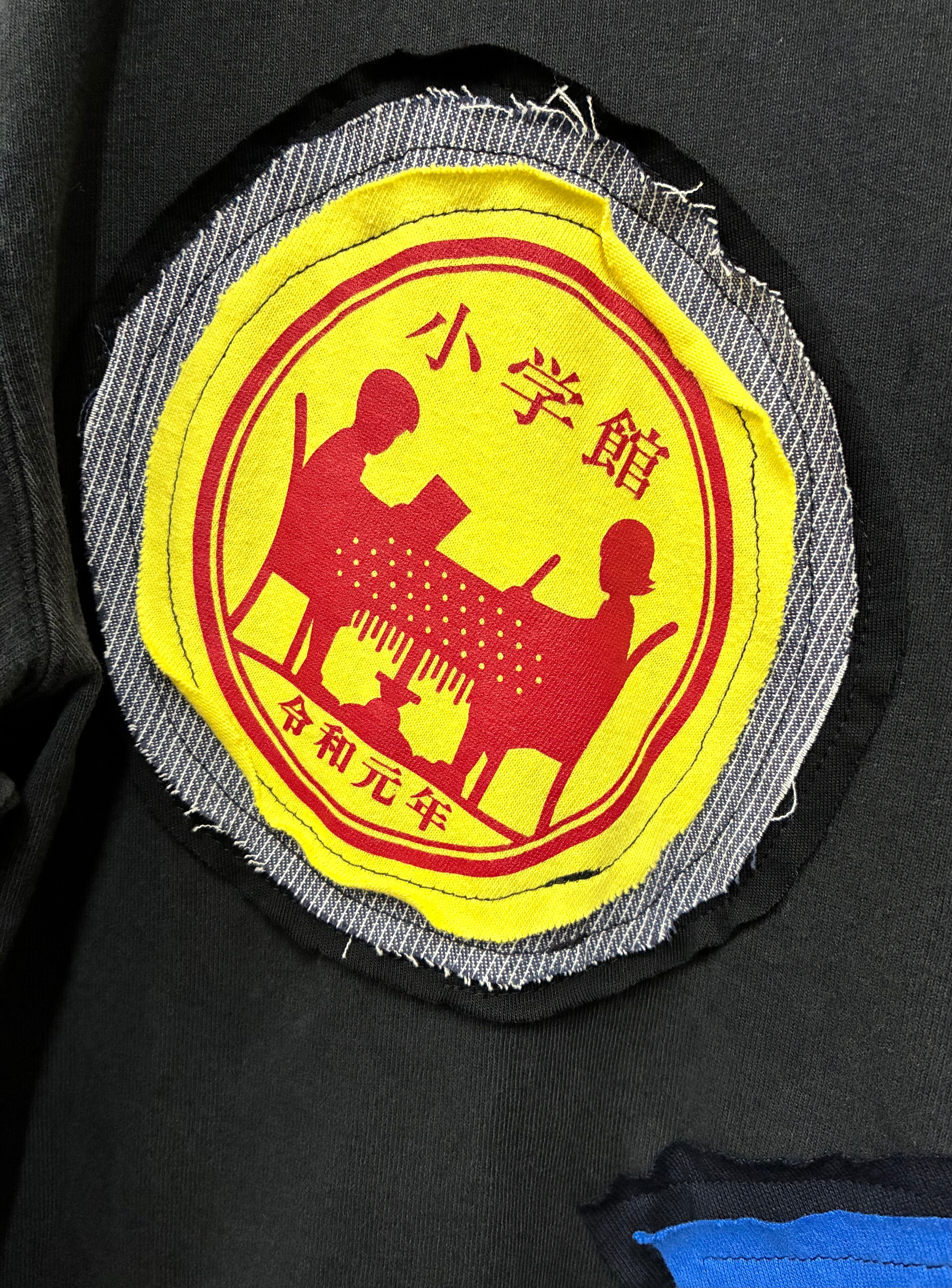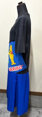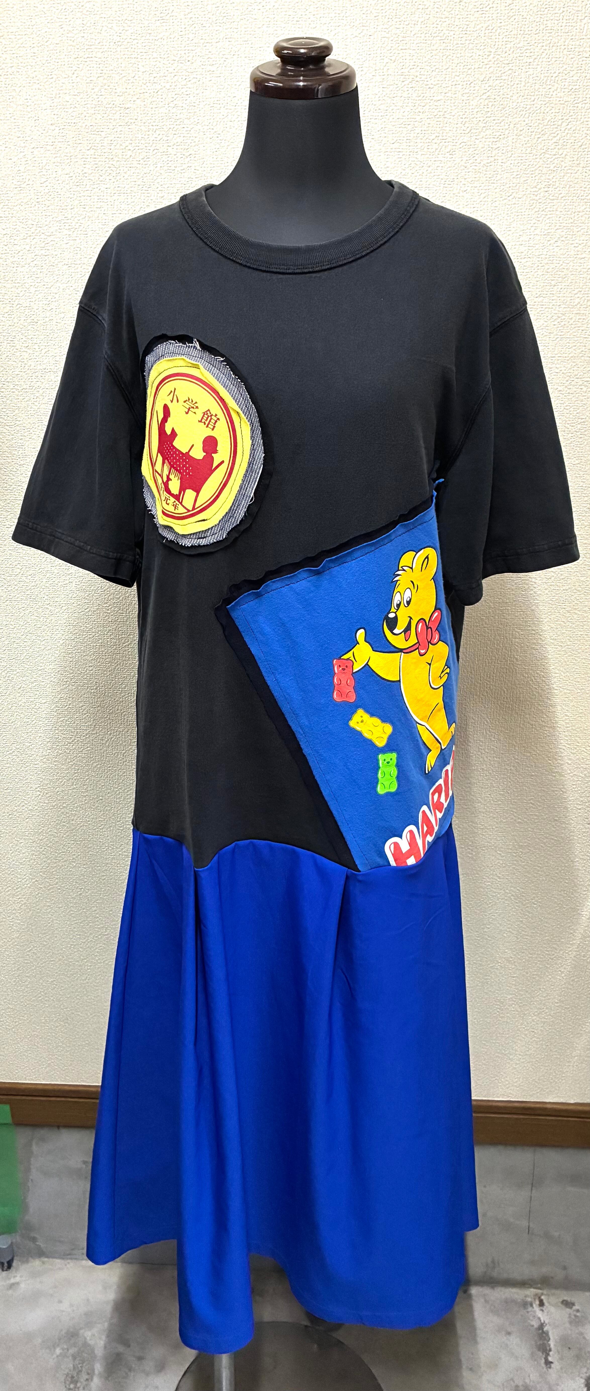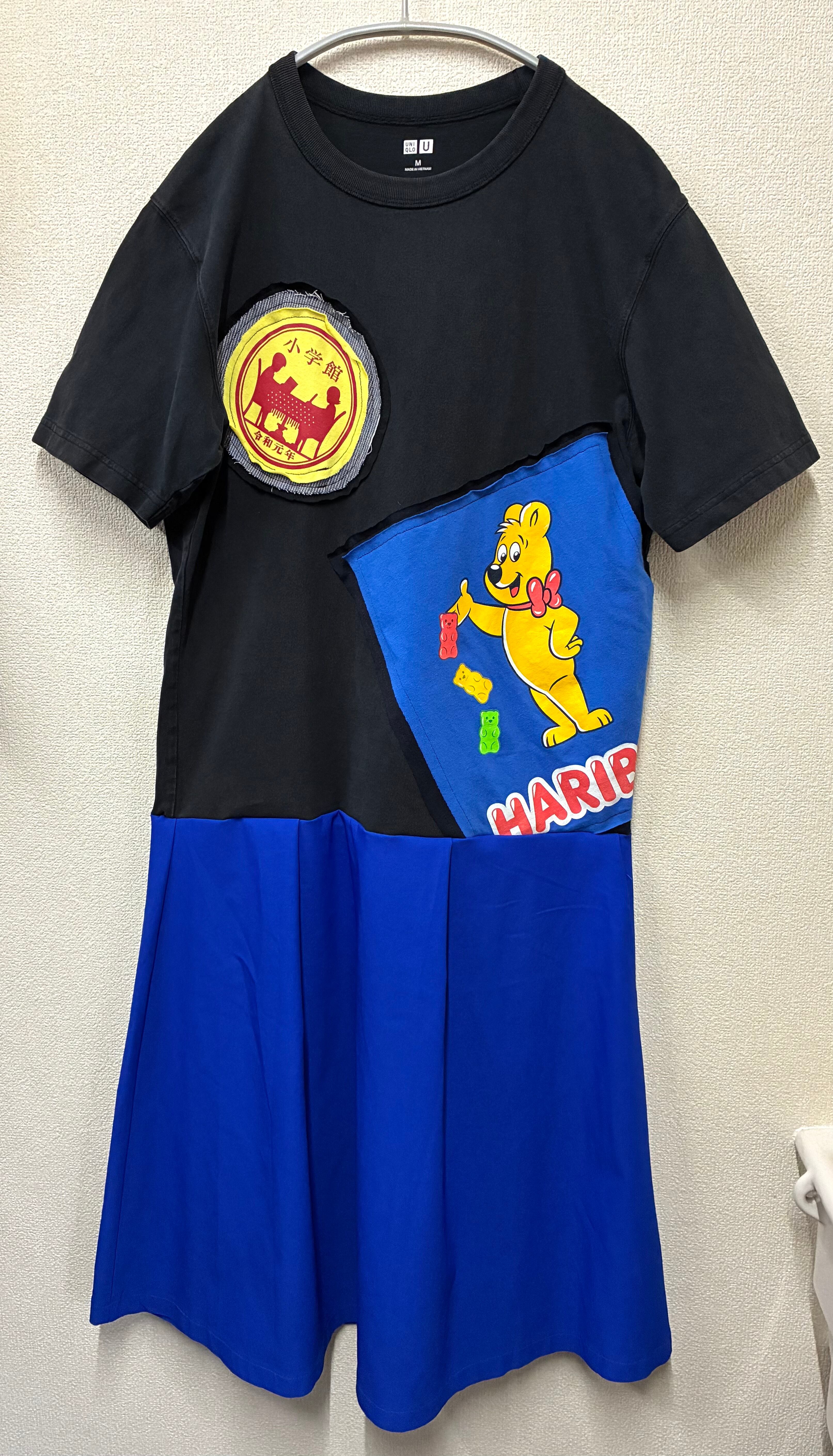 黒Tシャツに勉強とくまを縫いつけ、青のスカートを合わせています♬