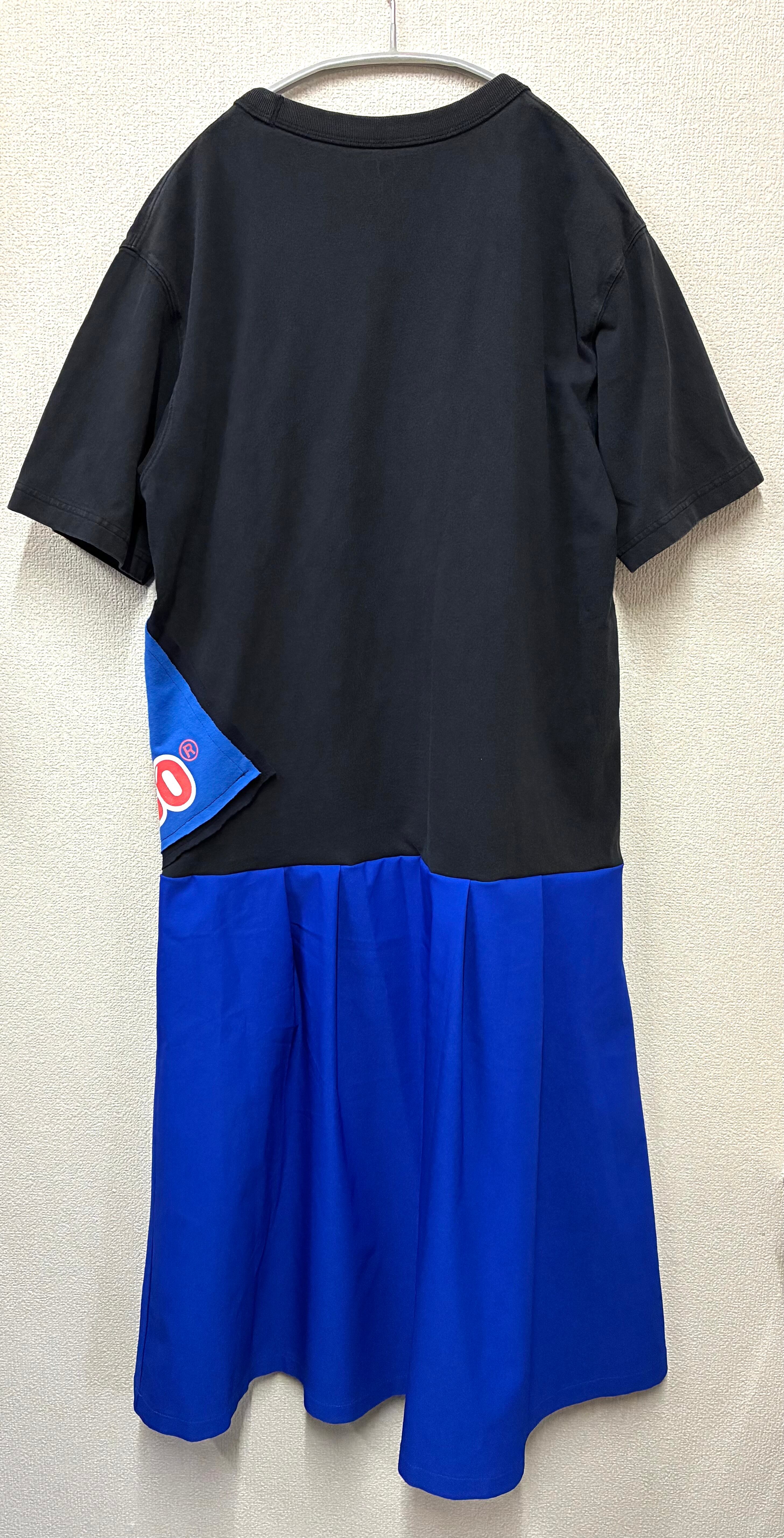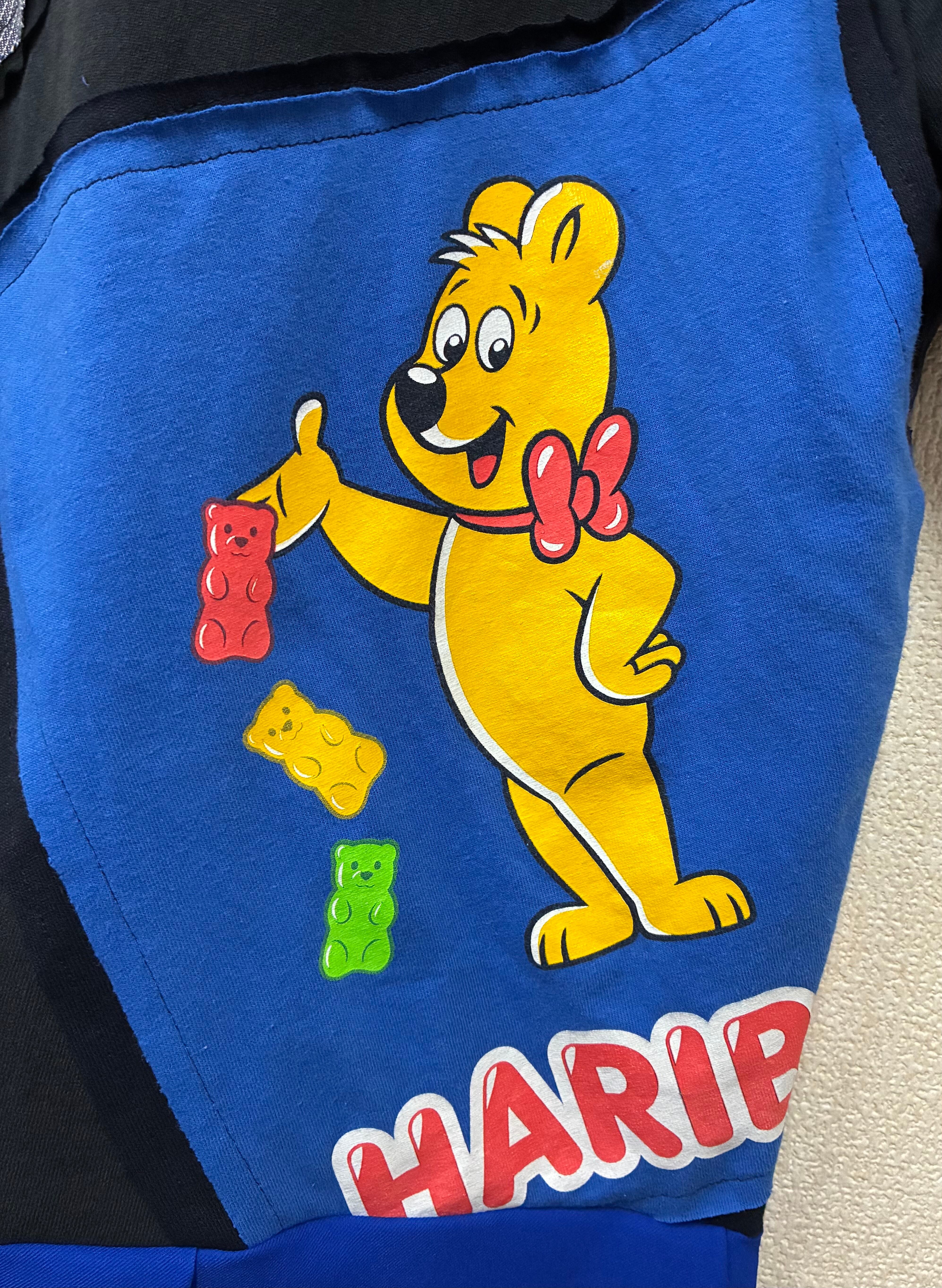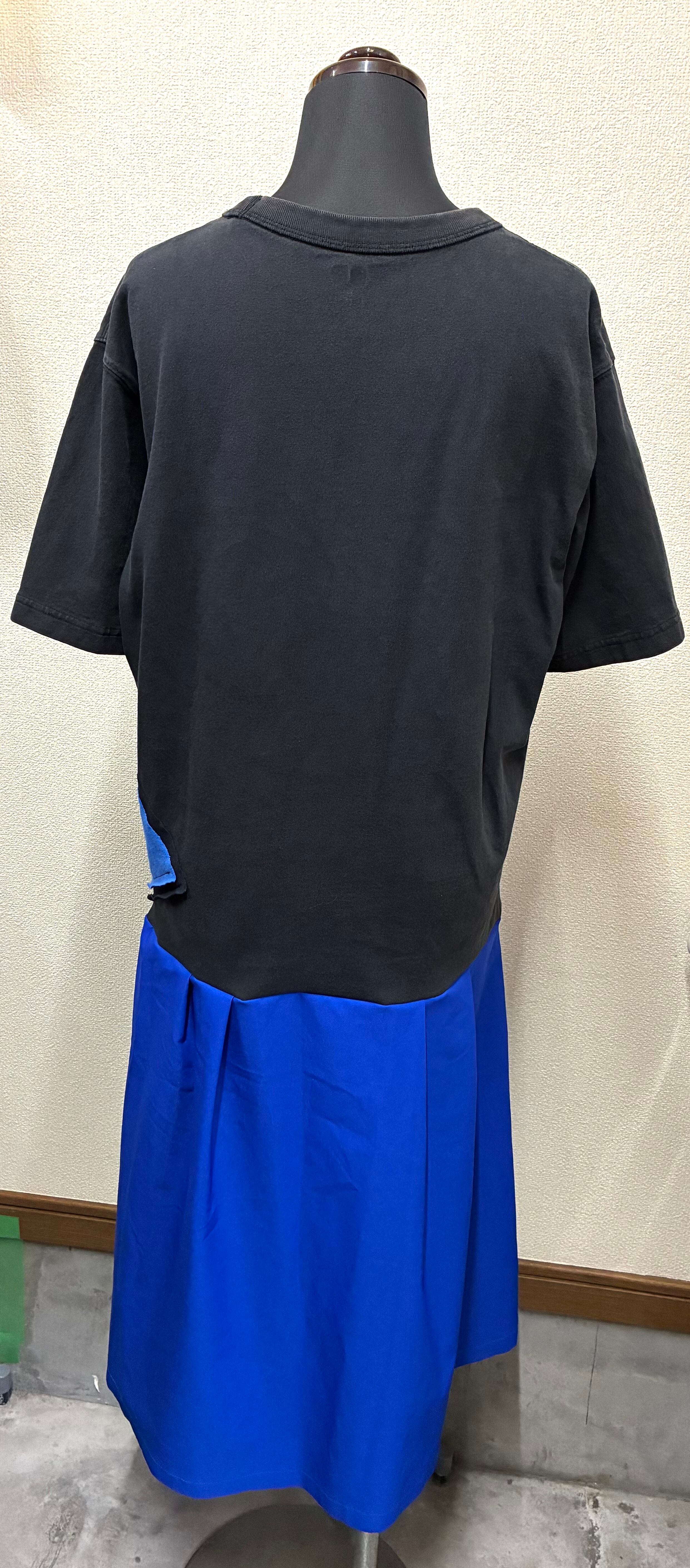 黒Tシャツに勉強とくまを縫いつけ、青のスカートを合わせています♬