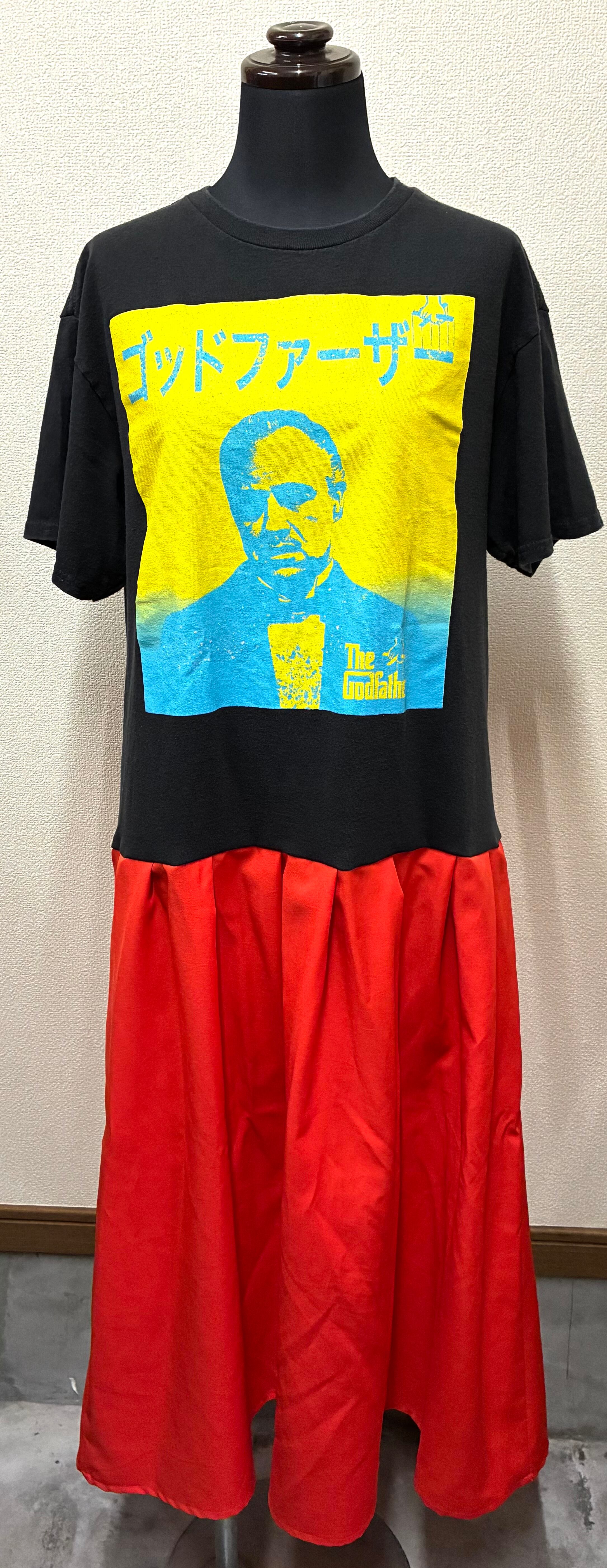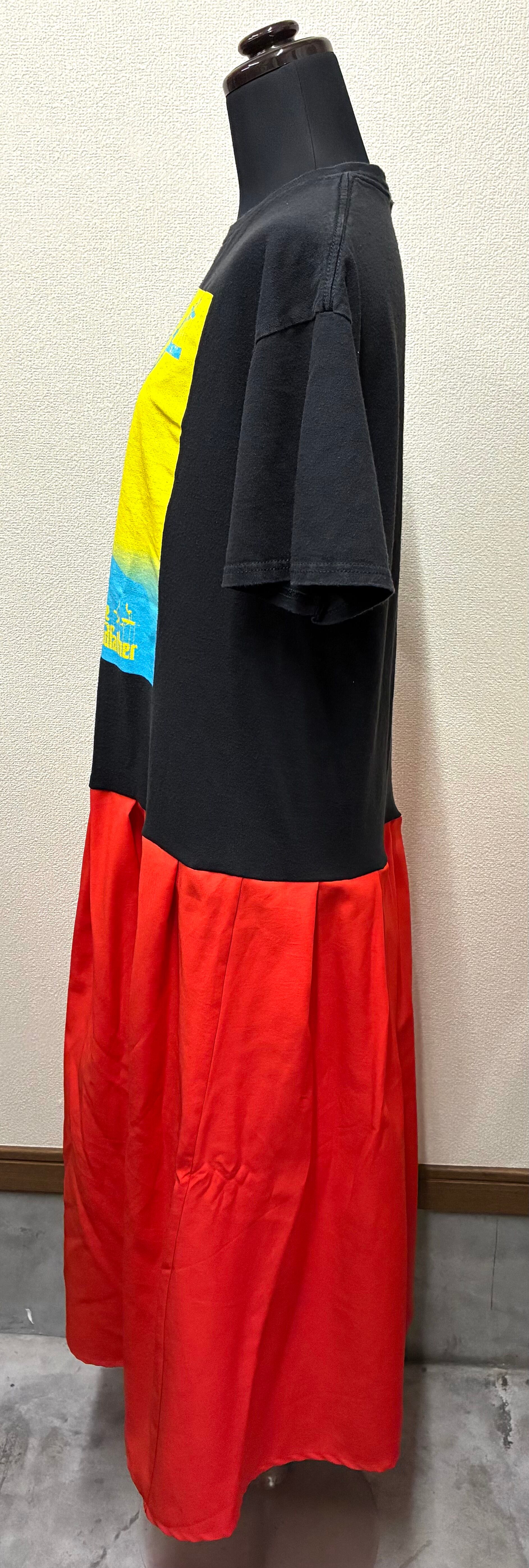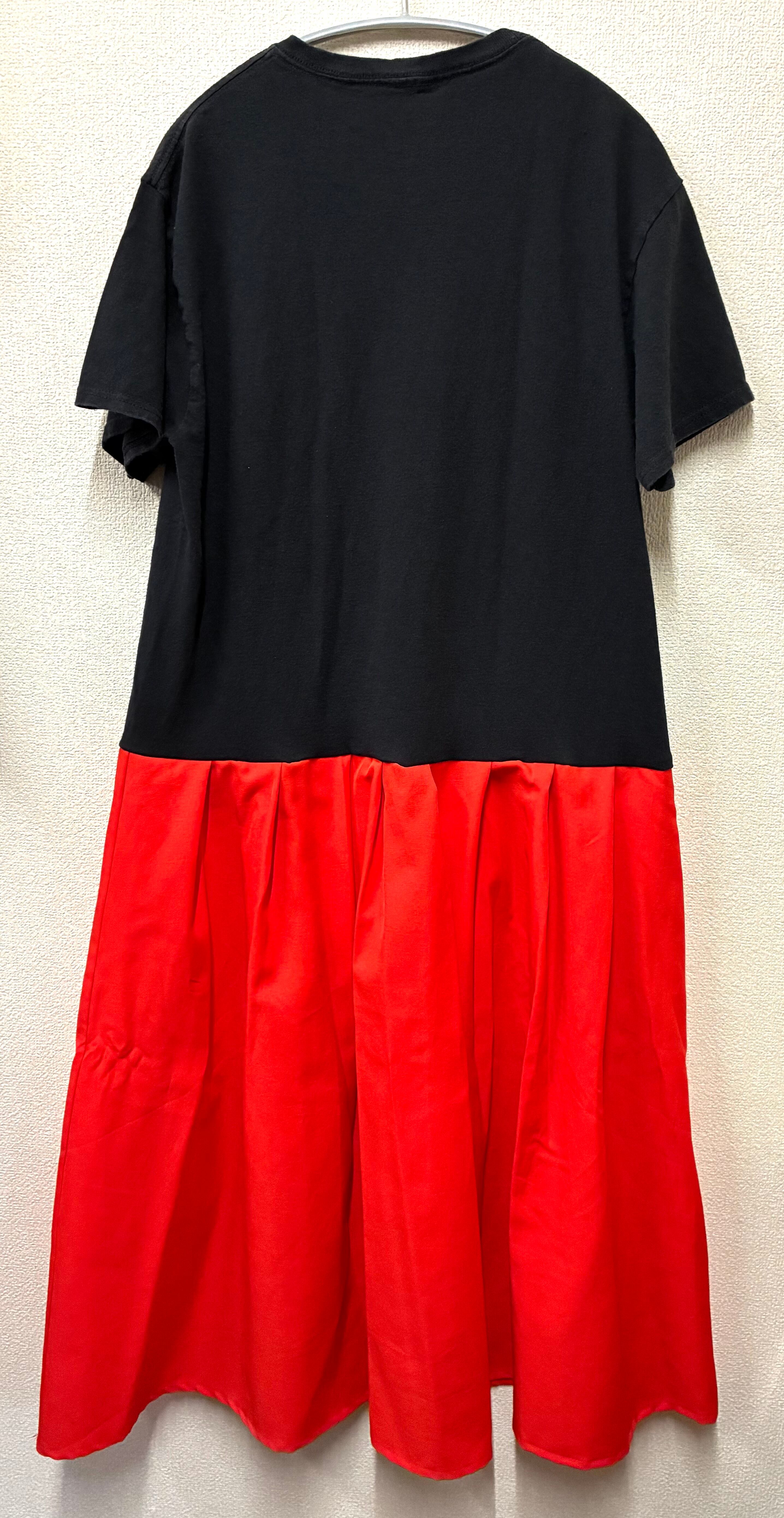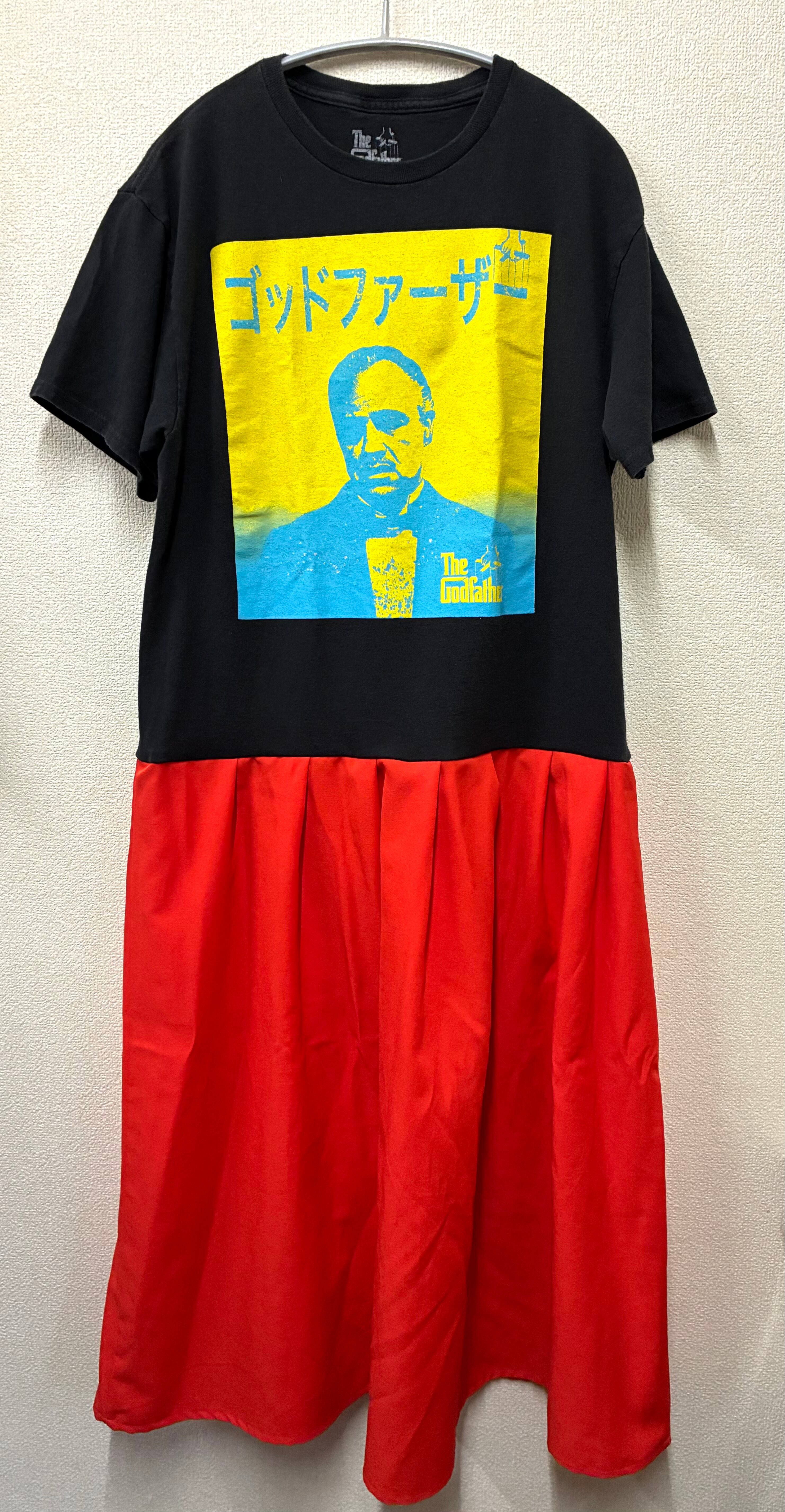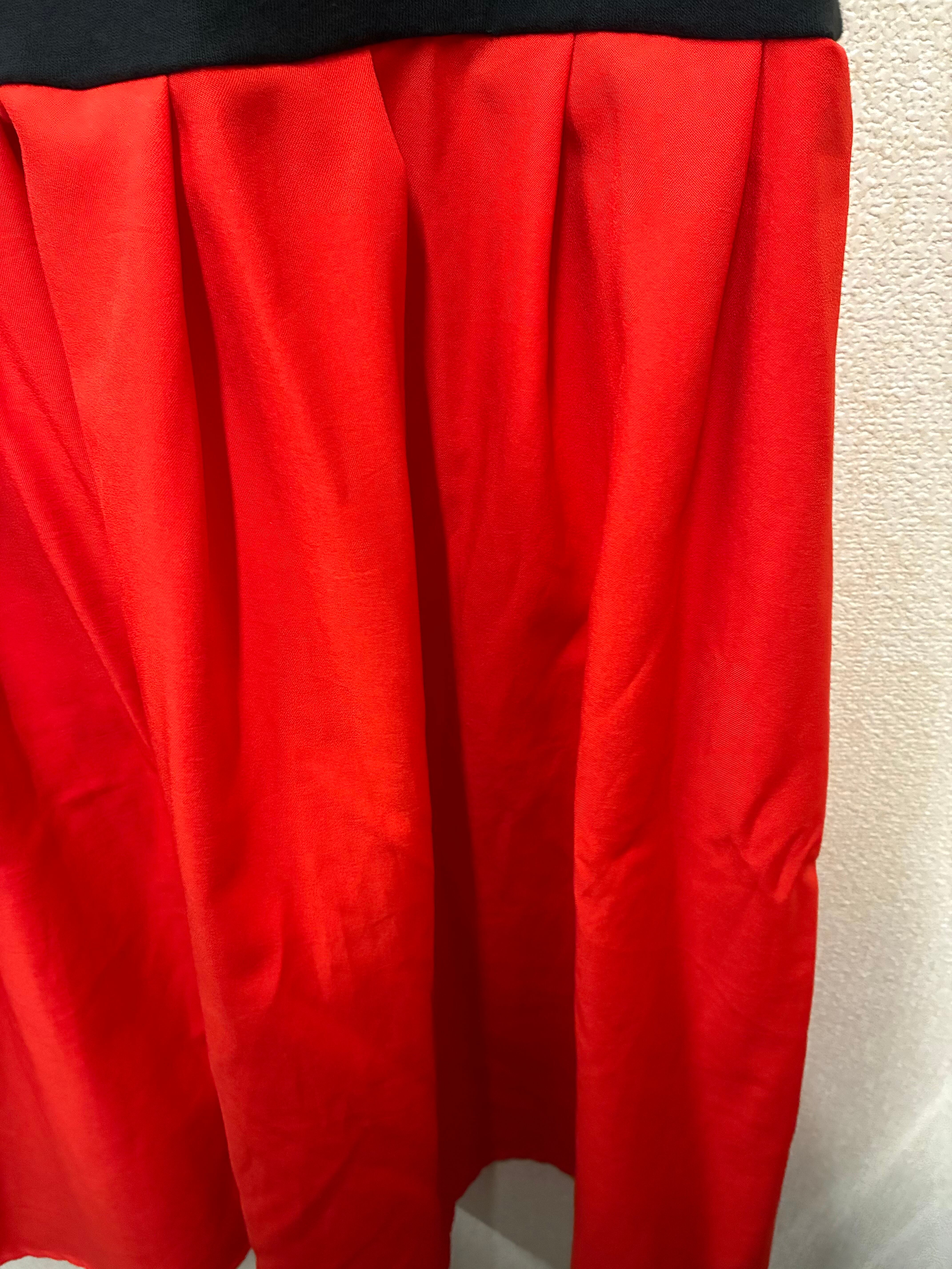 かっこいい黒Tシャツに、朱色のスカートを合わせています♬