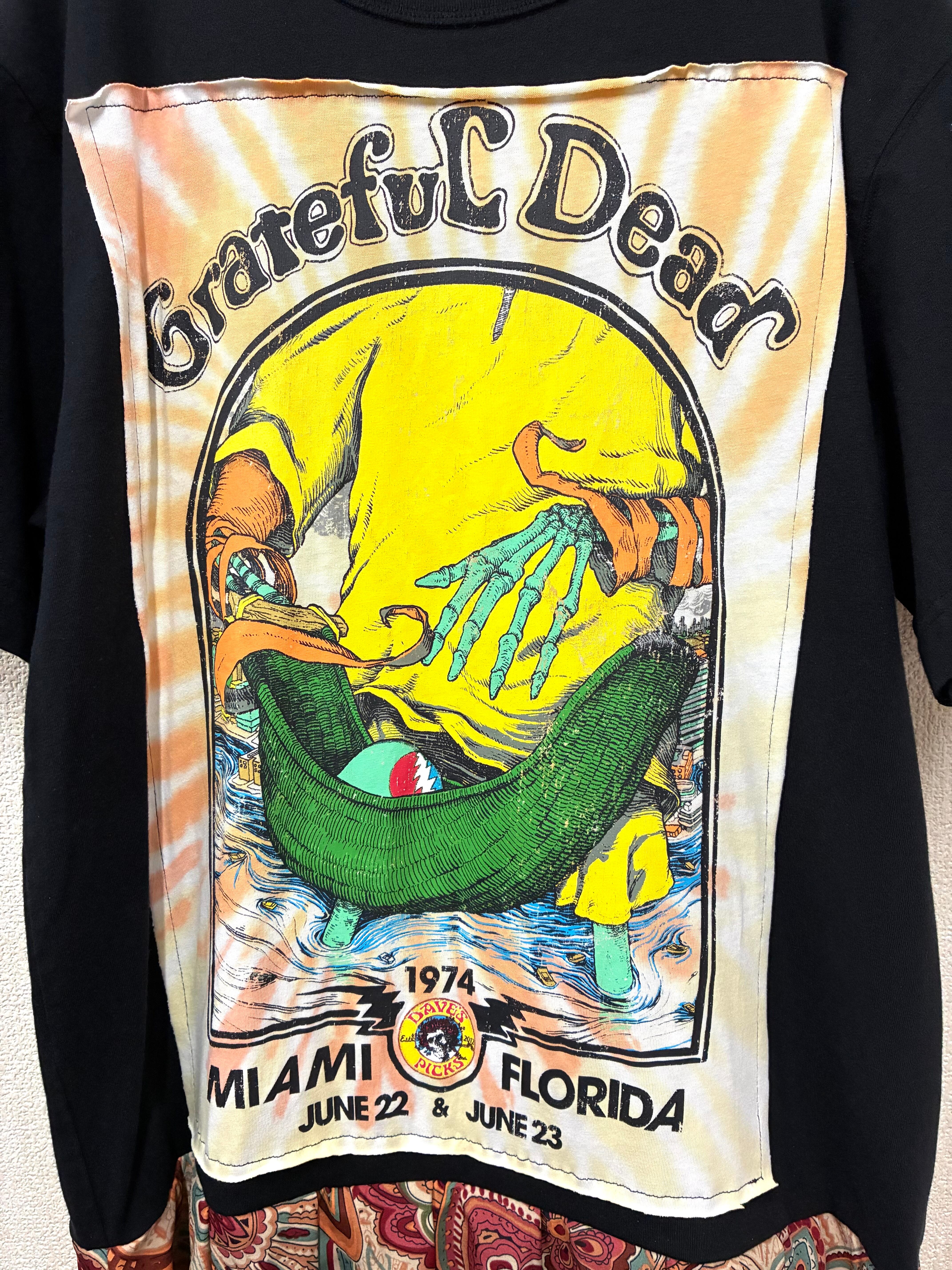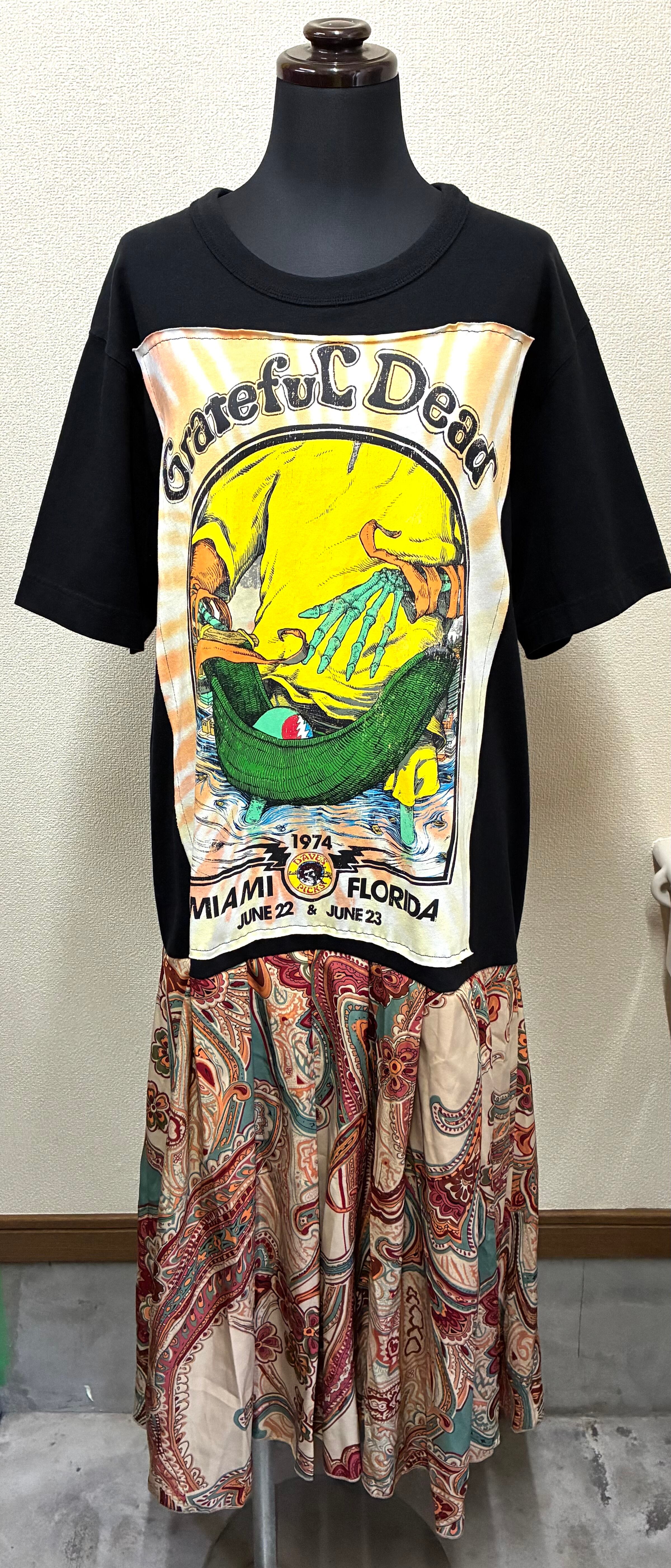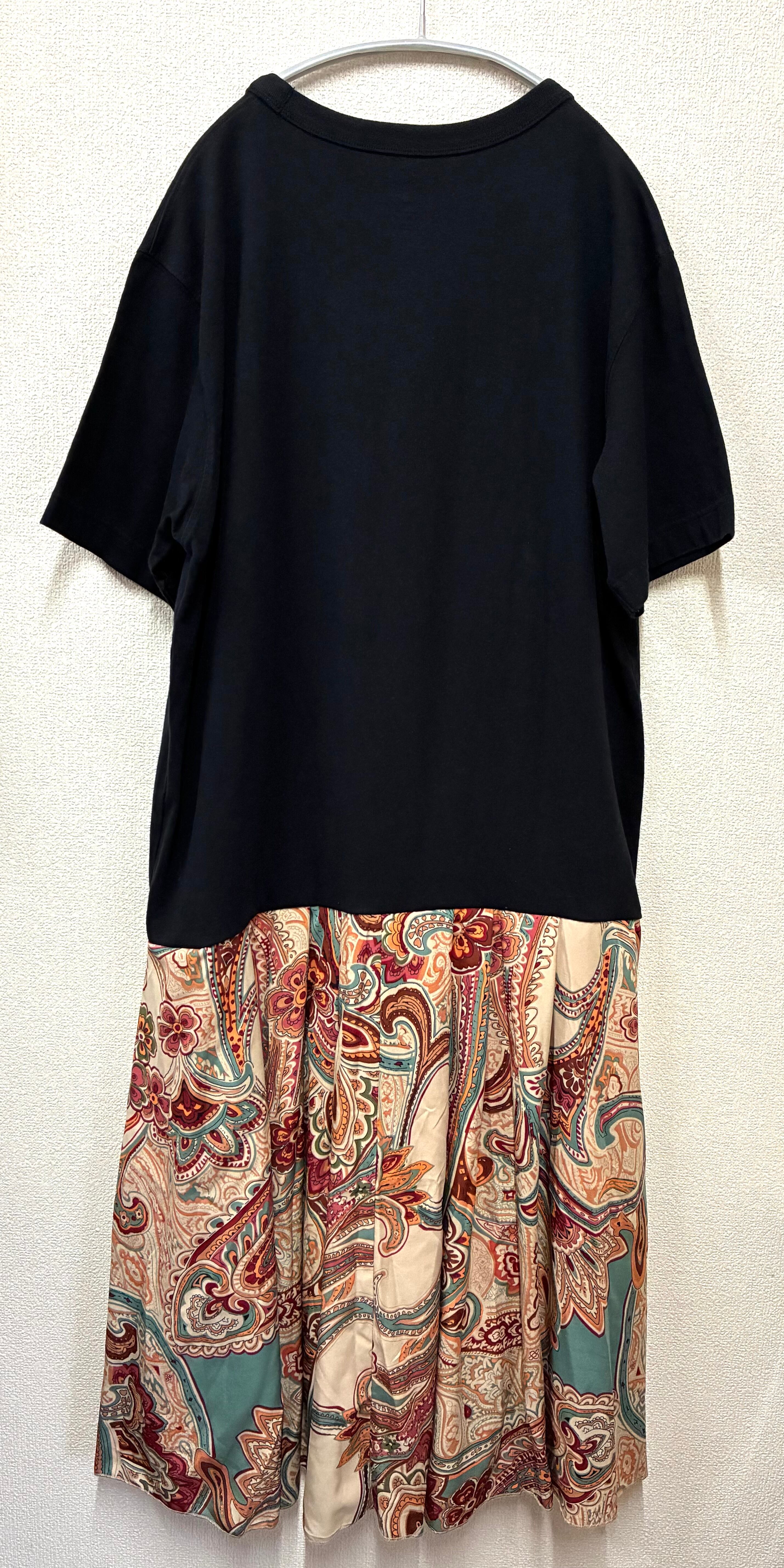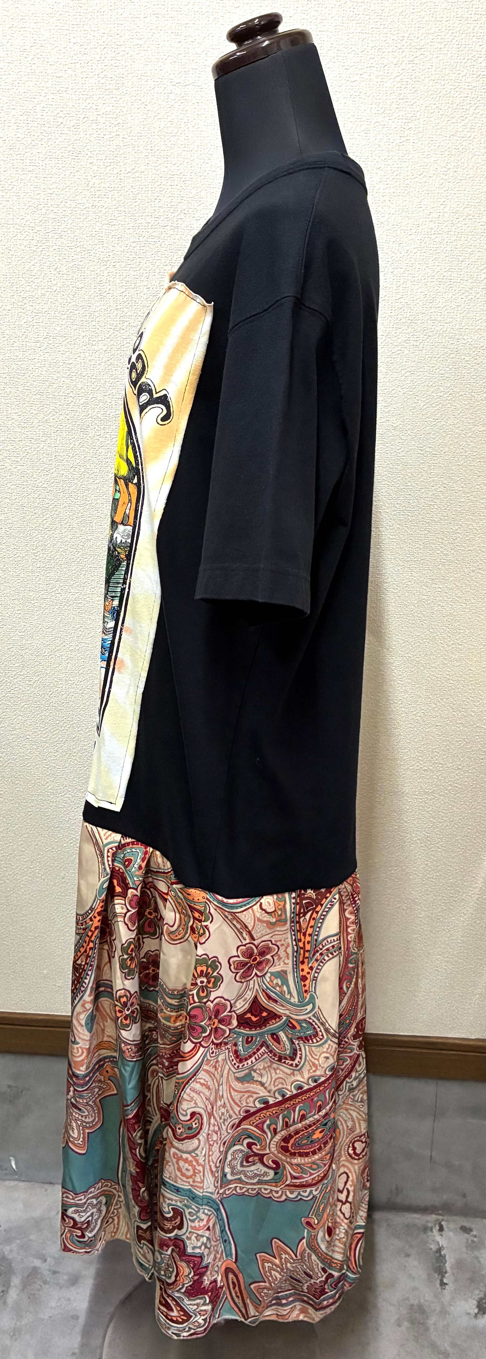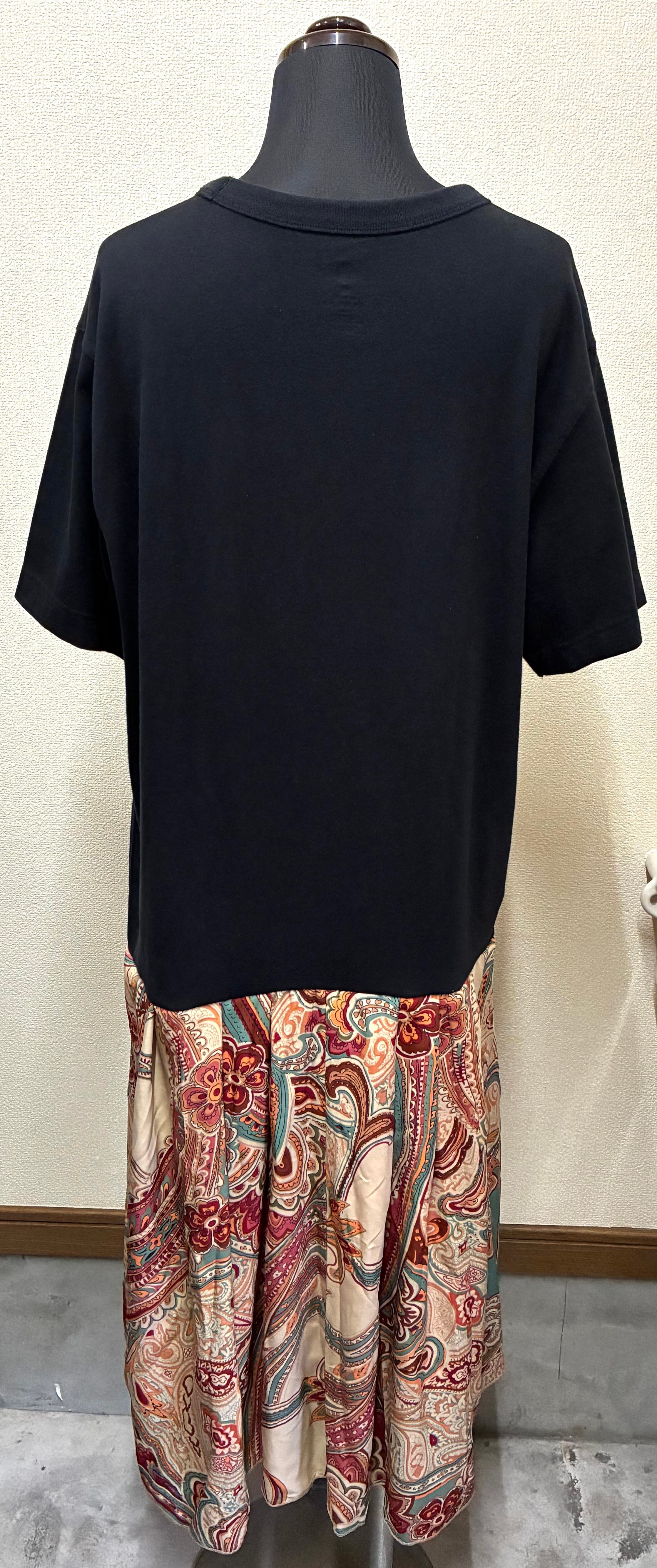 黒Tシャツにかわいいやつを縫いつけ、ペイズリー&お花柄スカートを合わせています♬