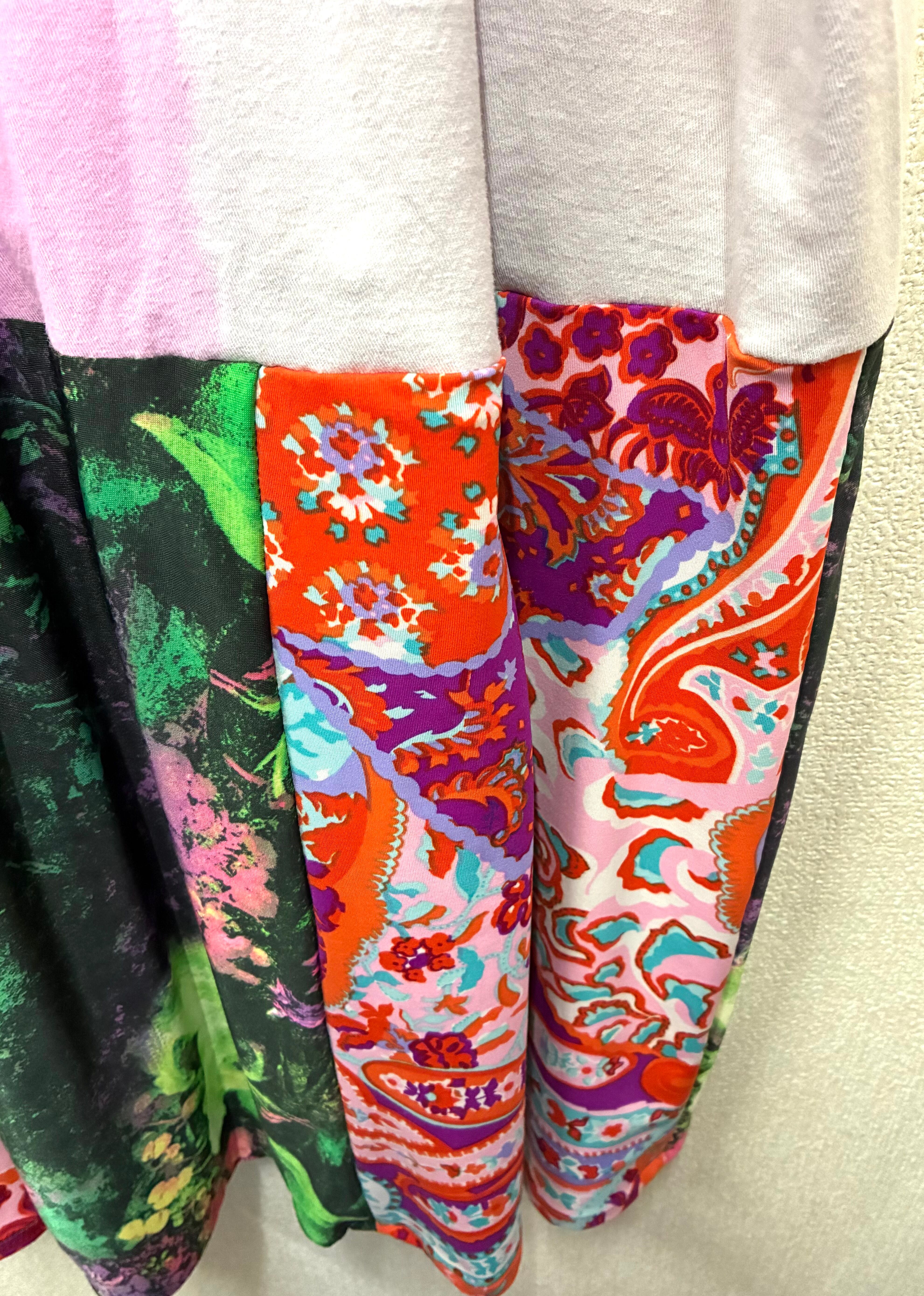 かわいいプリントのビッグTシャツに、同素材の柄生地で作ったスカートを合わせています♬