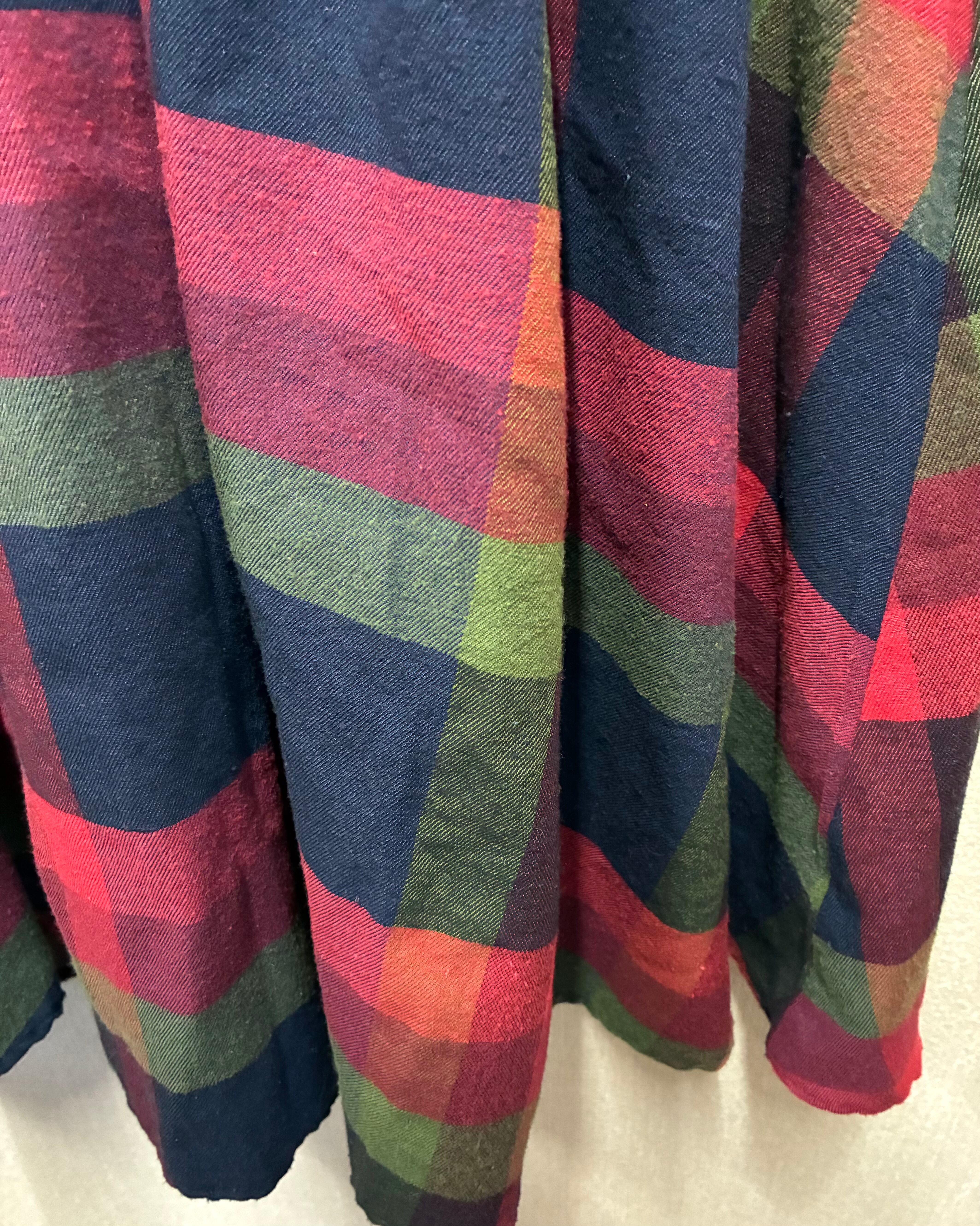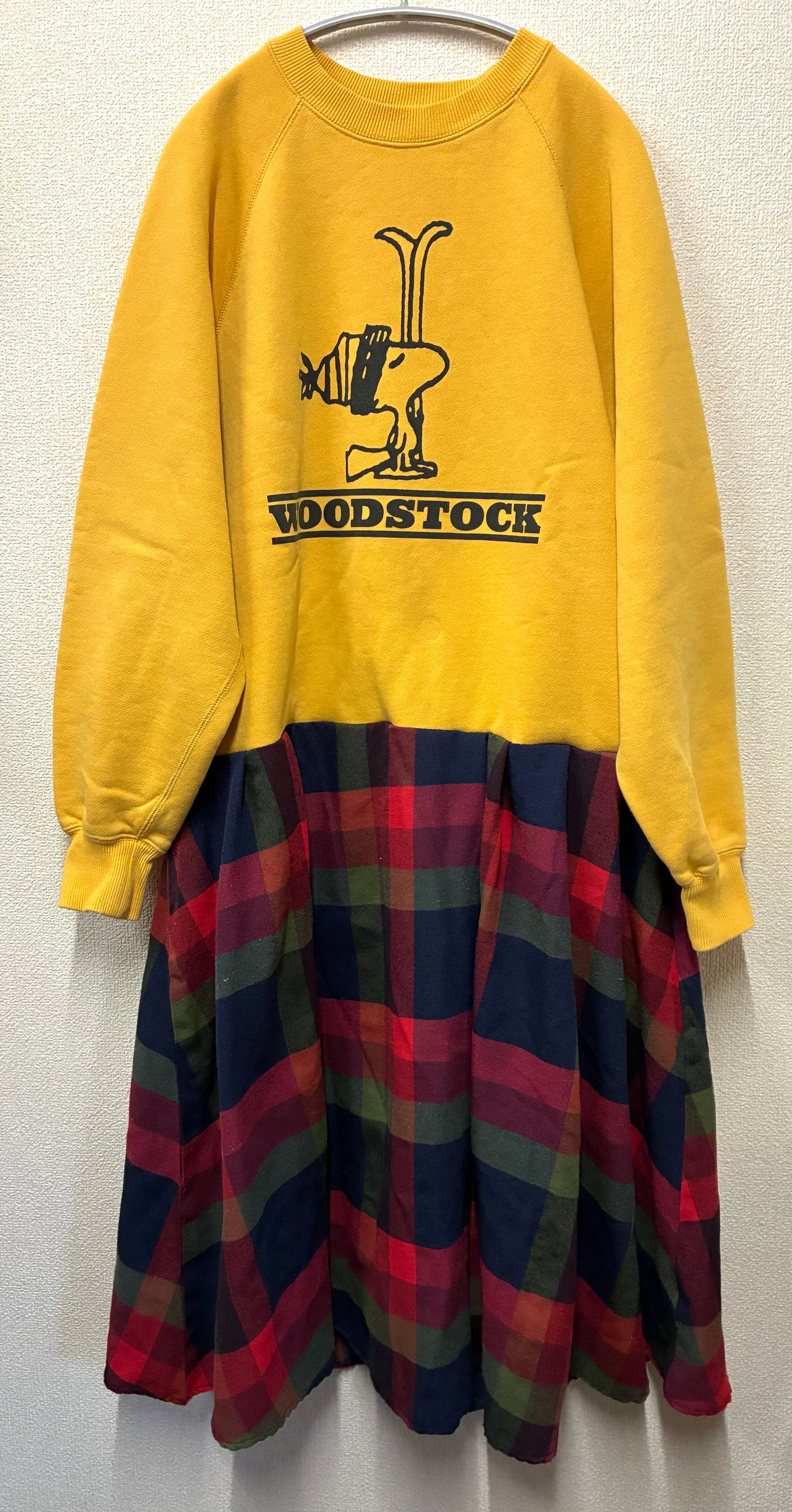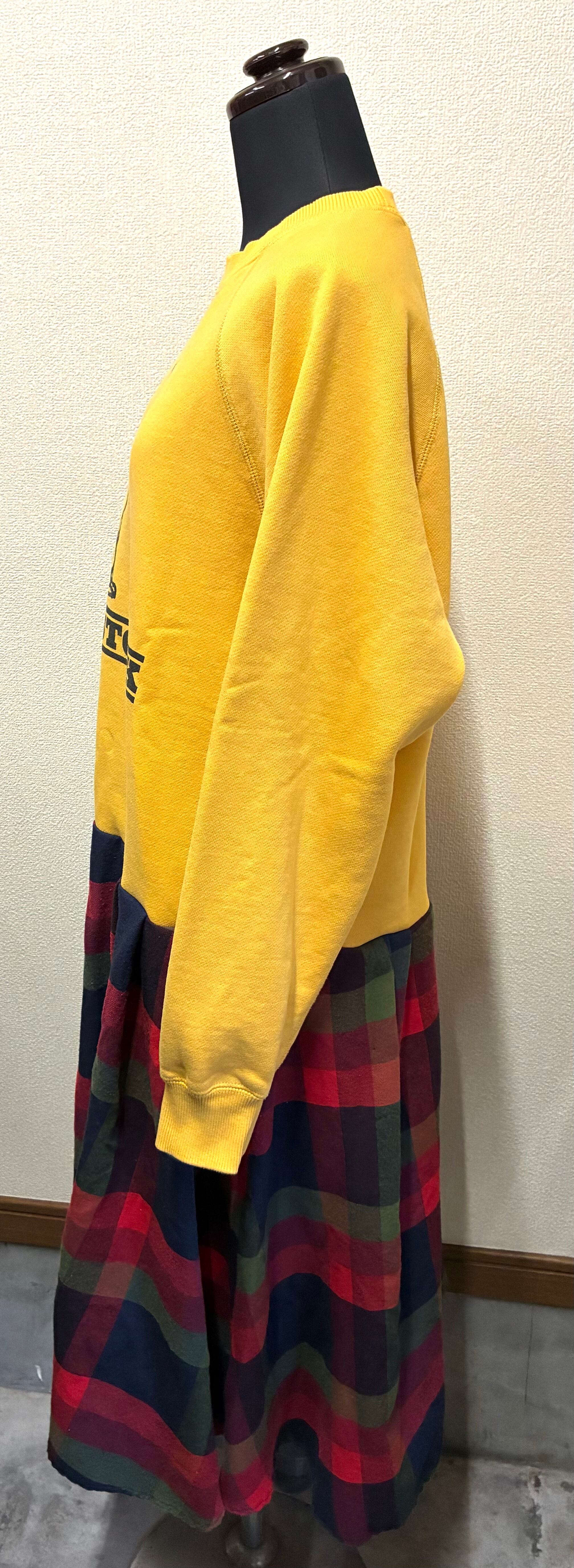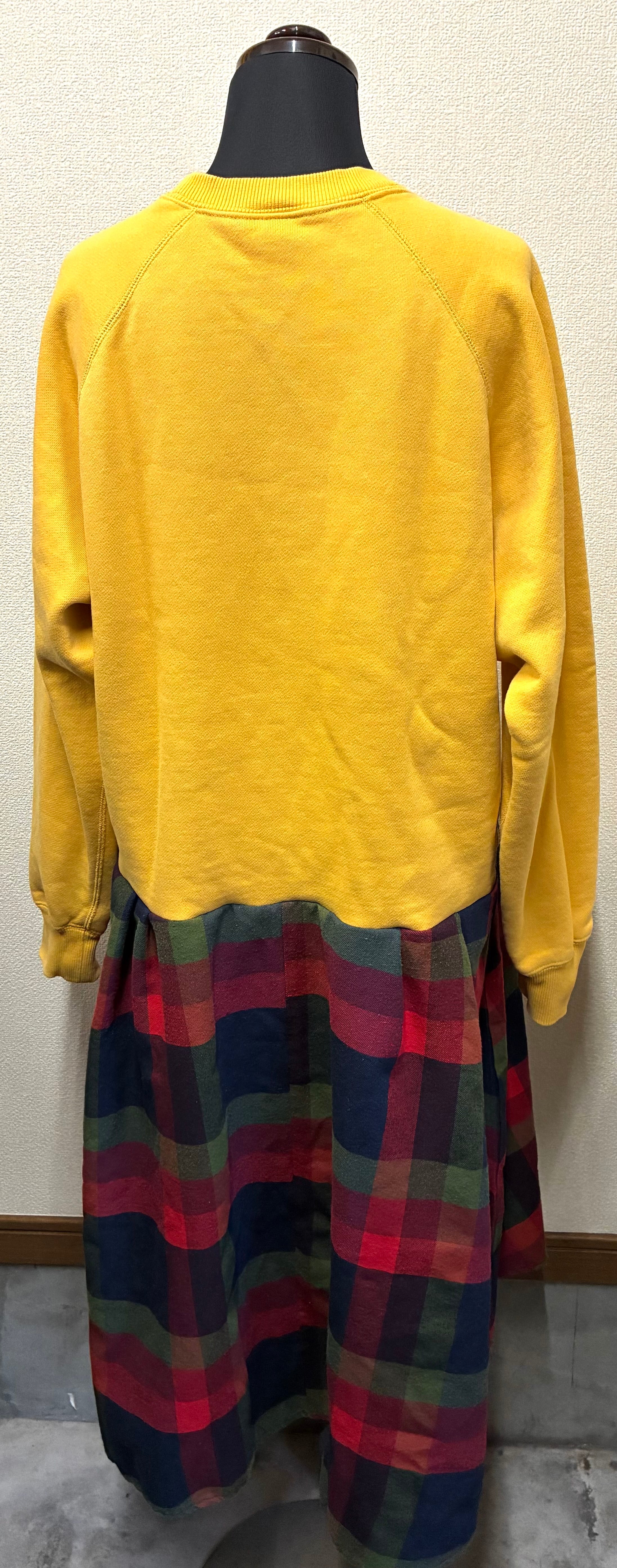 かわいい山吹色の裏起毛スウェットに、ネル生地のチェック柄スカートを合わせています♬