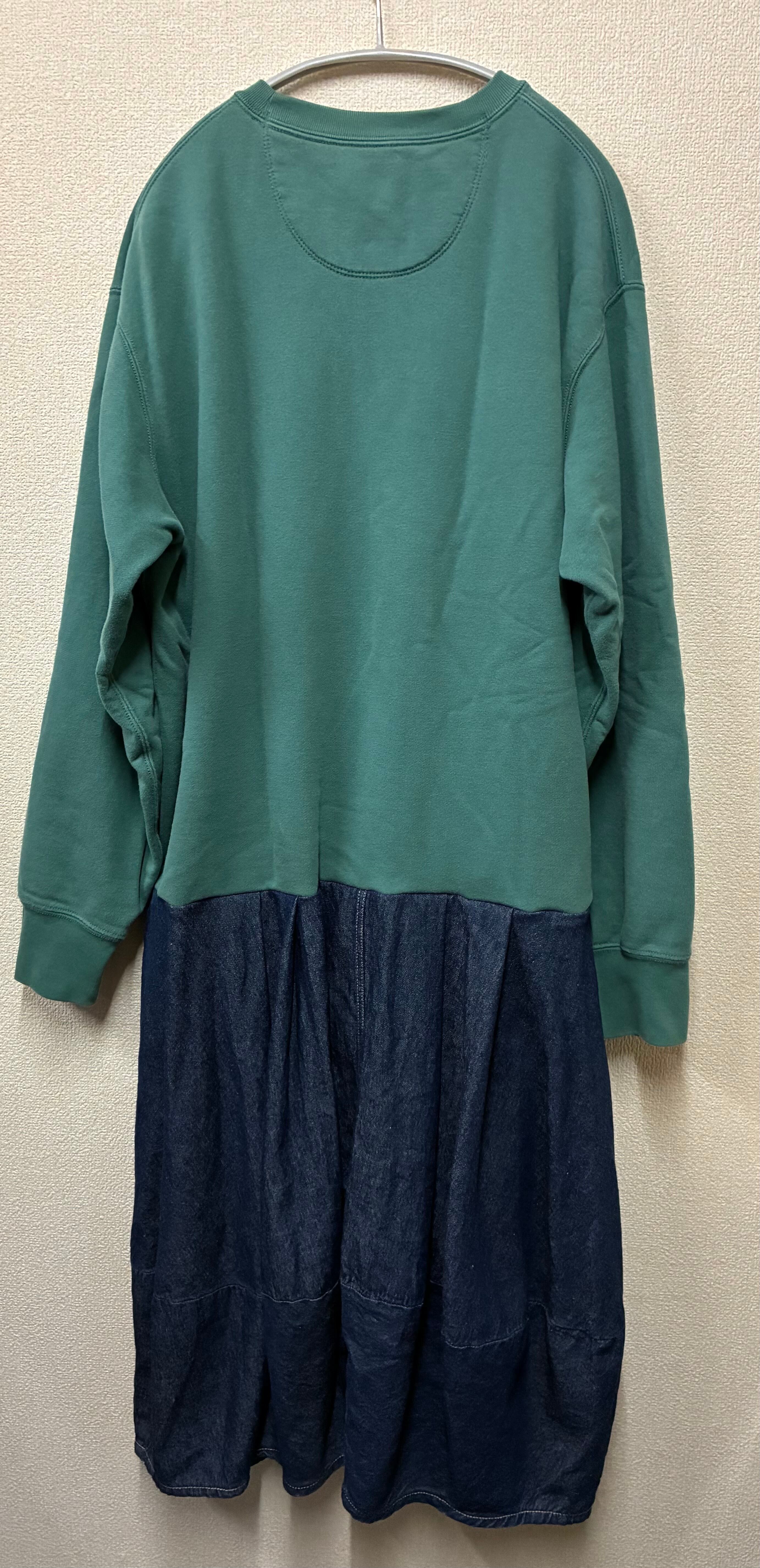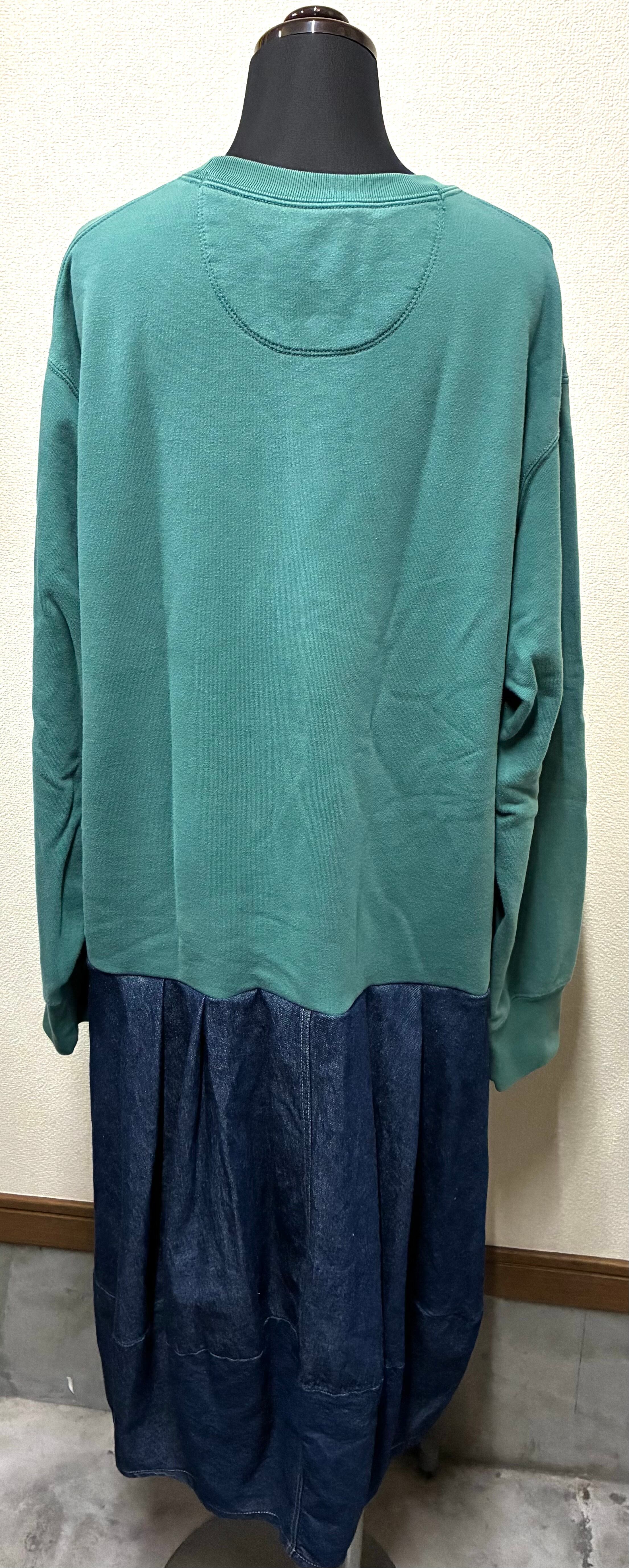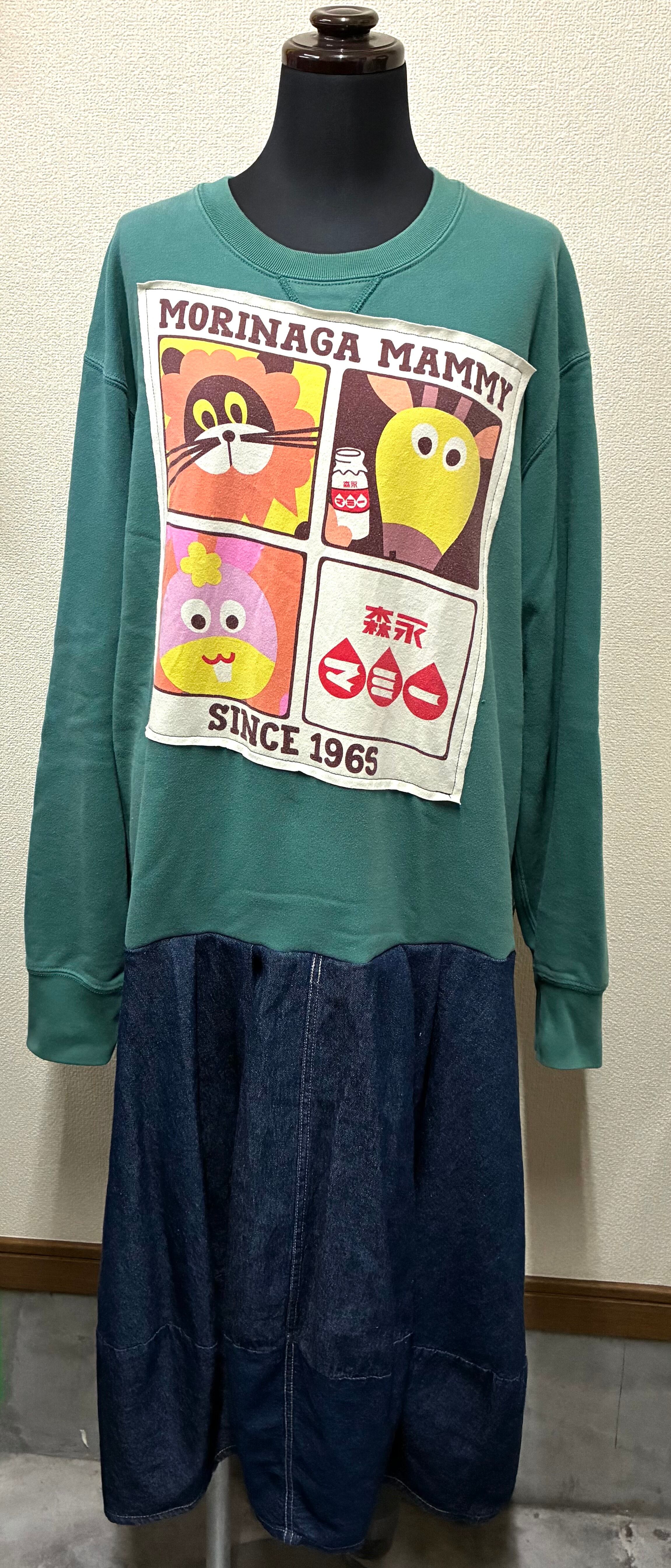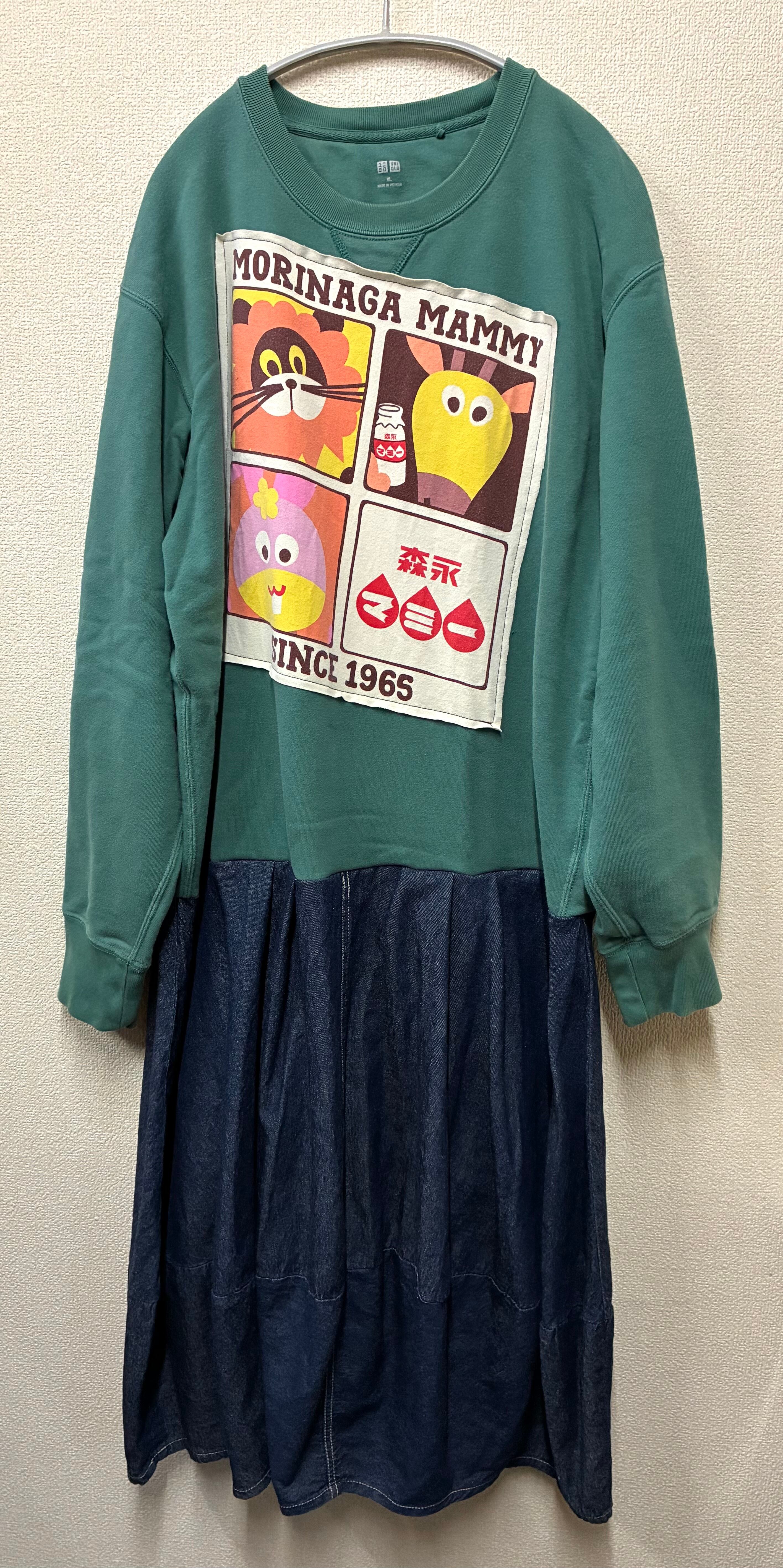 グリーン系スウェットに動物達を縫いつけ、変形デニムスカートを合わせています♬