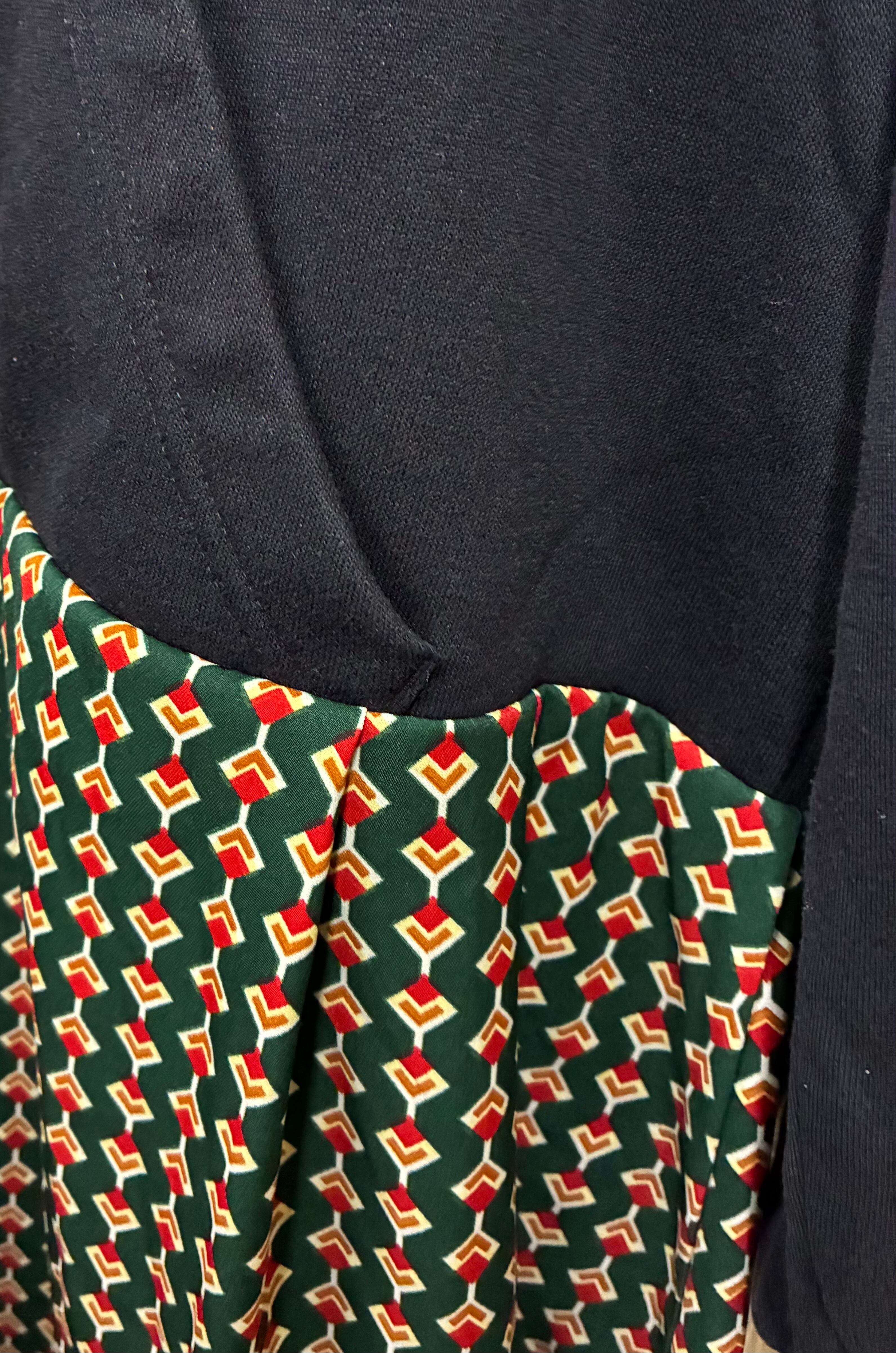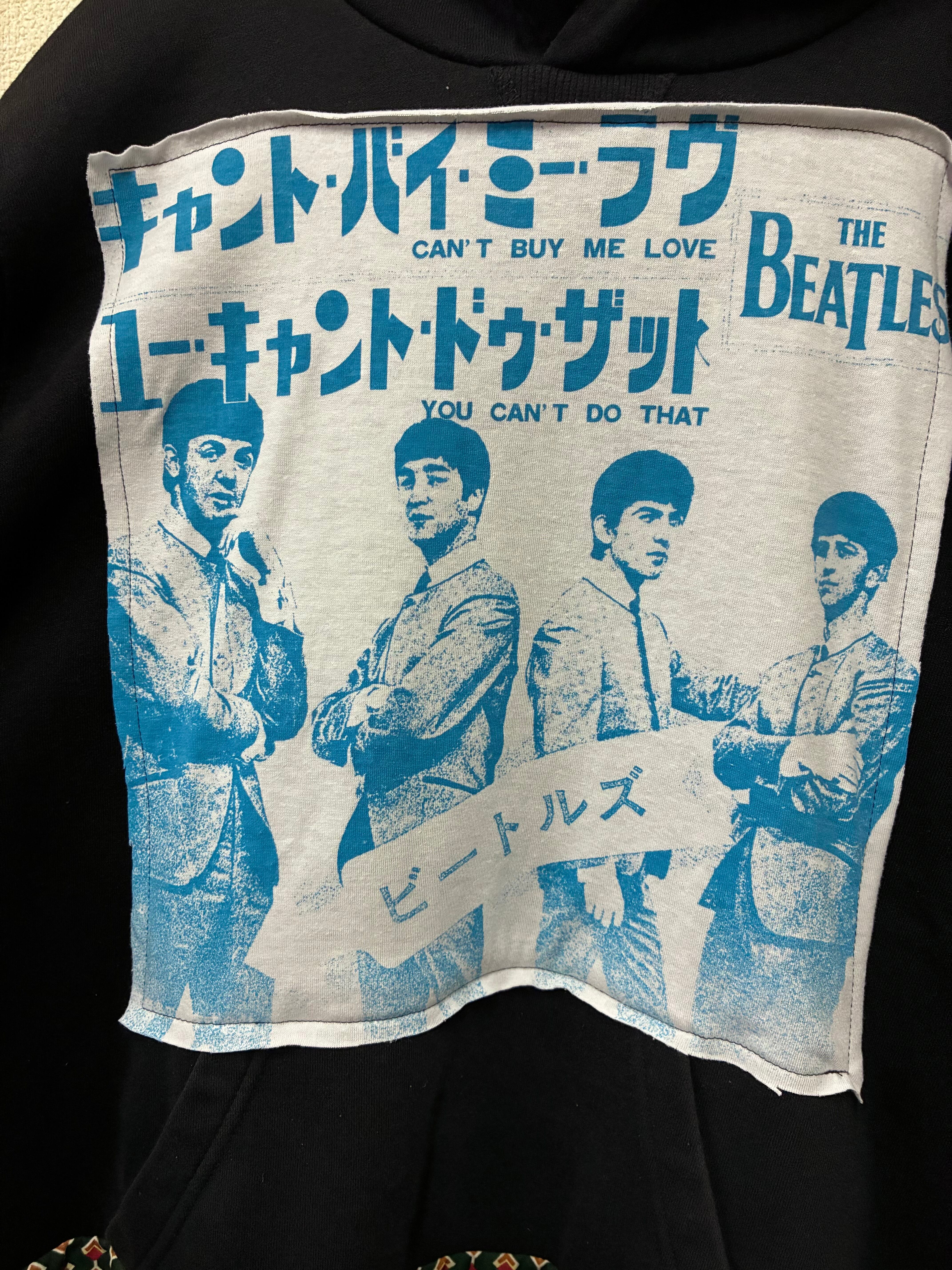 黒パーカーにロック4人組を縫いつけ、深緑ベースの柄スカートを合わせています♬