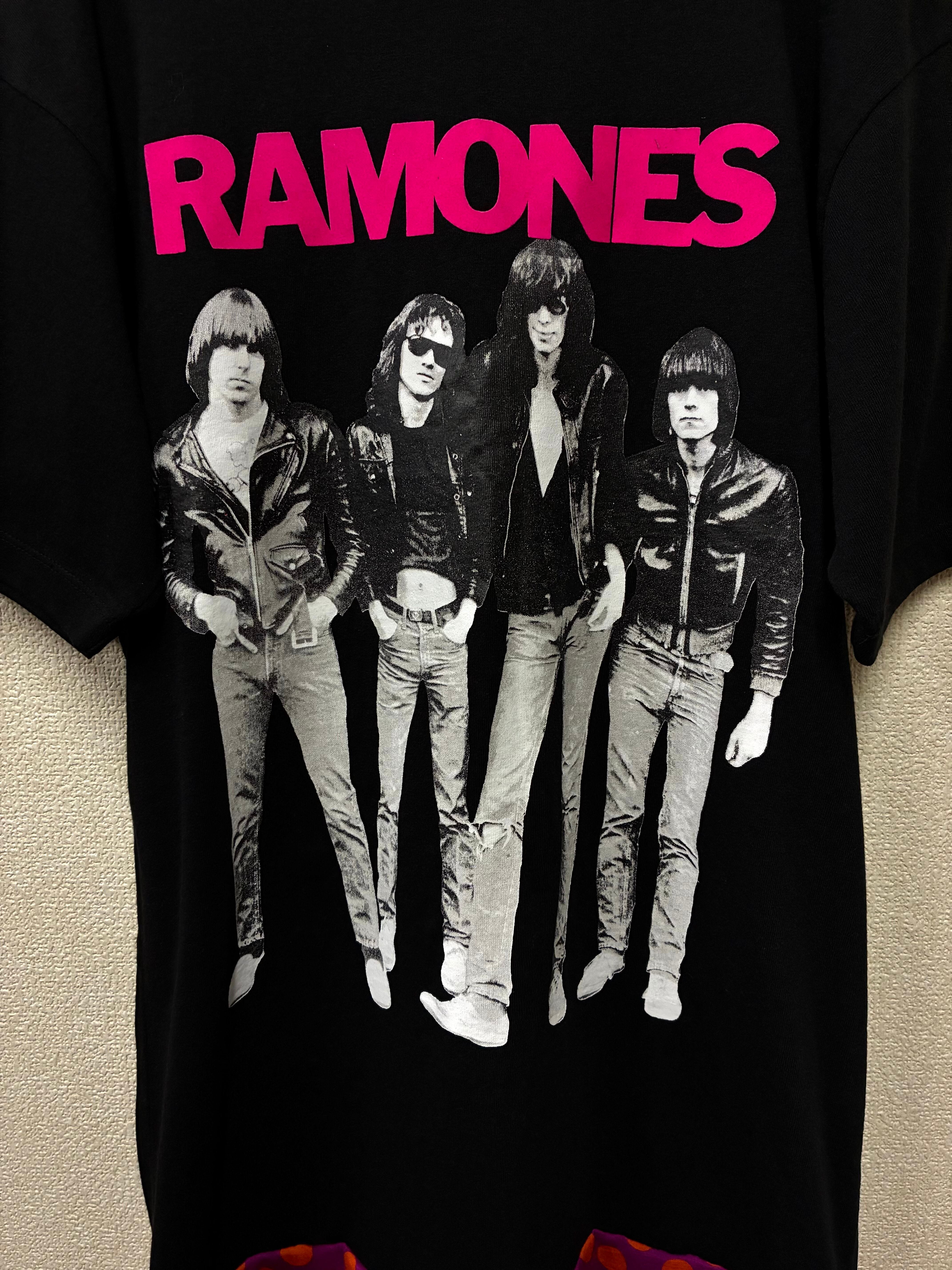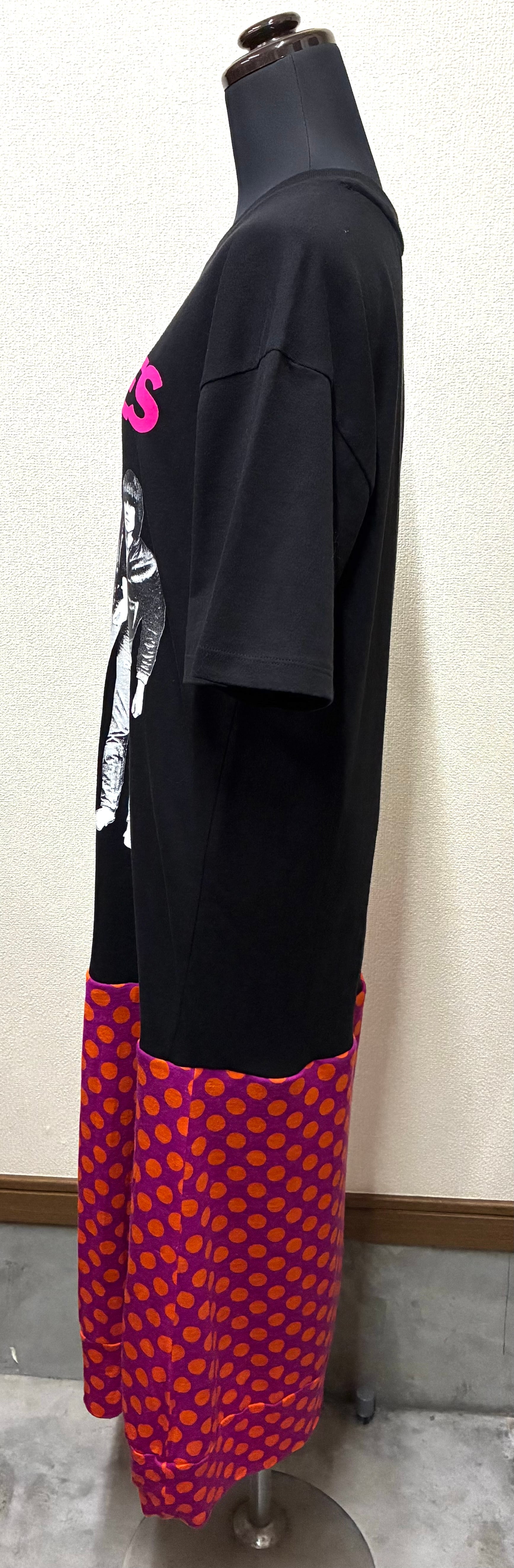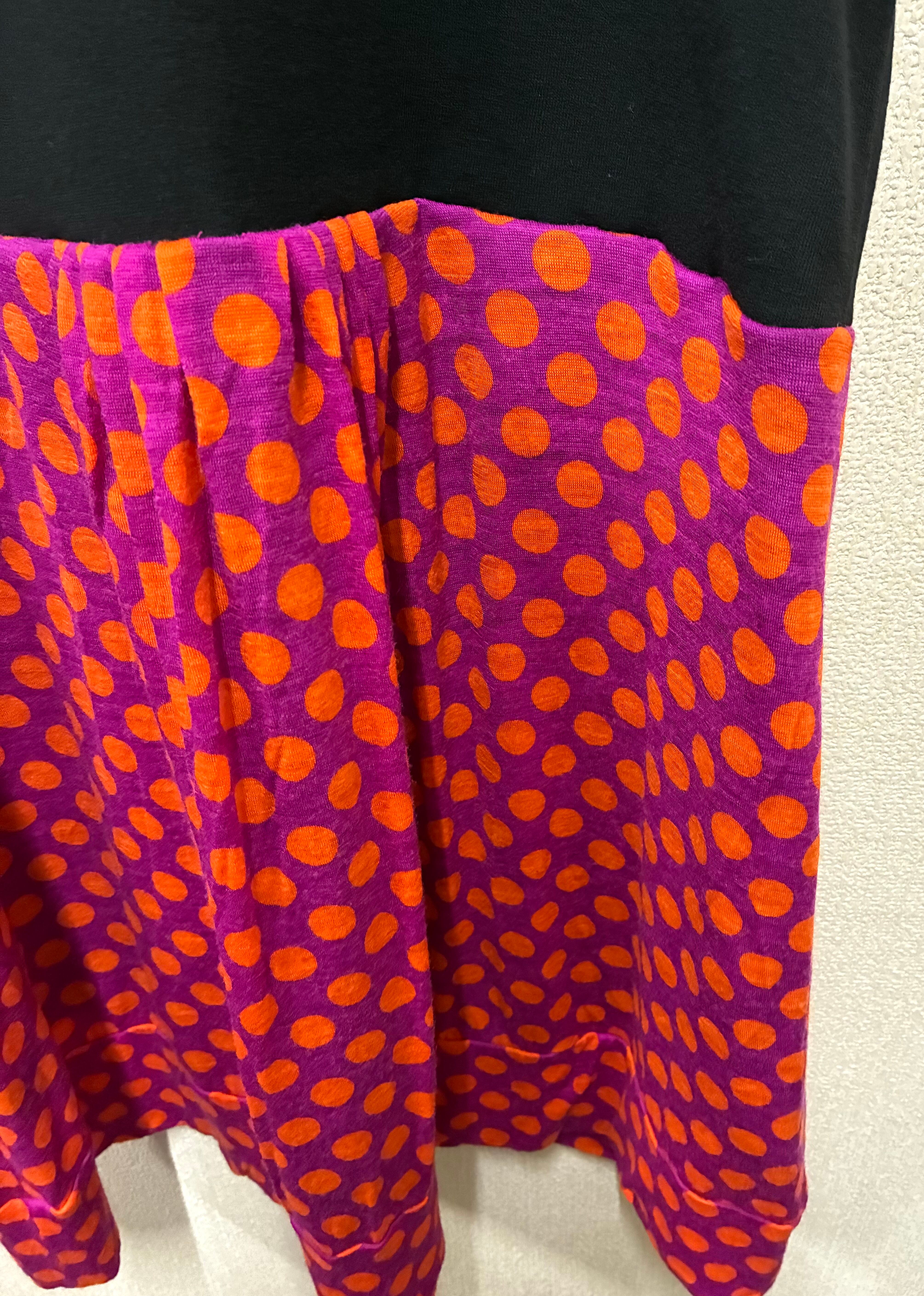 かっちょいい黒Tシャツに、紫色✖️オレンジのドット柄スカートを合わせています♬