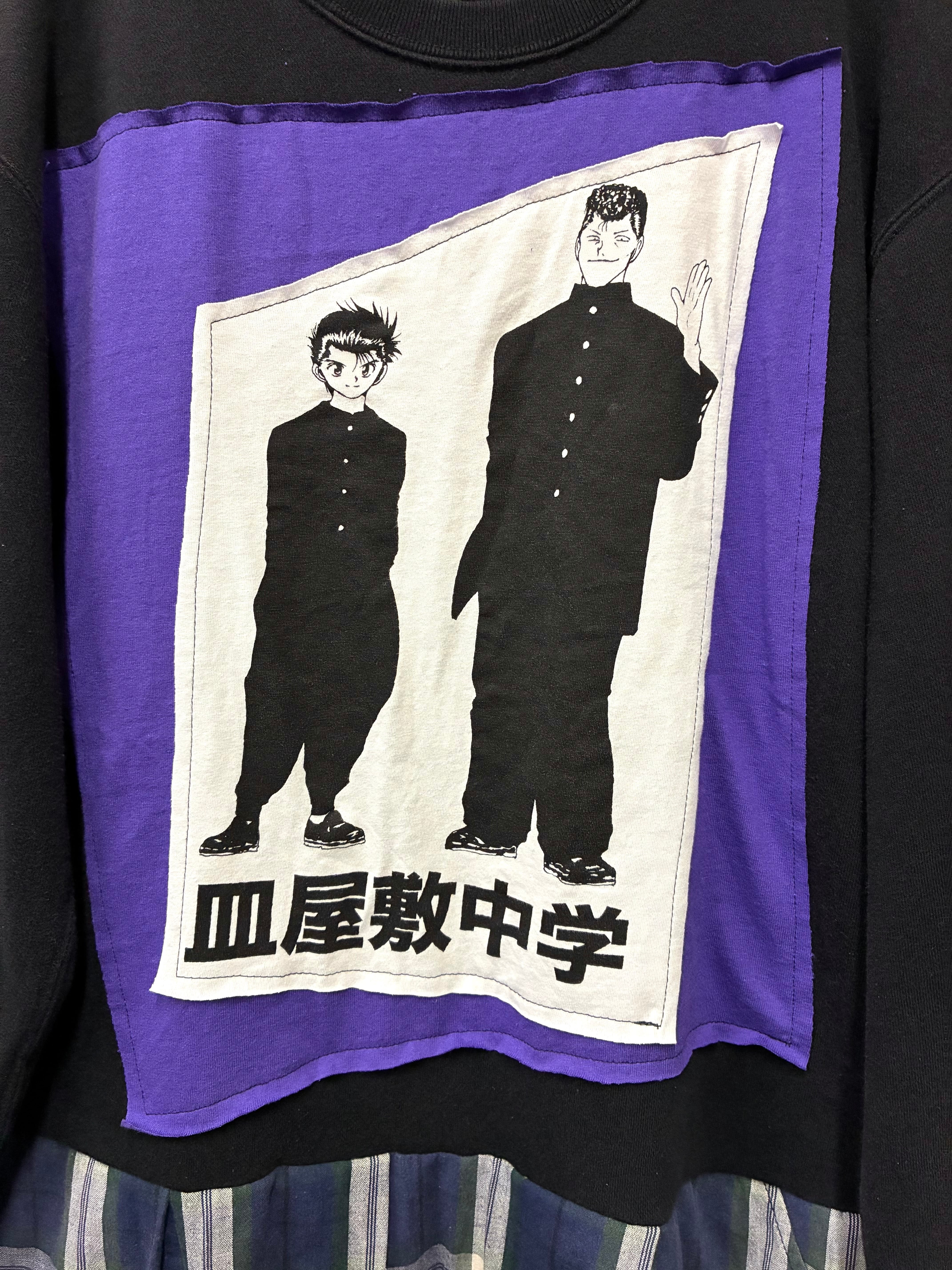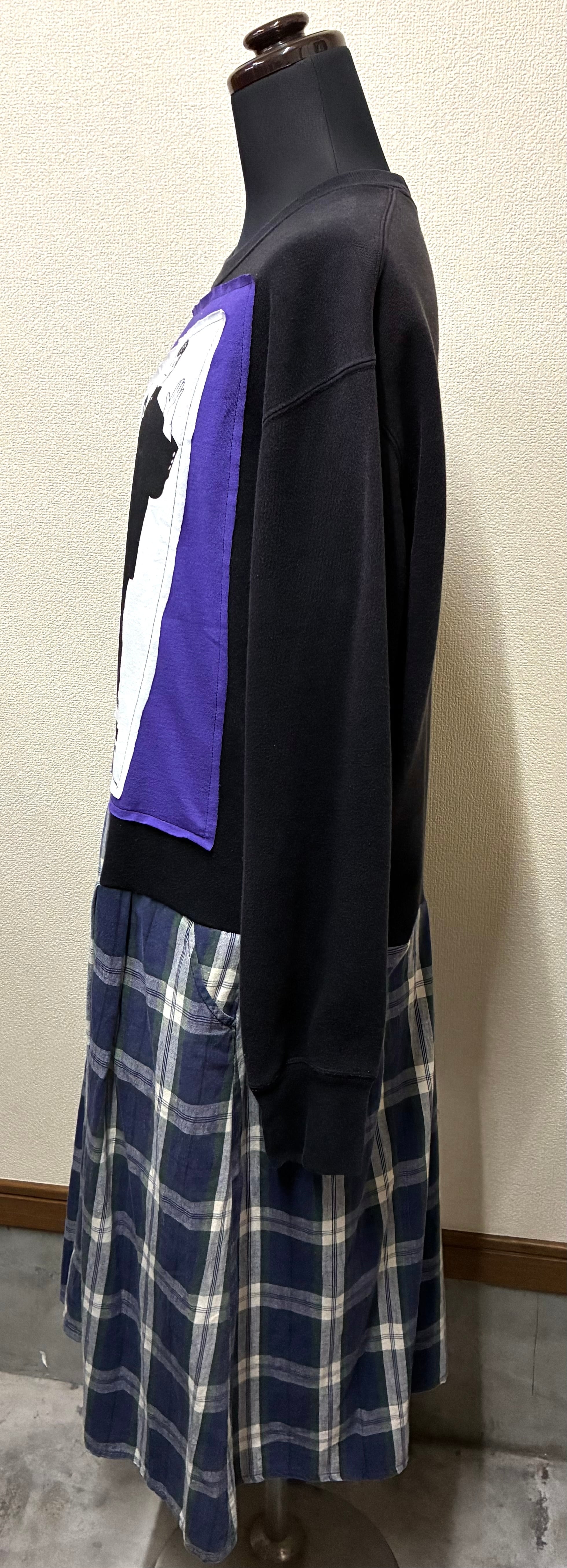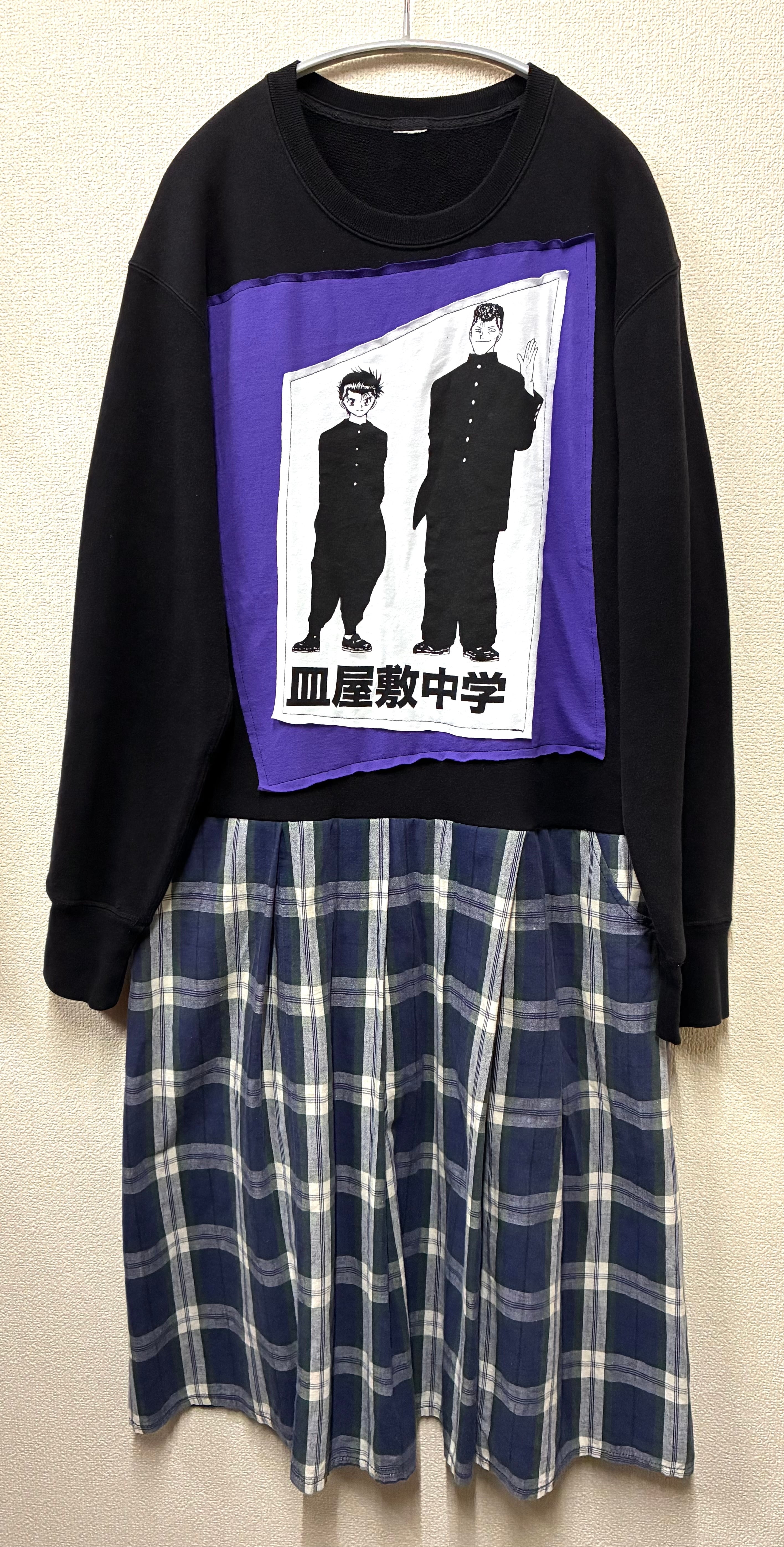 黒スウェットに中学を縫いつけ、チェック柄スカートを合わせています♬