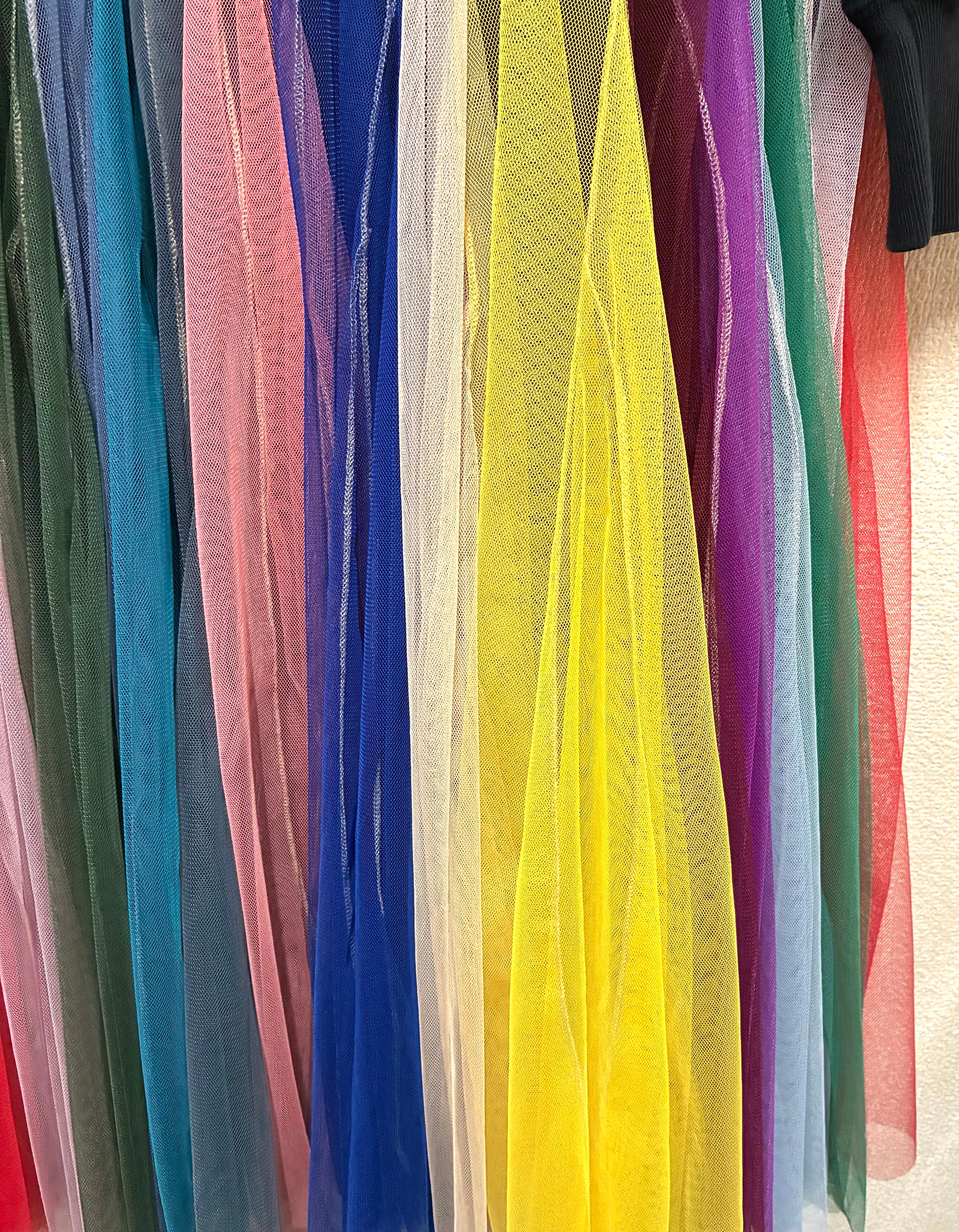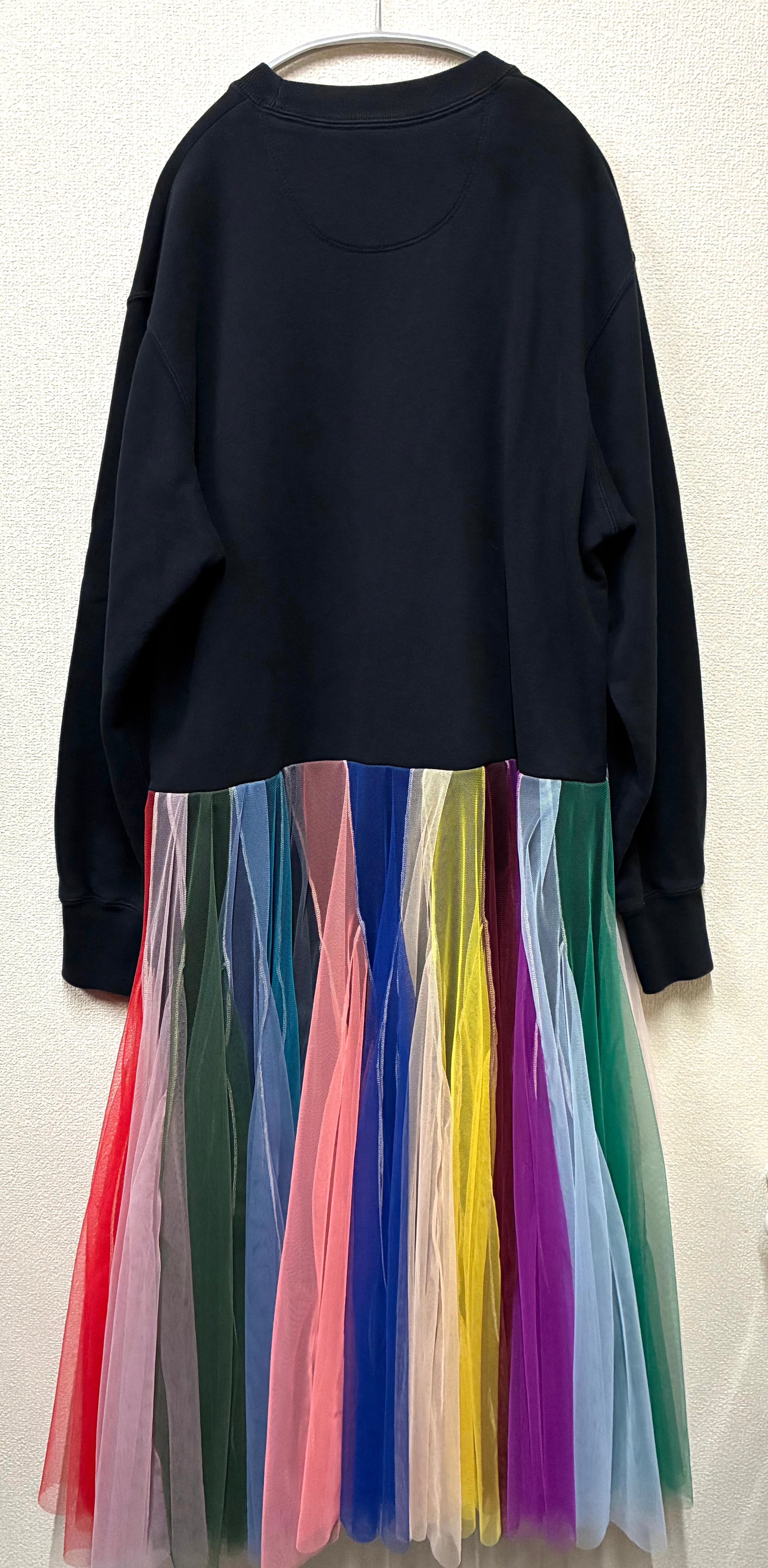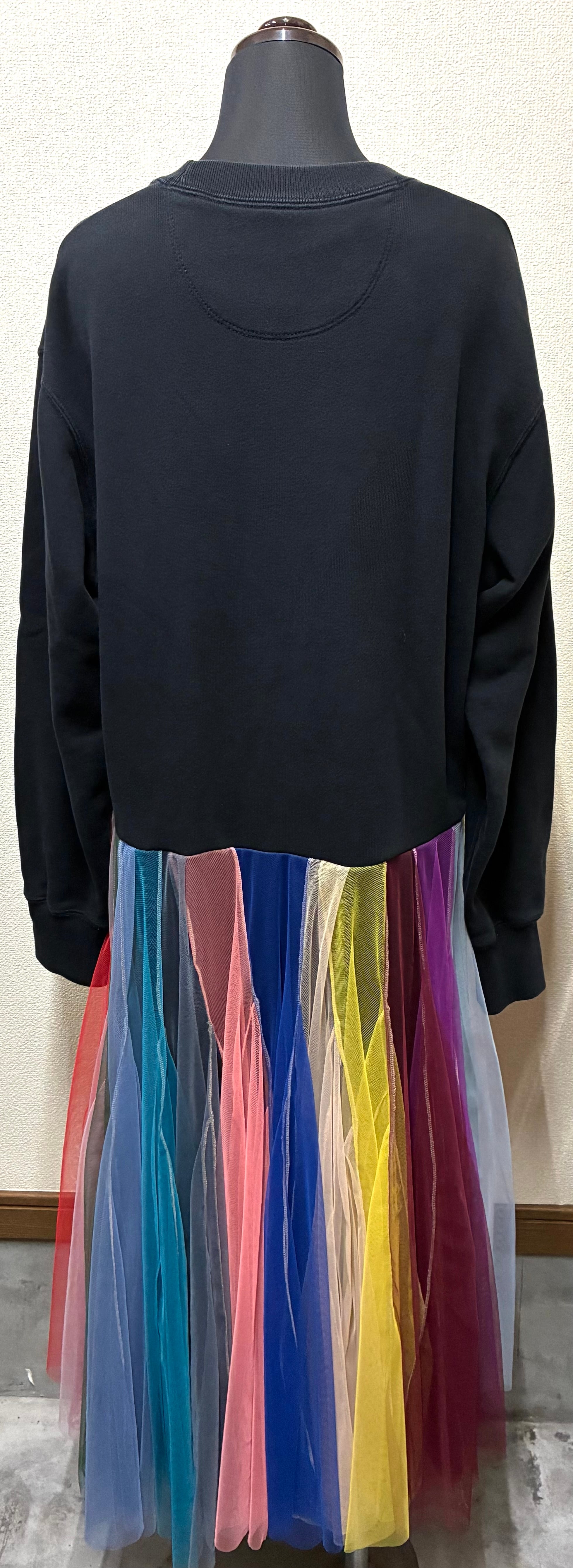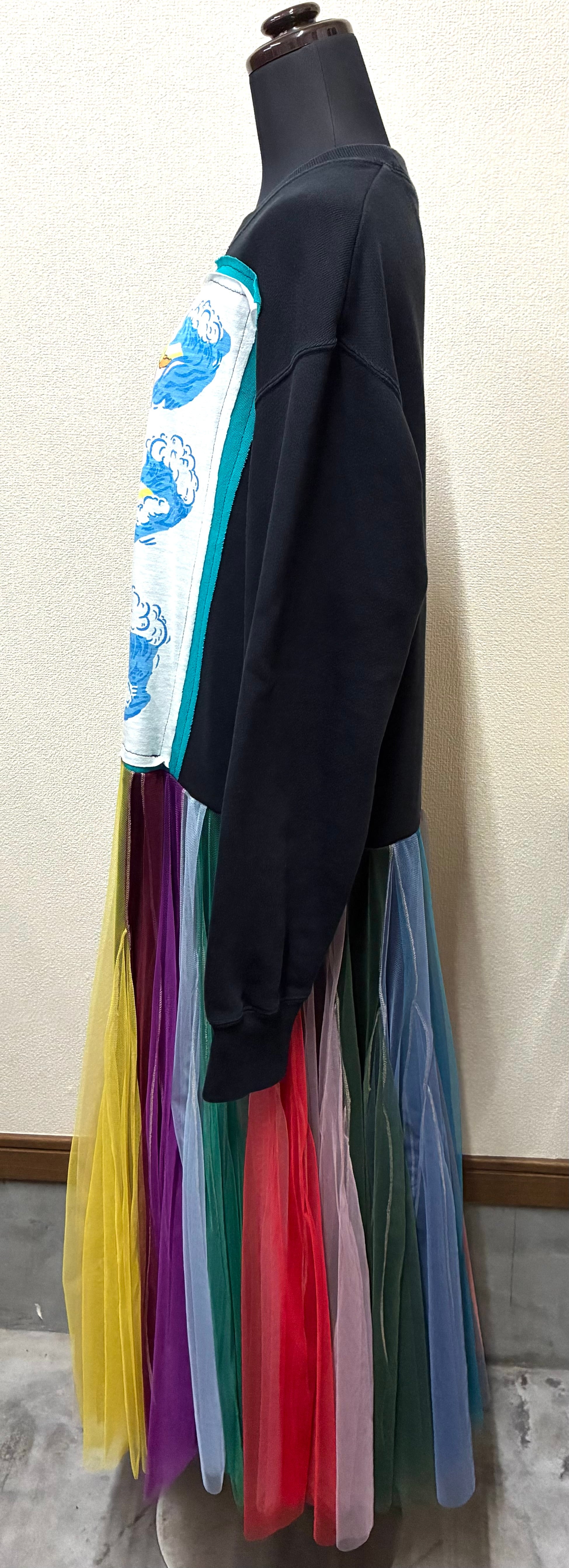 黒スウェットに波乗りを縫いつけ、ボリュームあるカラフルなチュールスカートを合わせています♬
