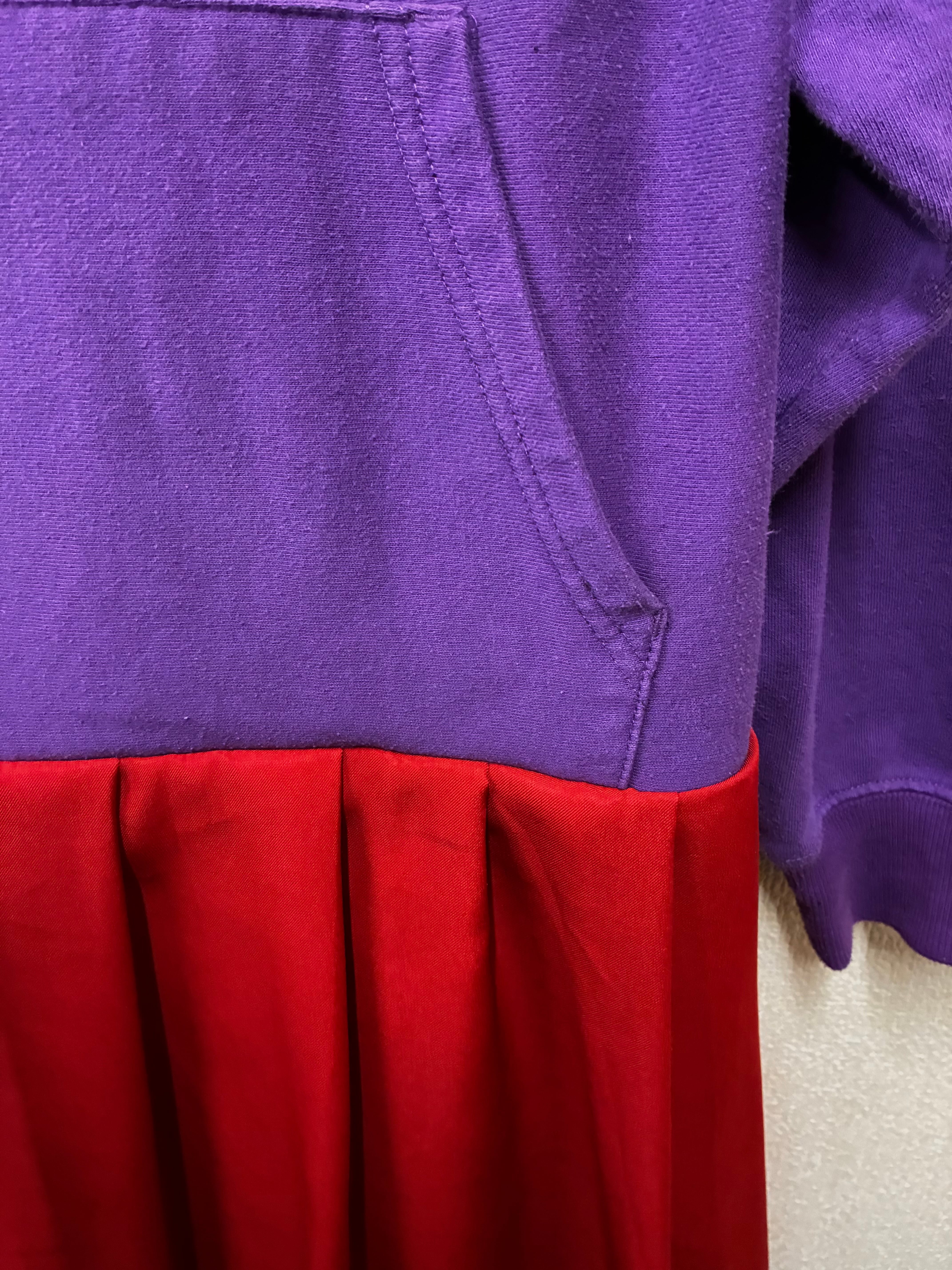 紫パーカーに仲良し2人組を縫いつけ、赤スカートを合わせています♬