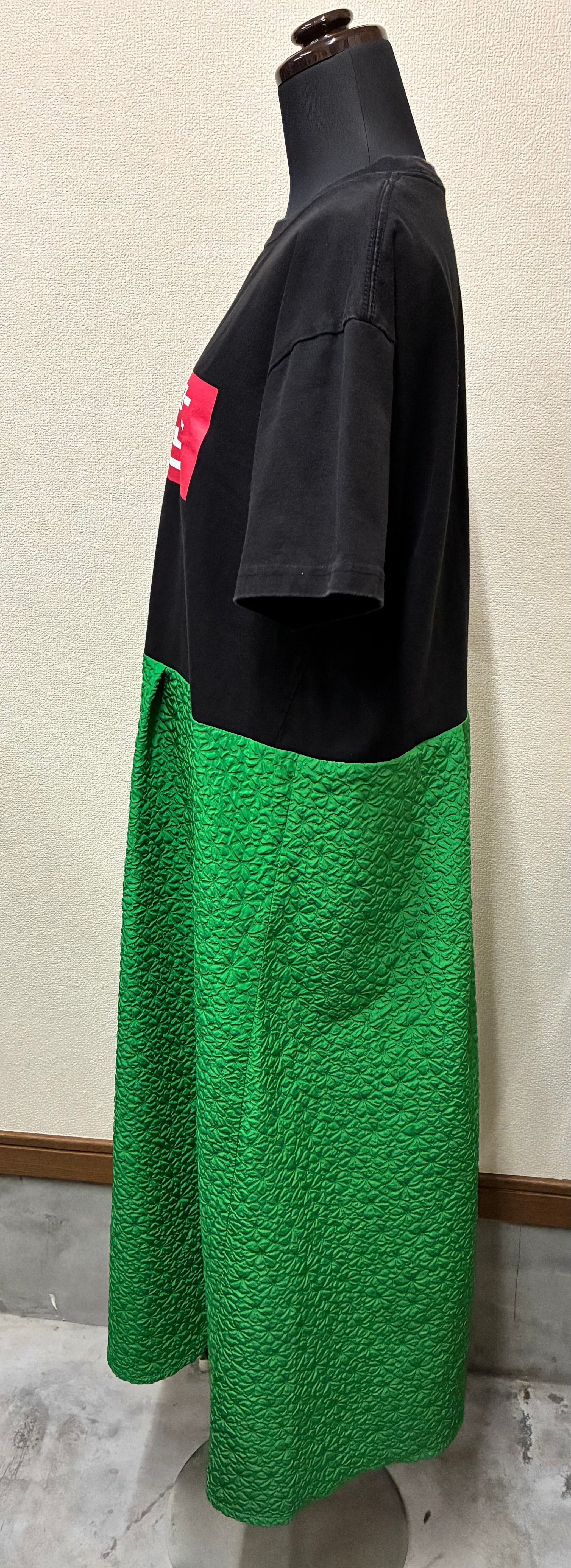 かわいい黒Tシャツに、緑のお花エンボススカートを合わせています♬