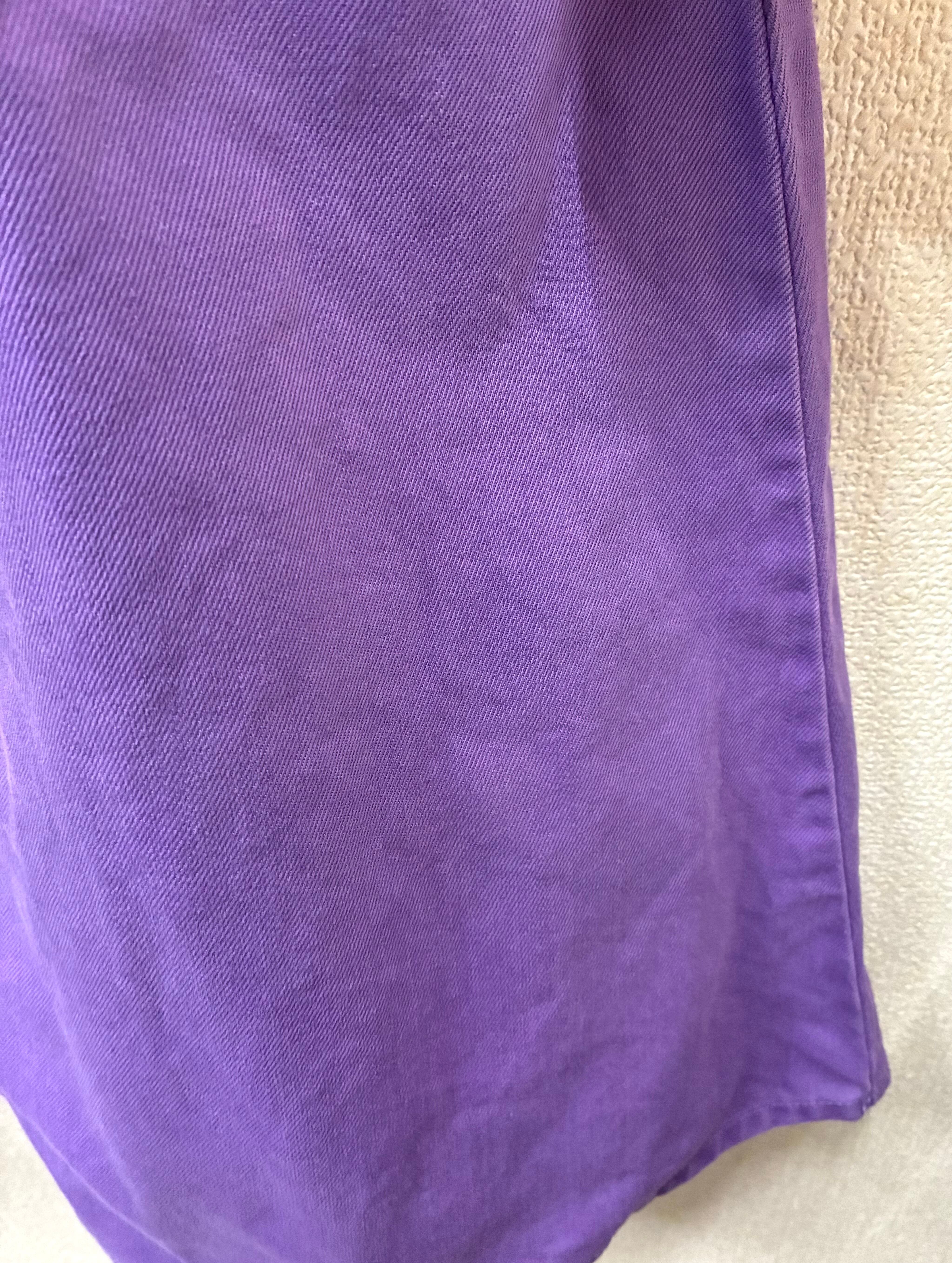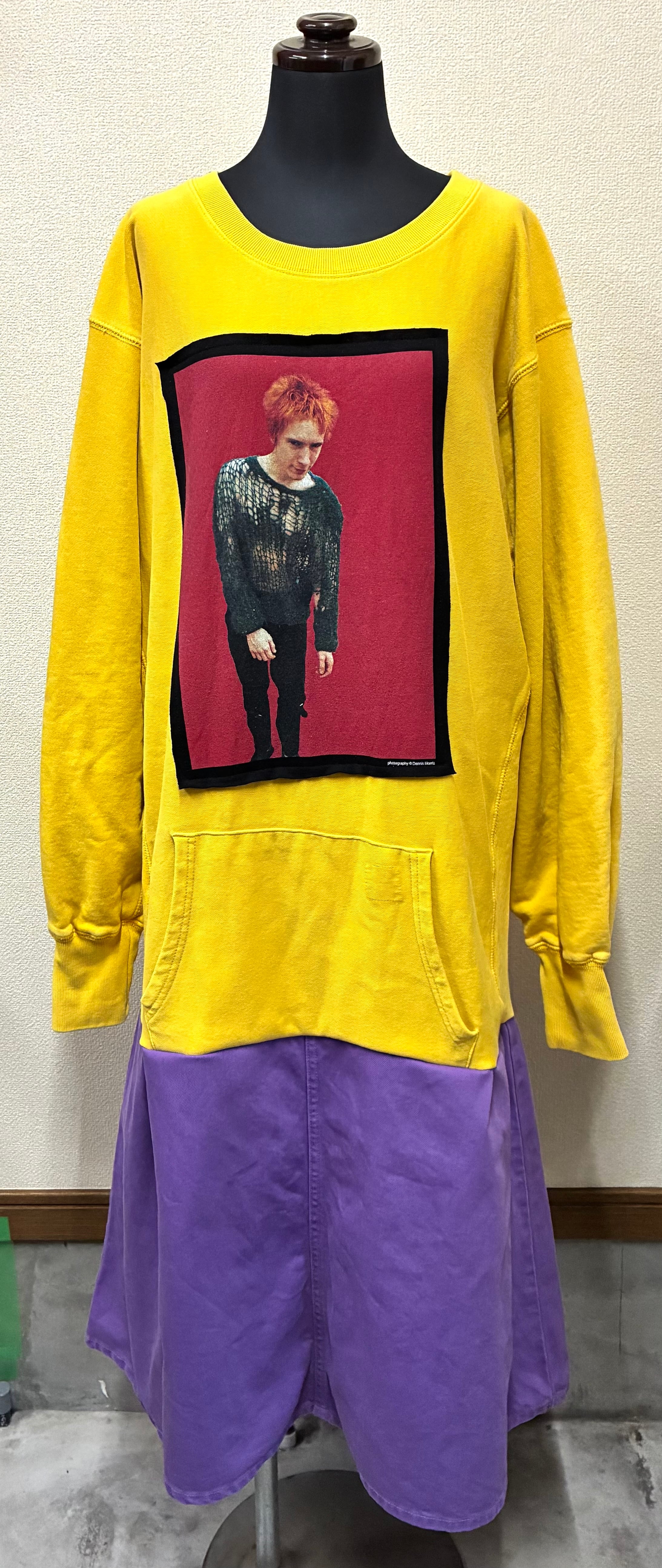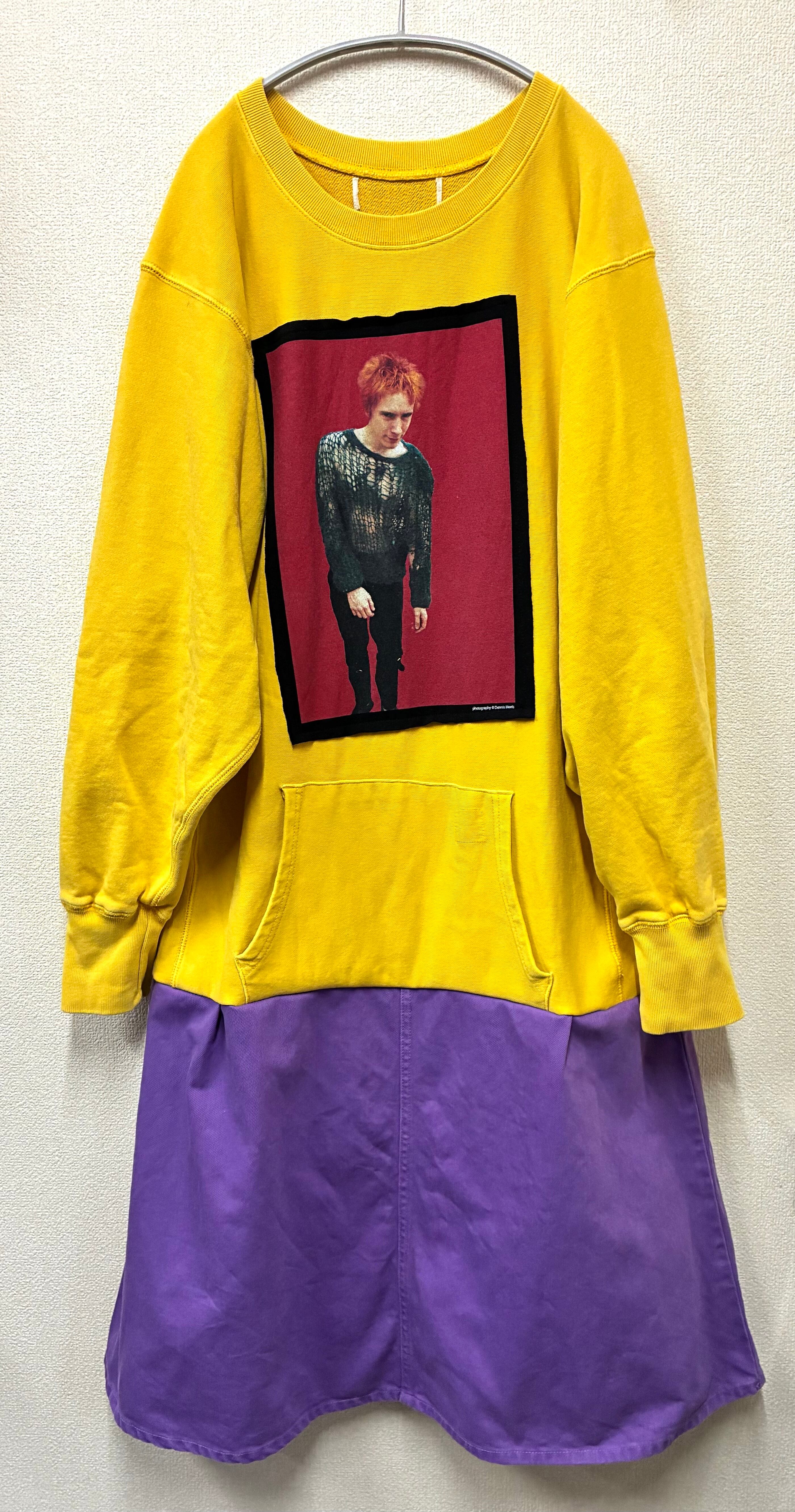 黄色スウェットに男性を縫いつけ、紫スカートを合わせています♬