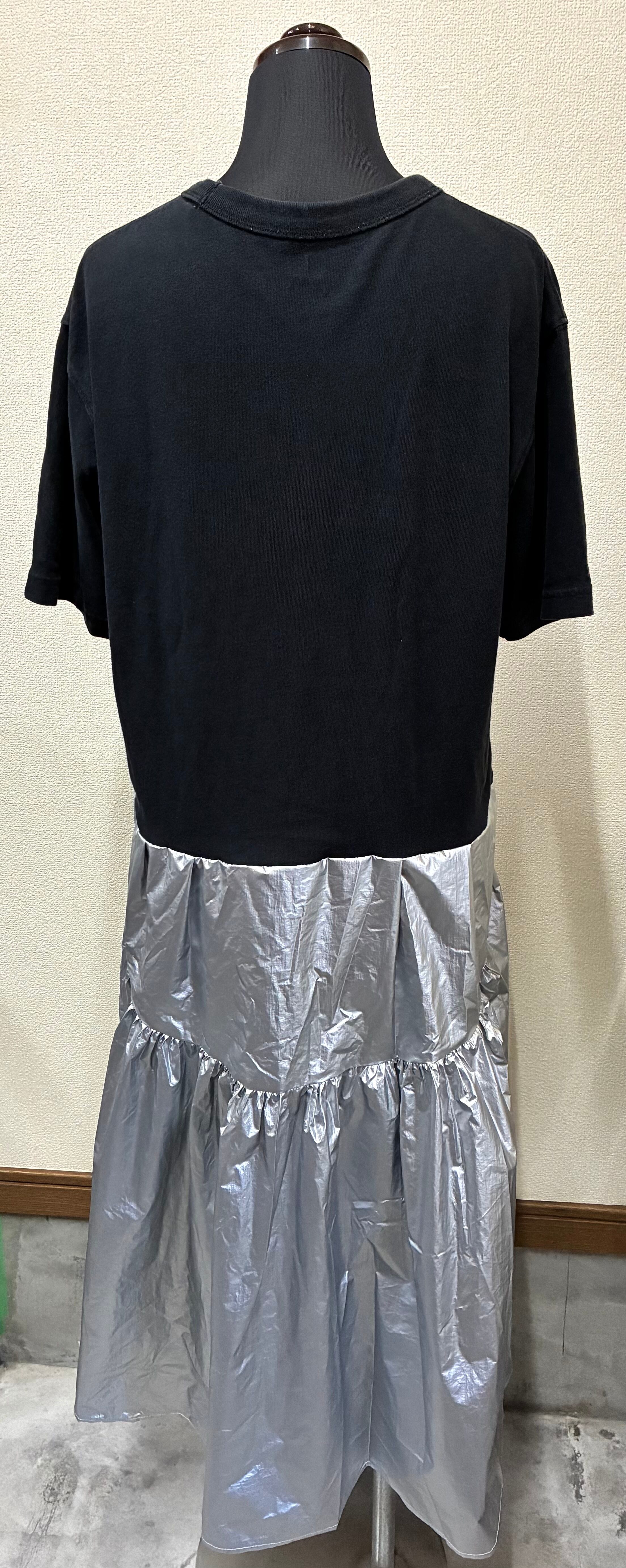 黒Tシャツにかっこいいのを縫いつけ、シルバーフリルスカートを合わせています♬