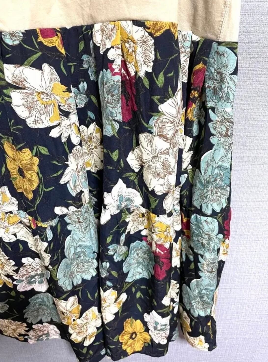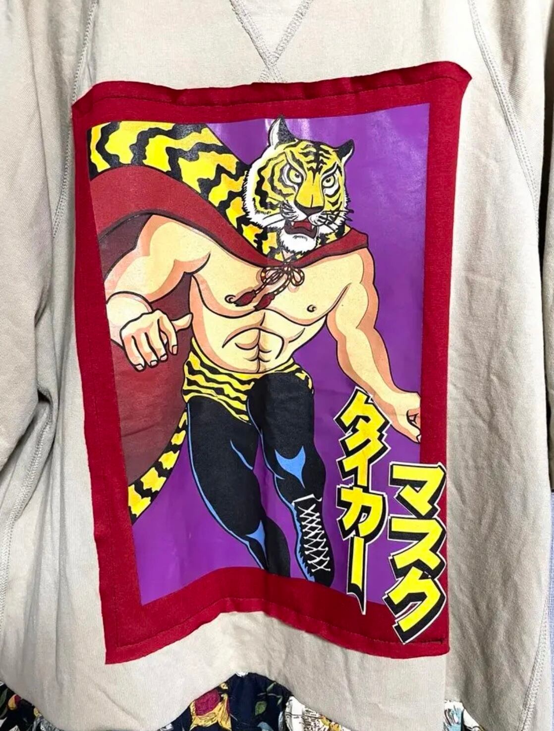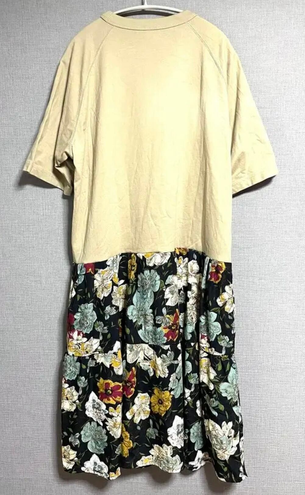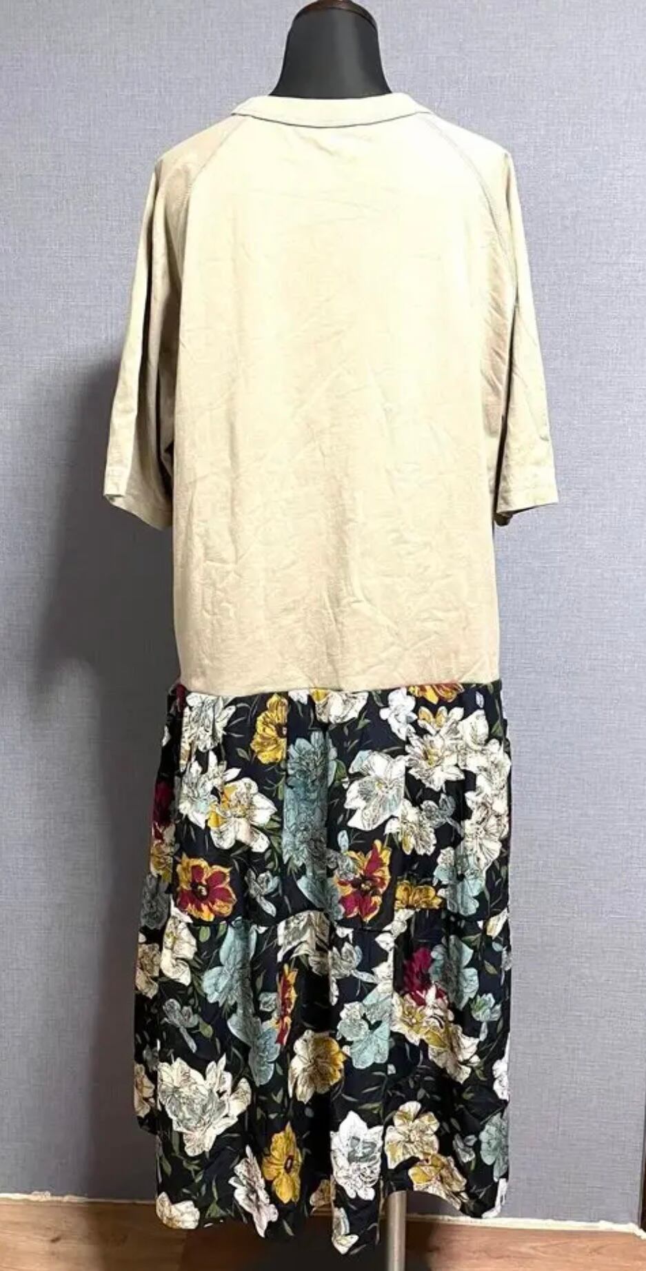 ベージュのラグランTシャツにかっこいいタイガーくんを縫いつけ、濃紺ベースの花柄スカートを合わせています♬