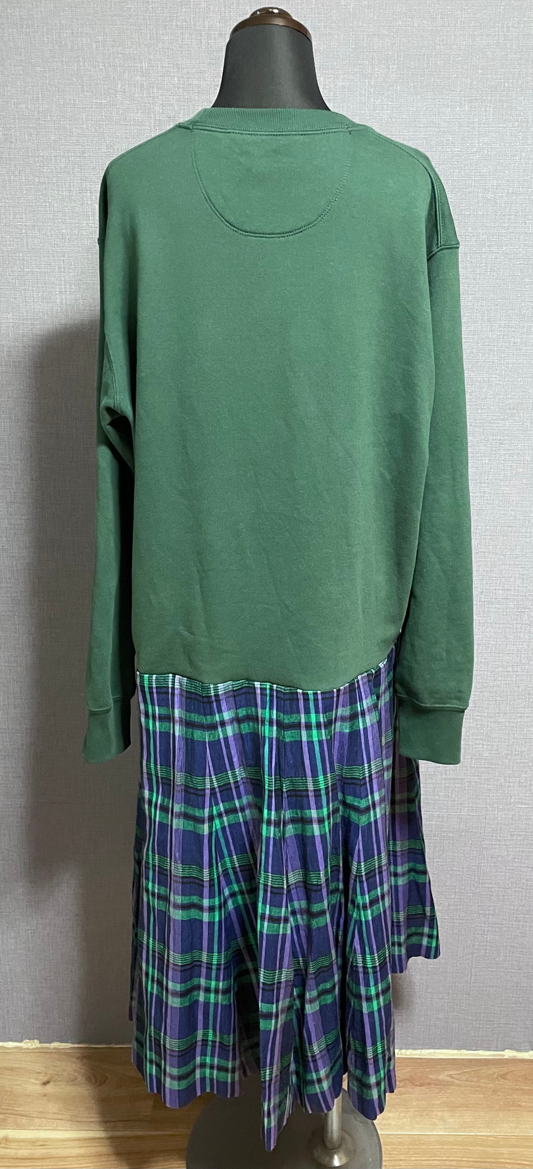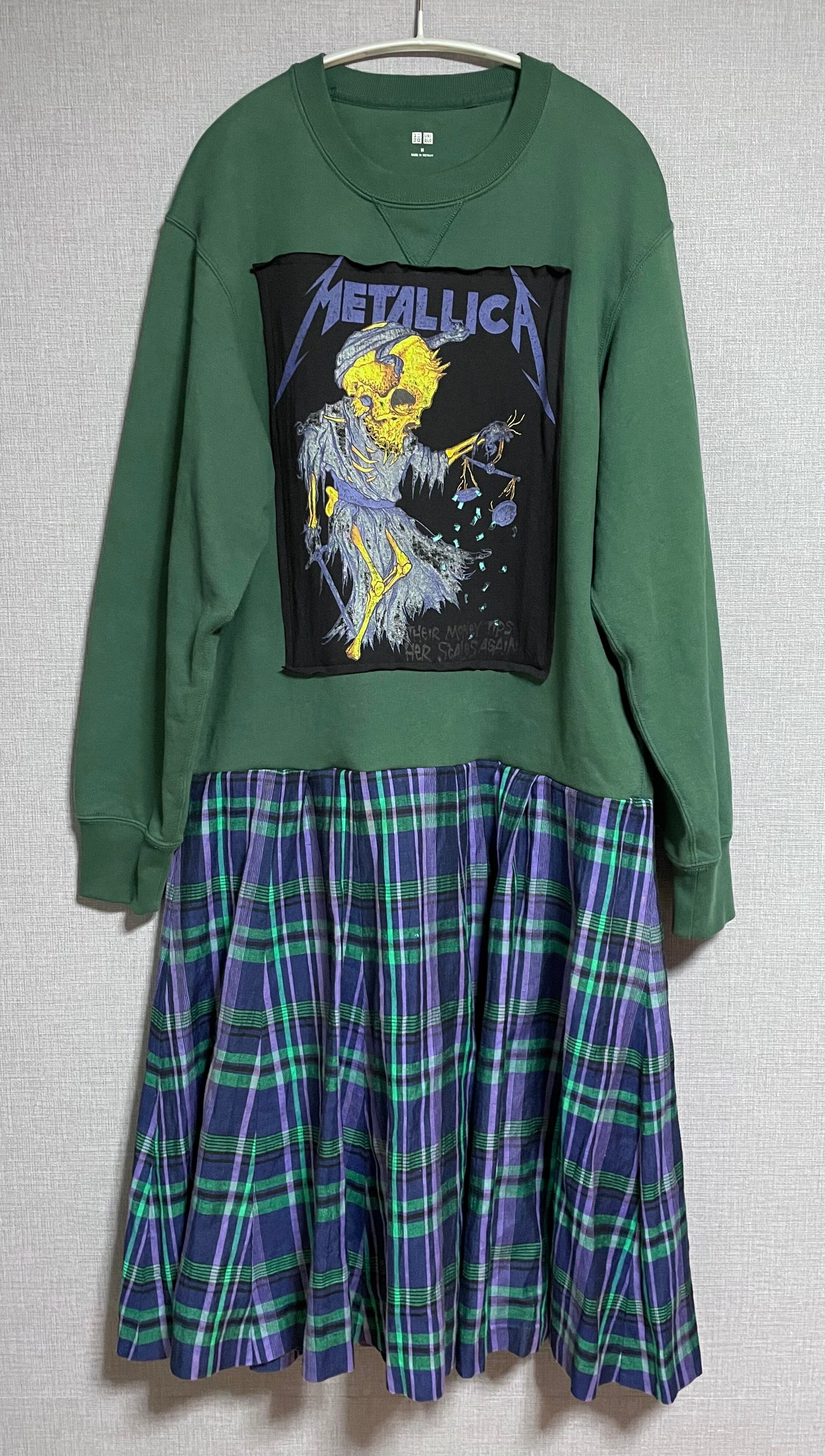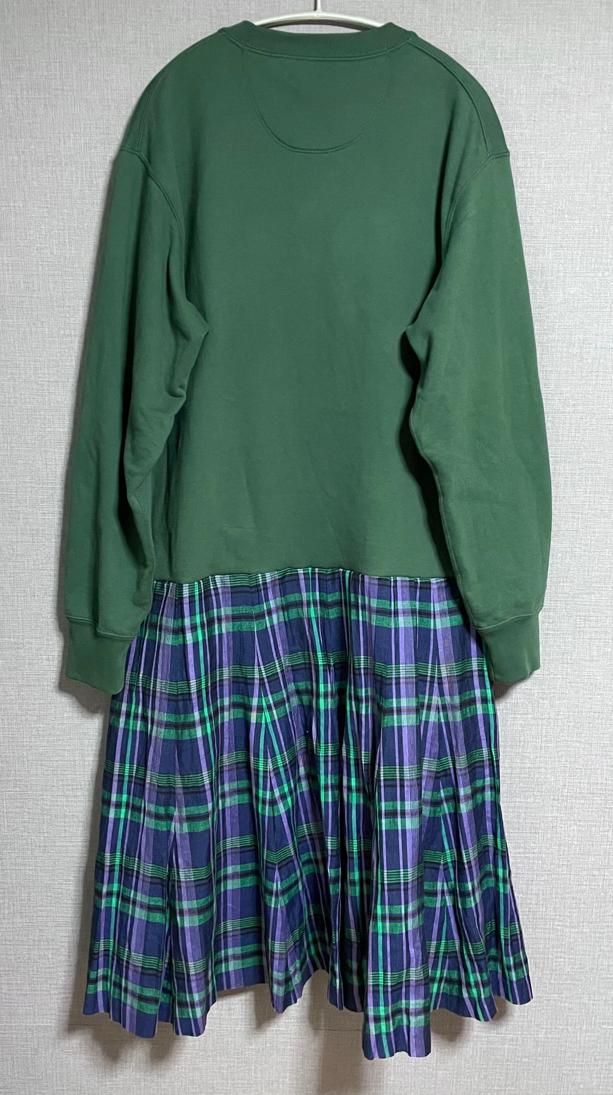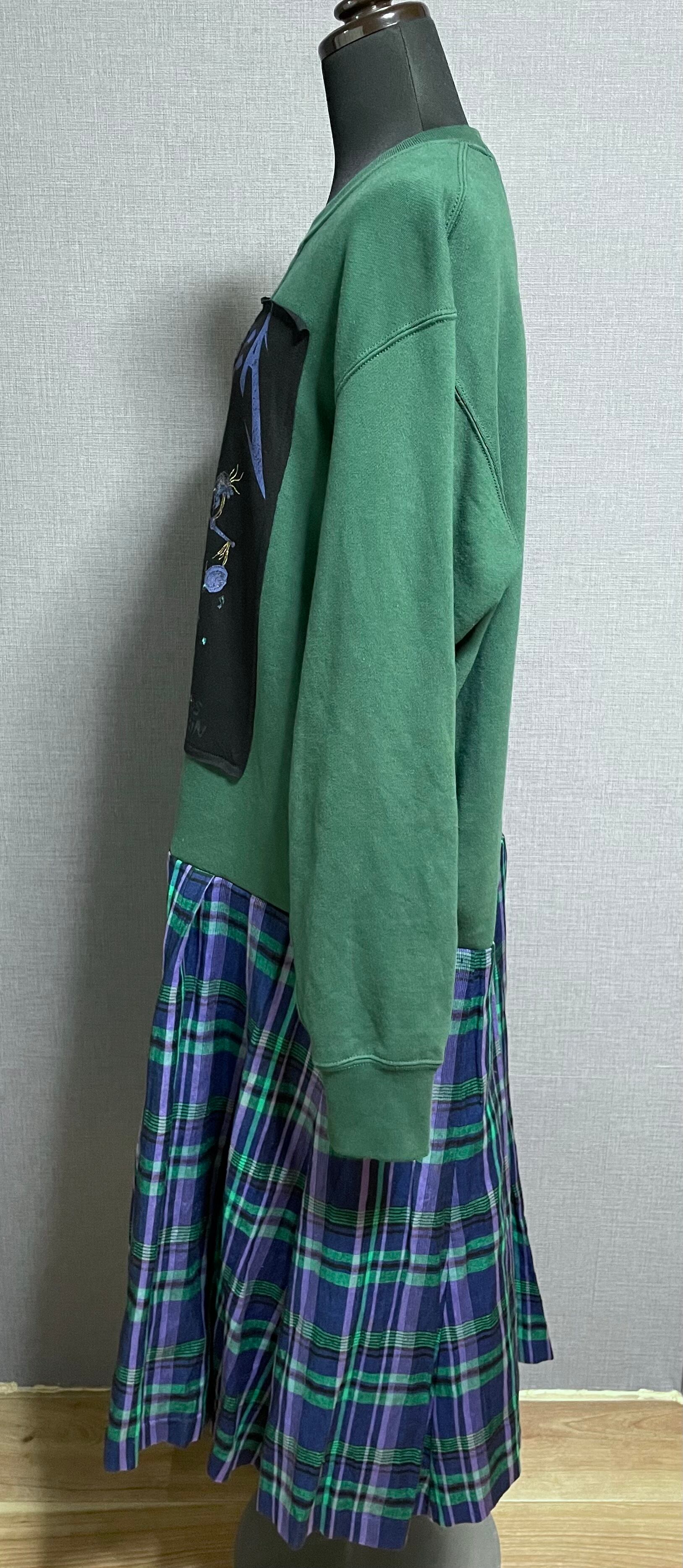 グリーン系スウェットに骸骨ちゃんを縫いつけ、チェック柄スカートを合わせています♬