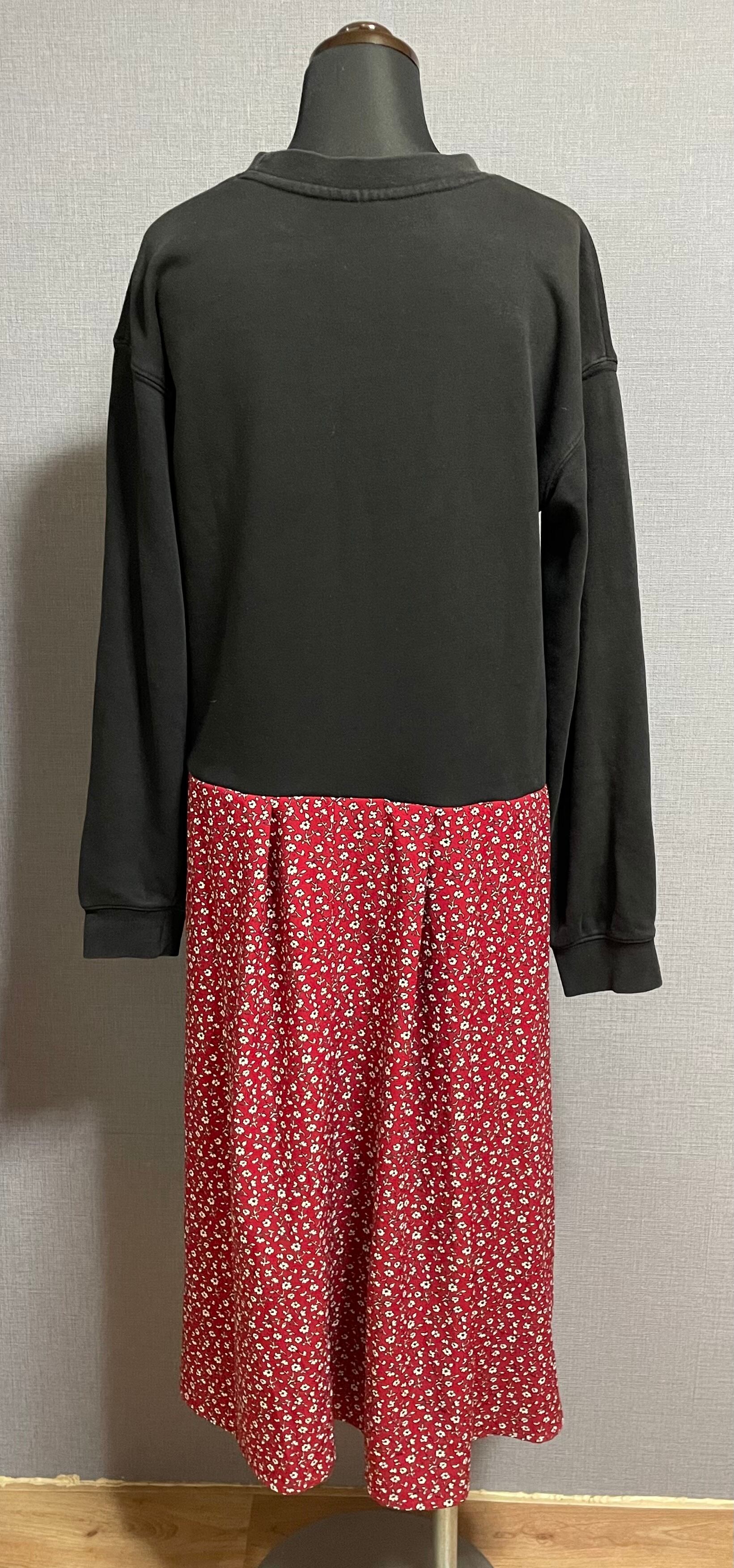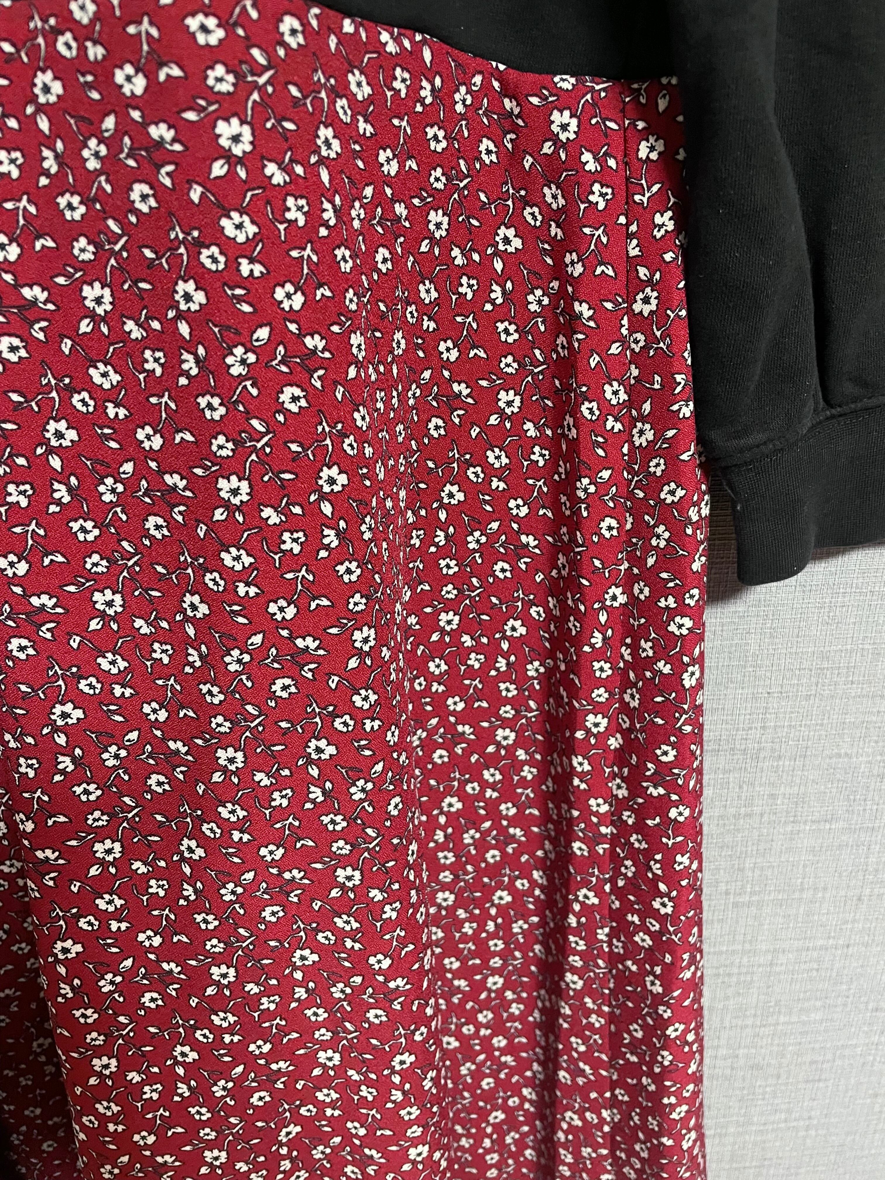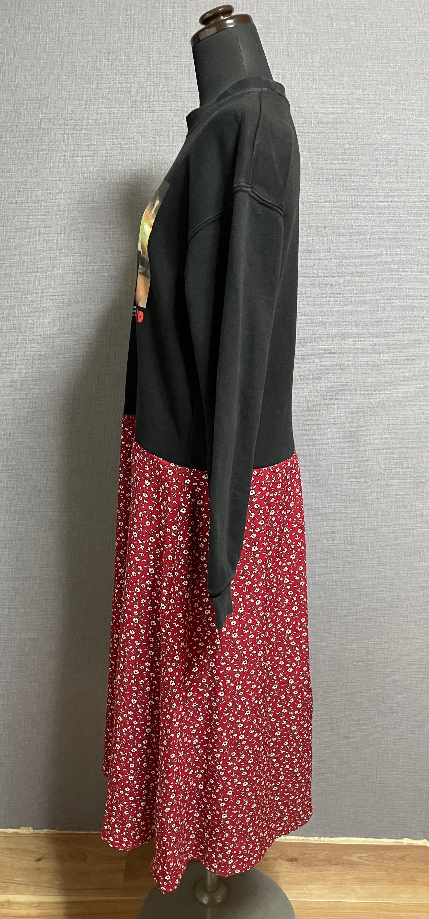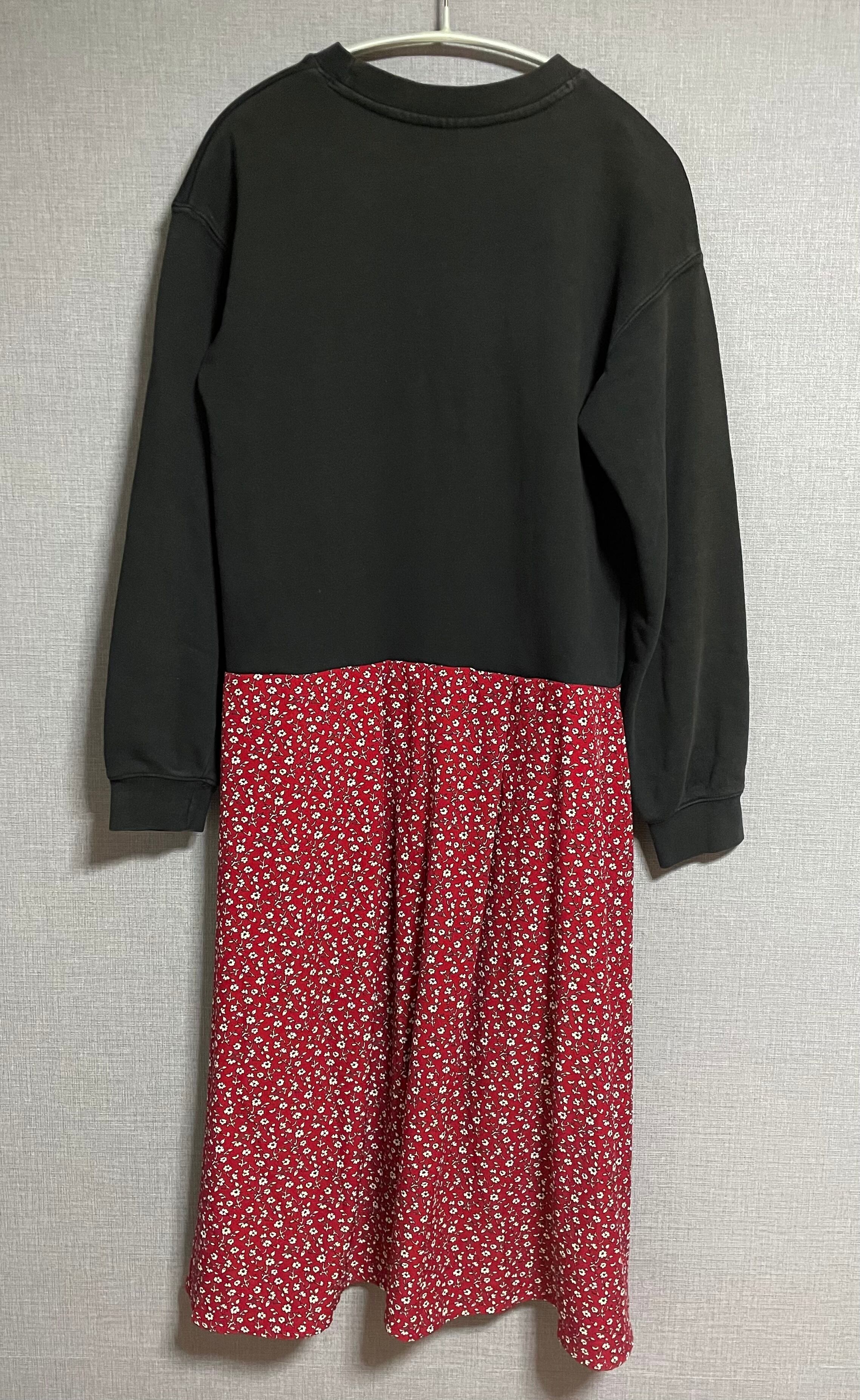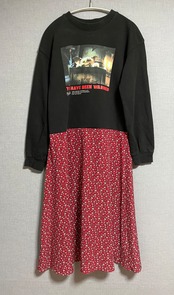かわいい黒スウェットに、レトロな感じの小花柄スカートを合わせています♬