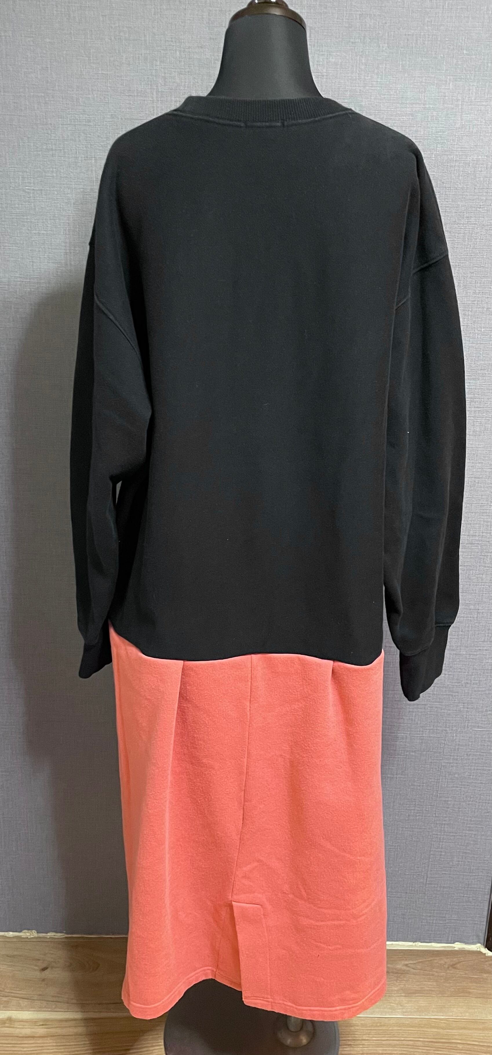 黒スウェットに大きな虎を縫いつけ、コーラルピンクの裏起毛スカートを合わせています♬
