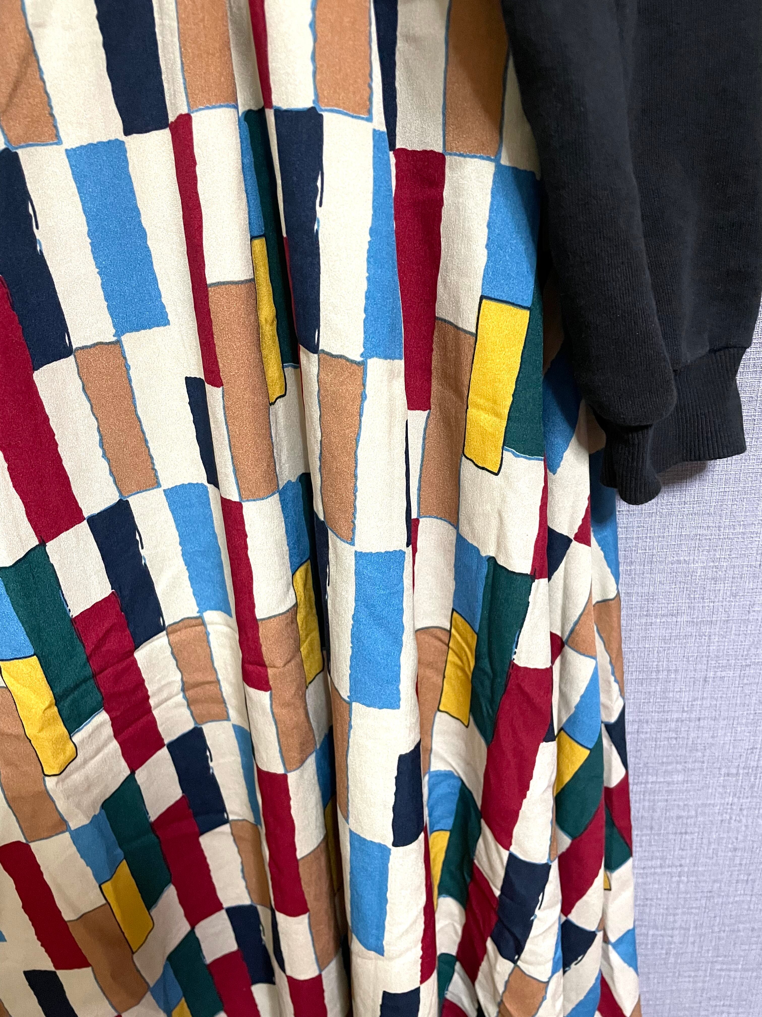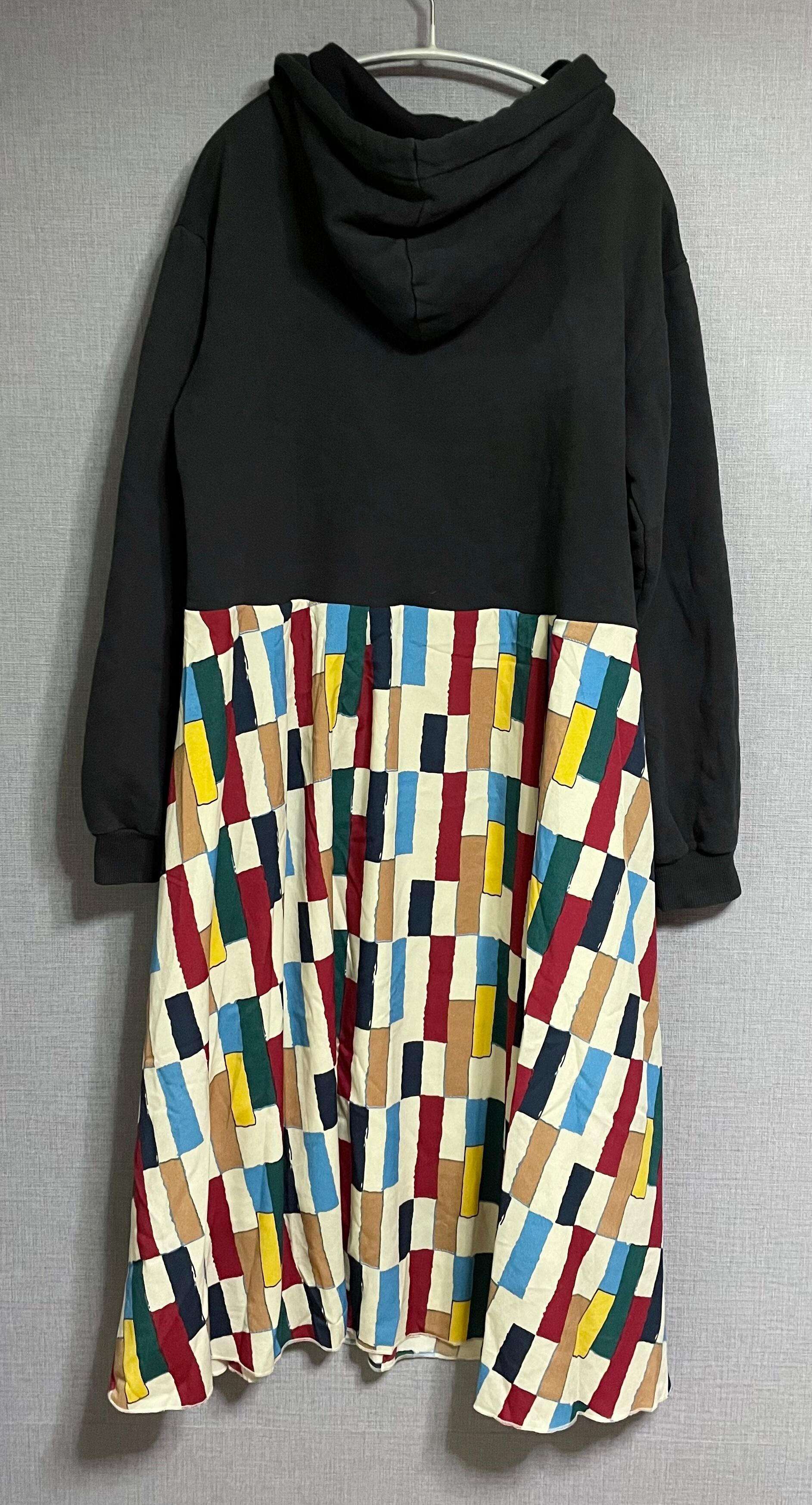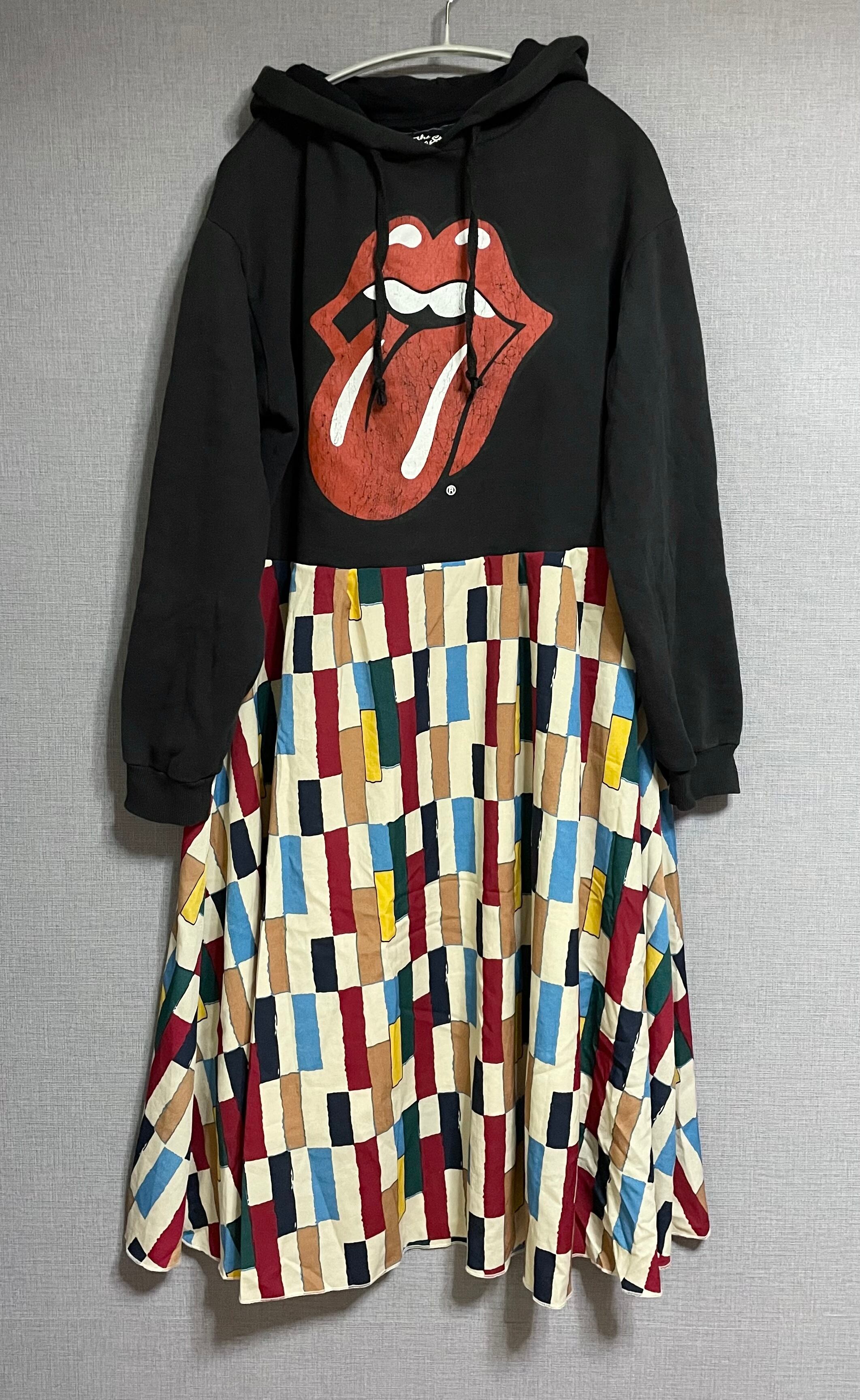 ロケンローな黒のベロパーカーに、いろんな柄スカートを合わせています♬
