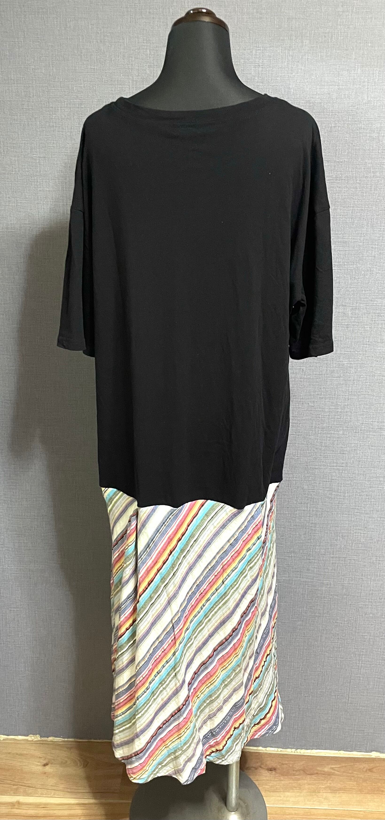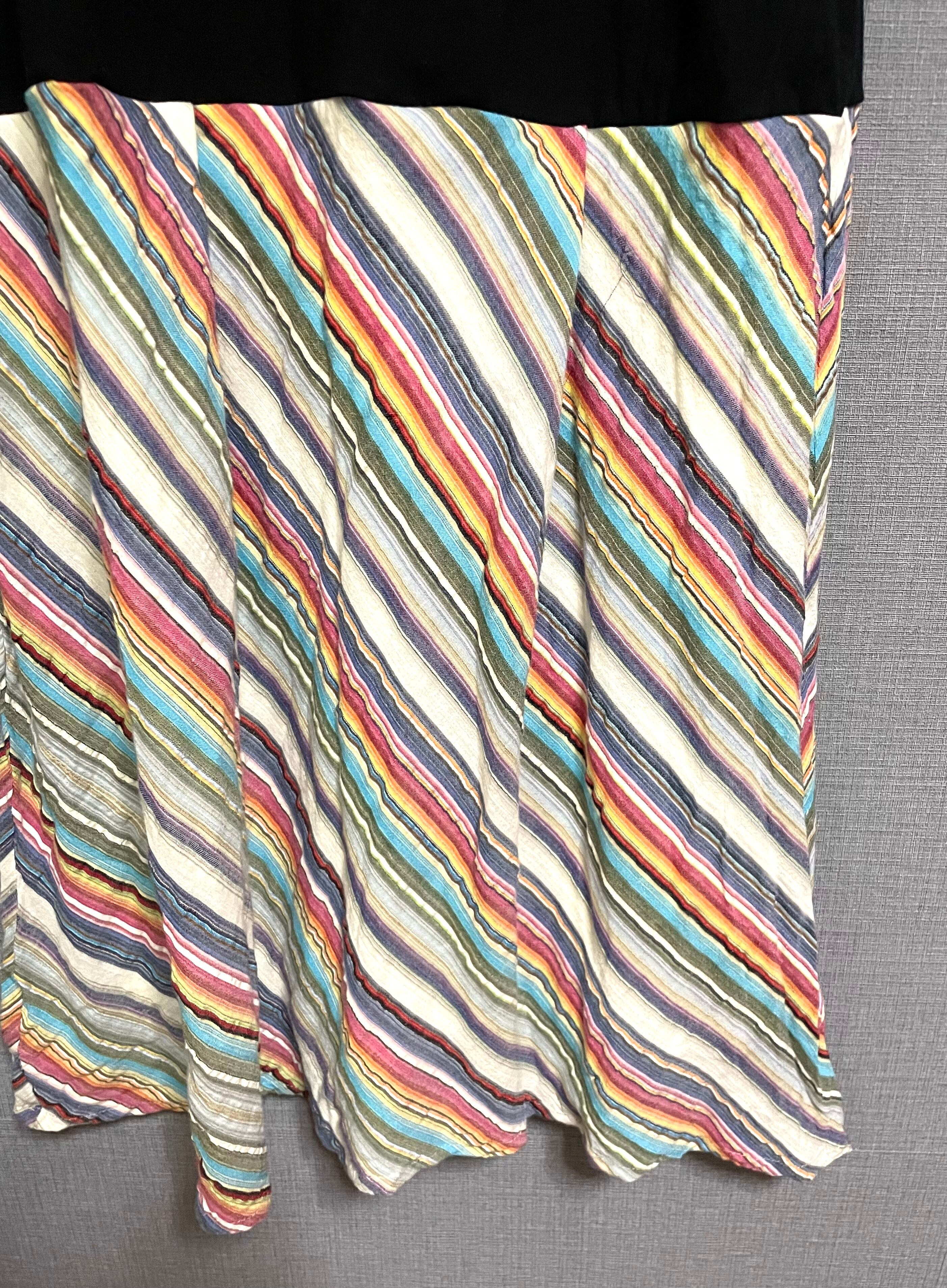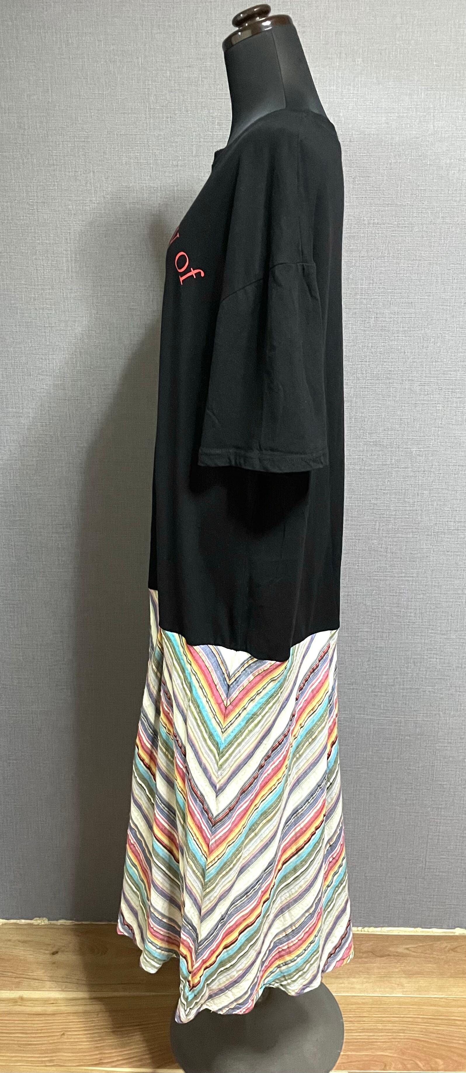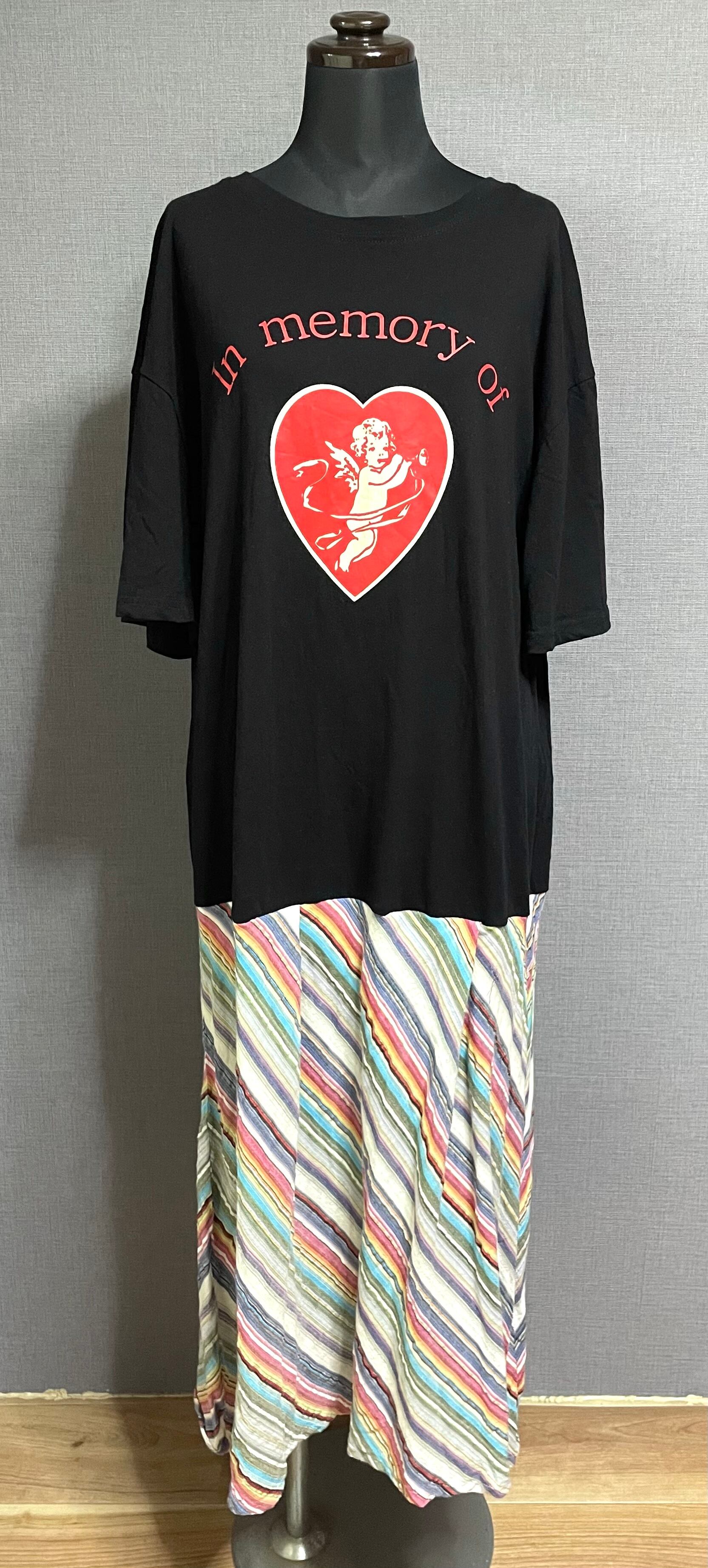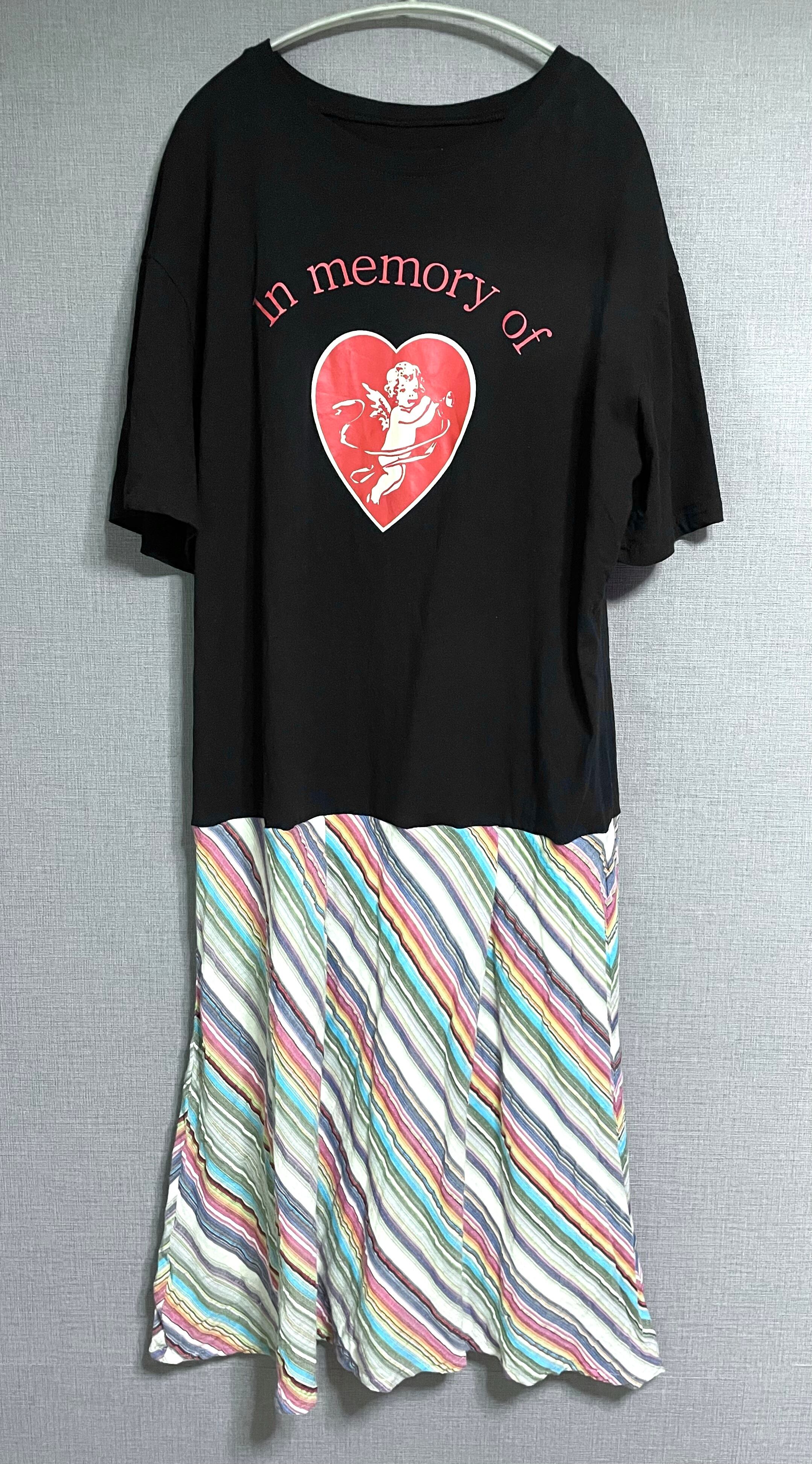キュートな天使黒Tシャツに、いろんな色のストライプスカートを合わせています♬