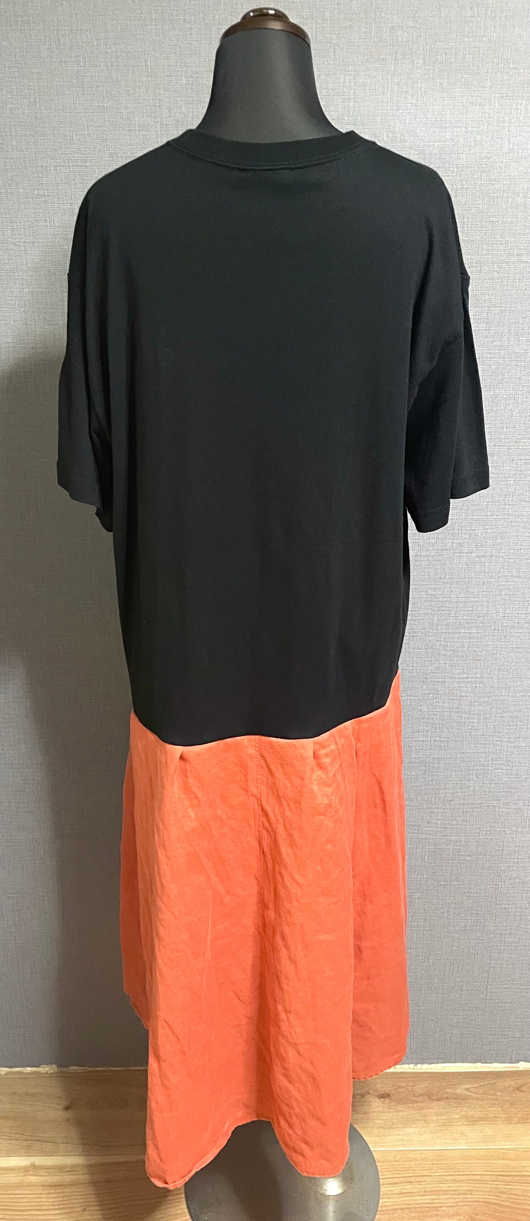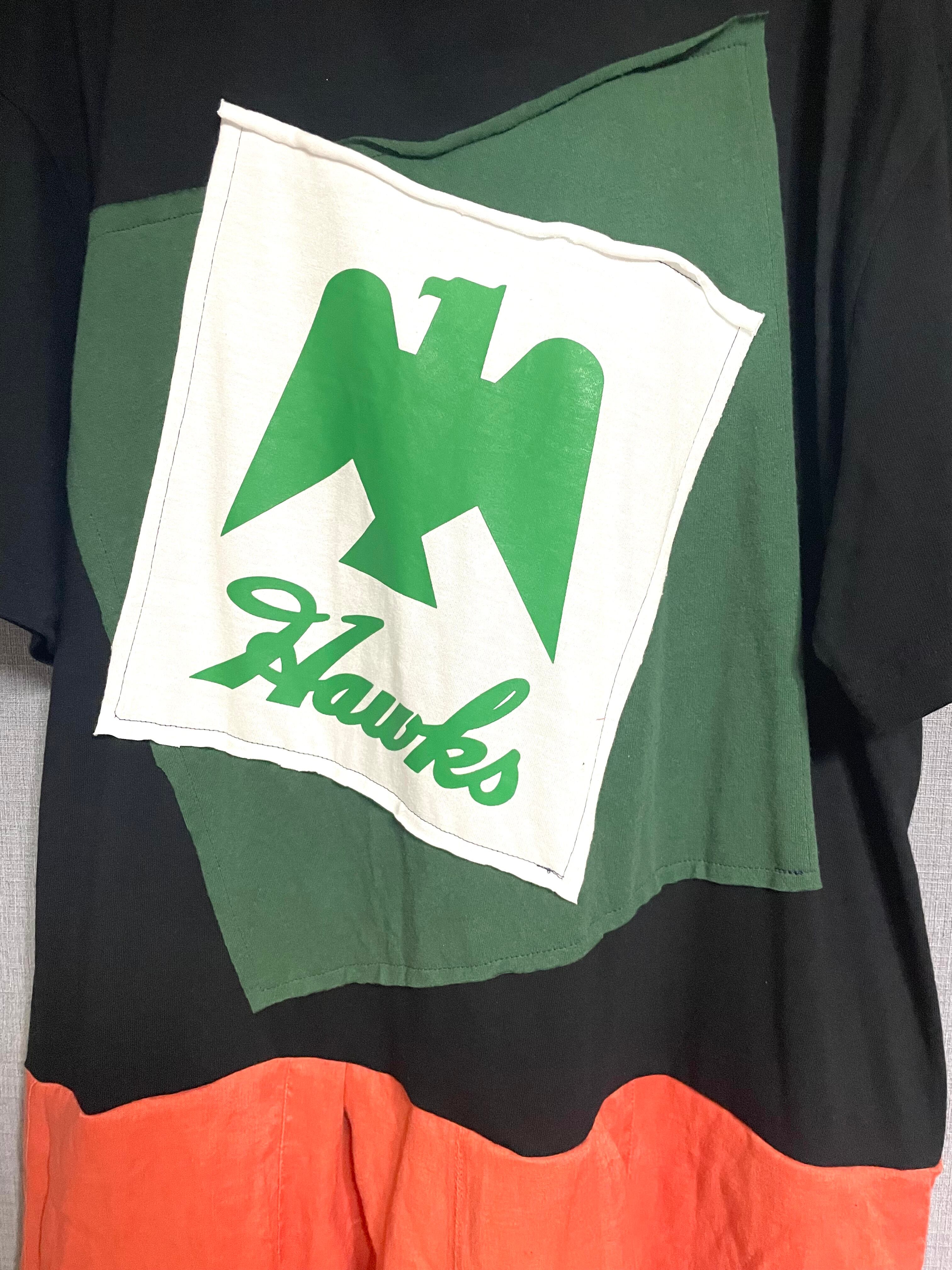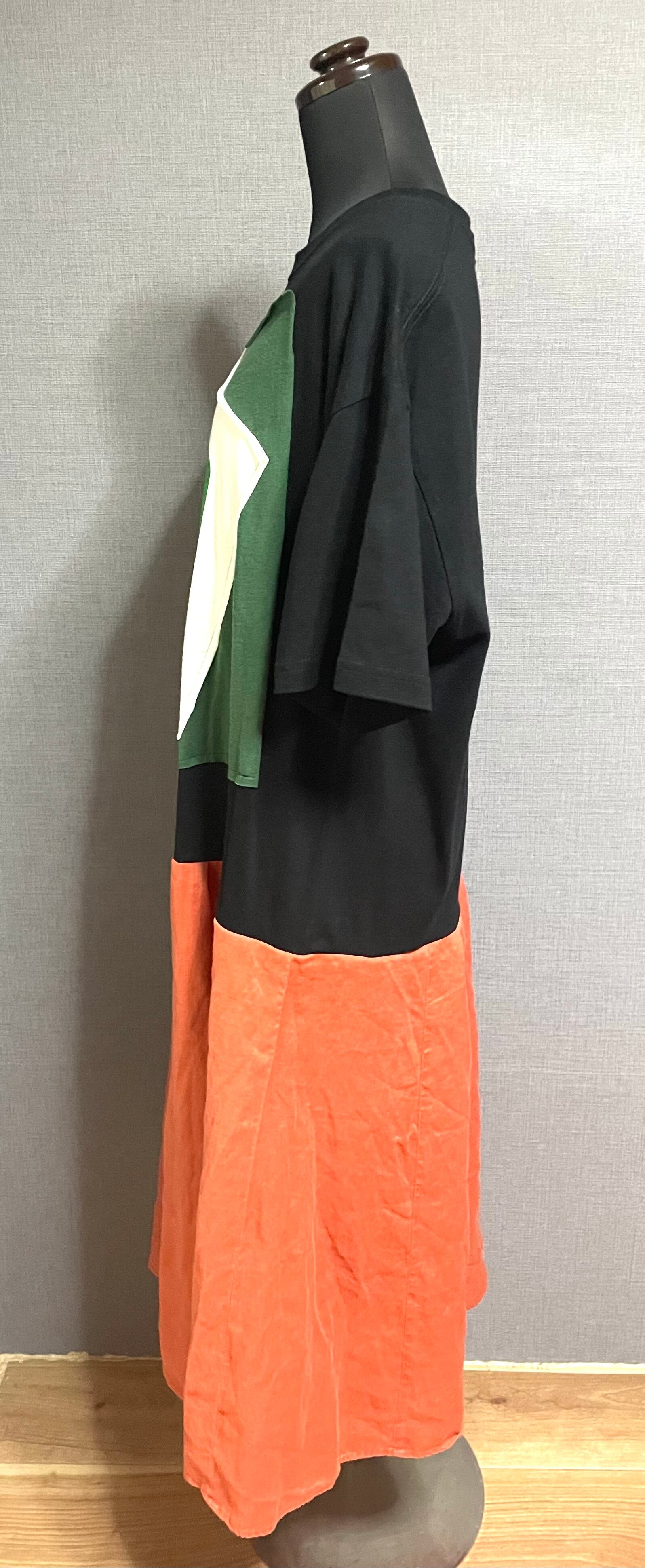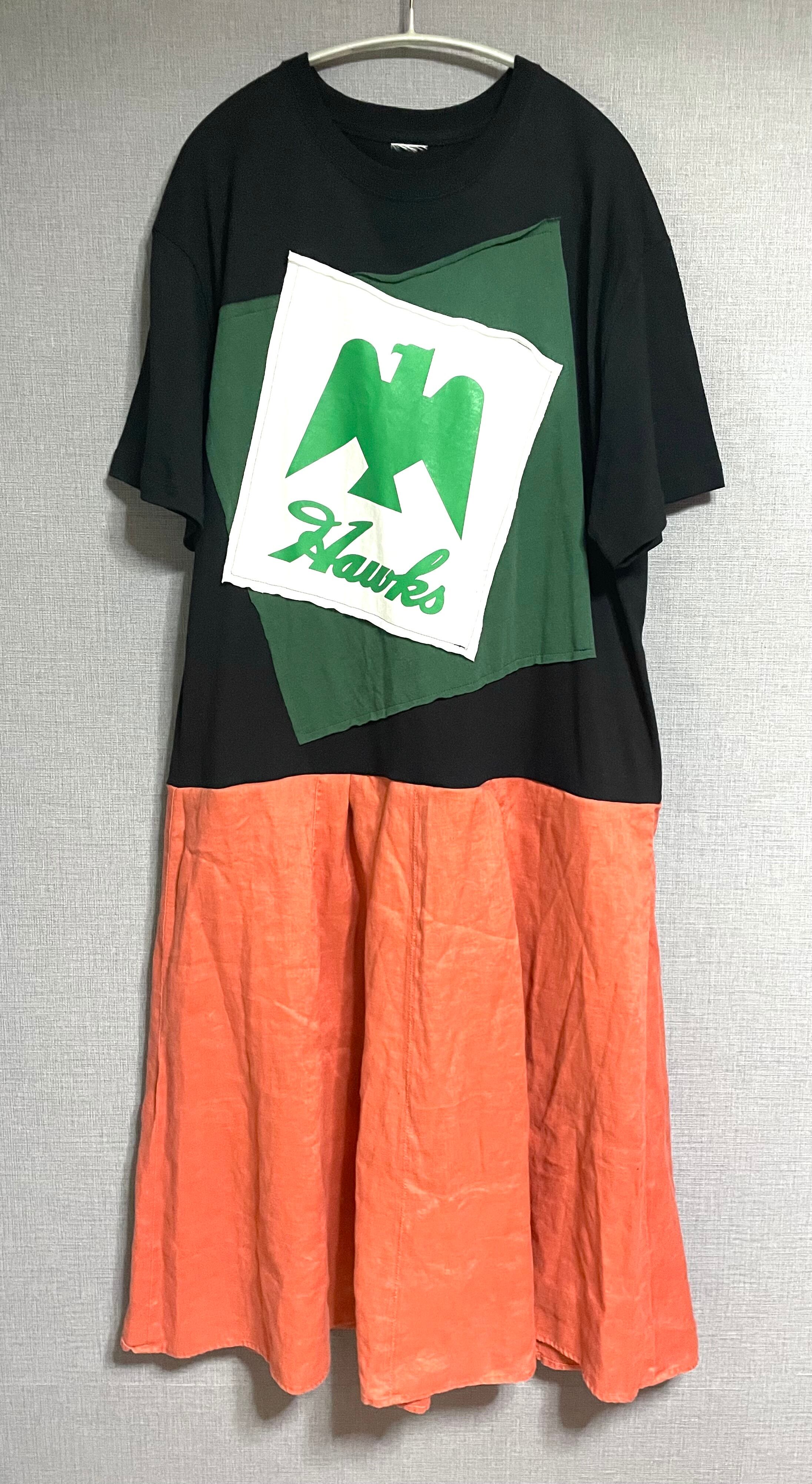 黒Tシャツに鷹を縫いつけ、麻混素材のスカートを合わせています♬