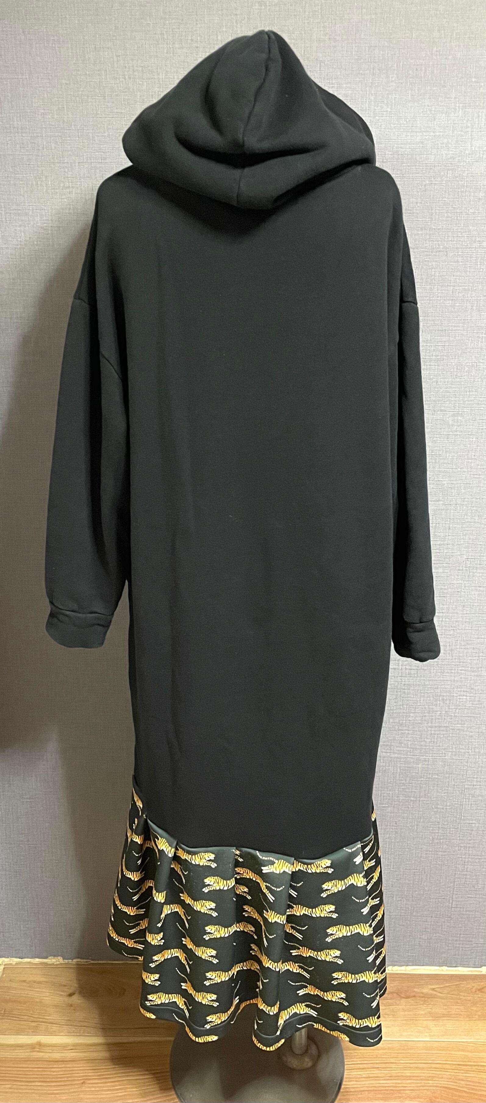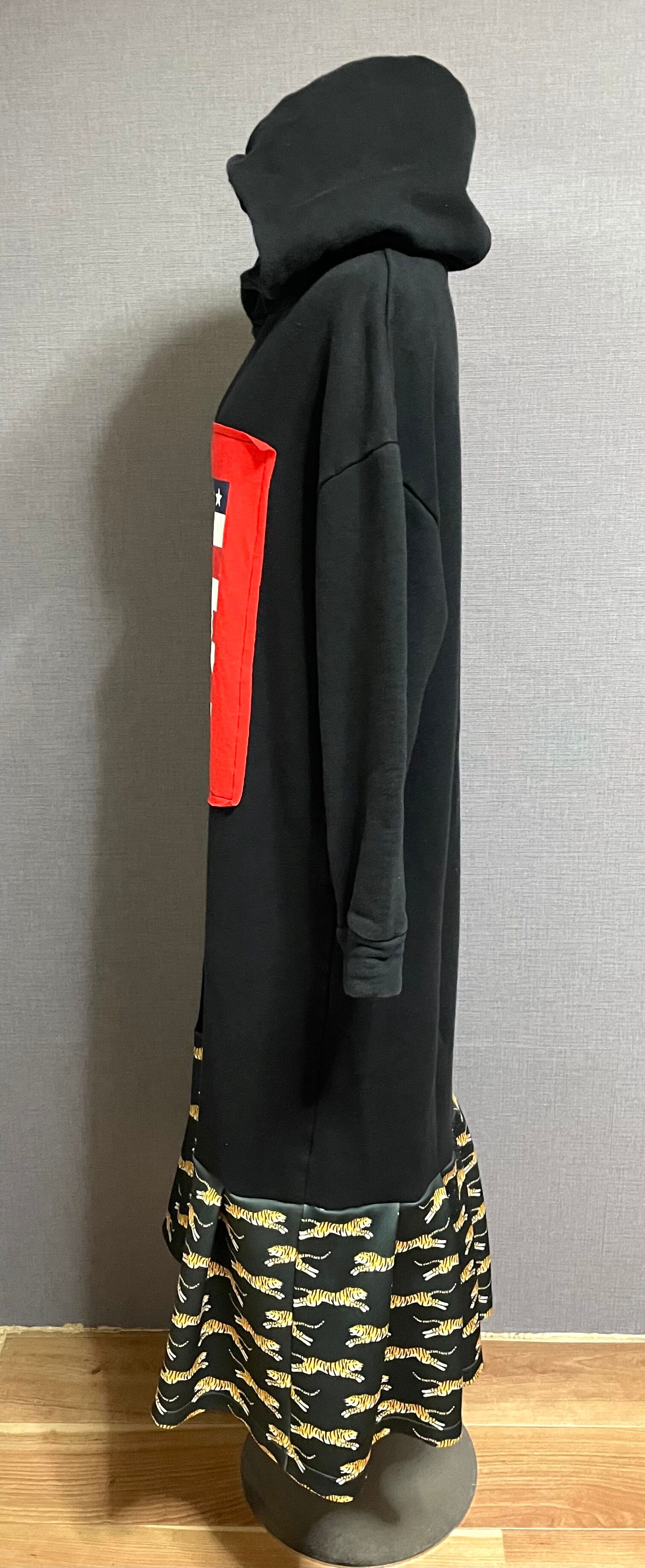 黒パーカーにコーラを縫いつけ、トラ柄スカートを合わせています♬