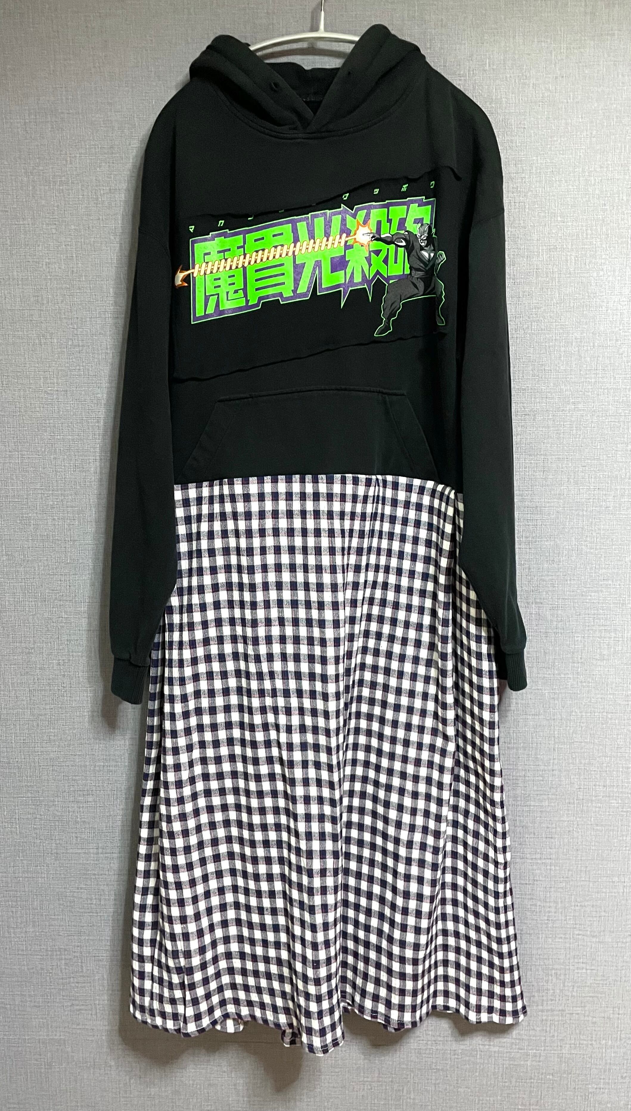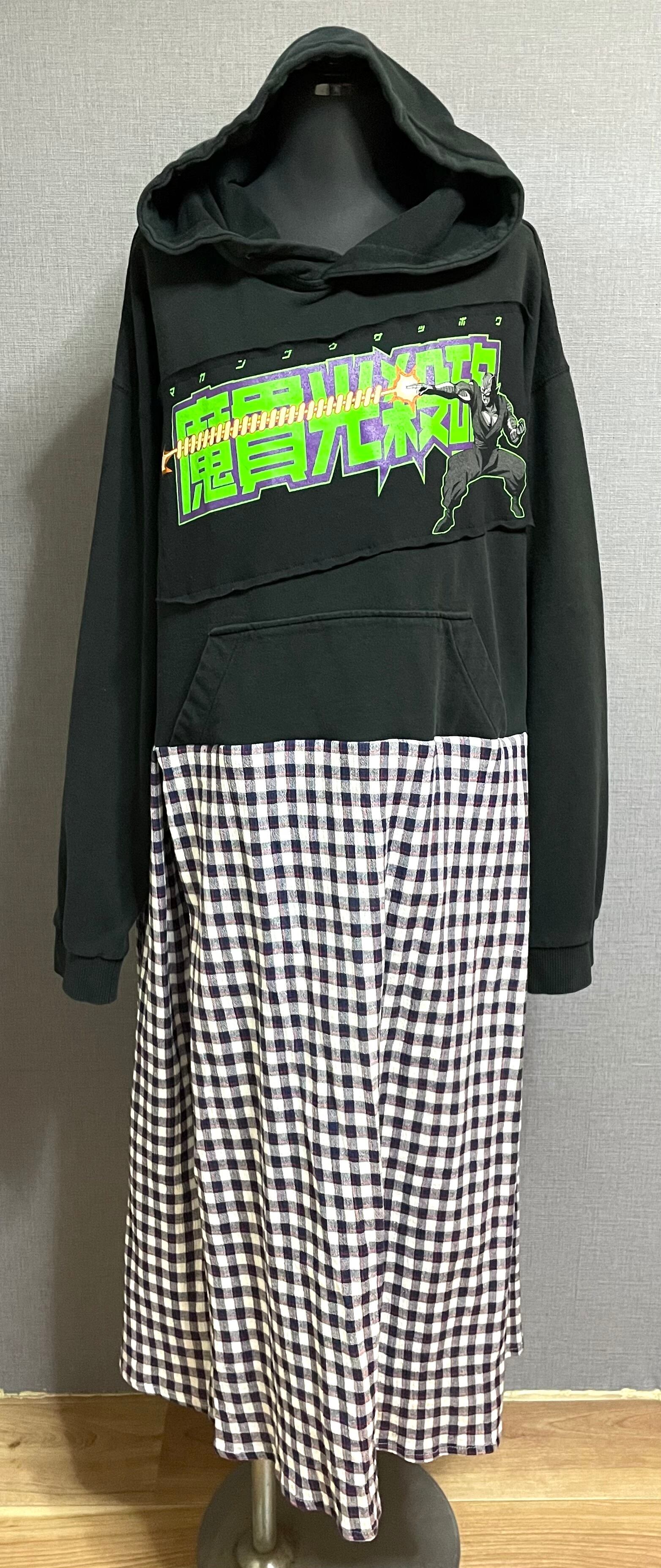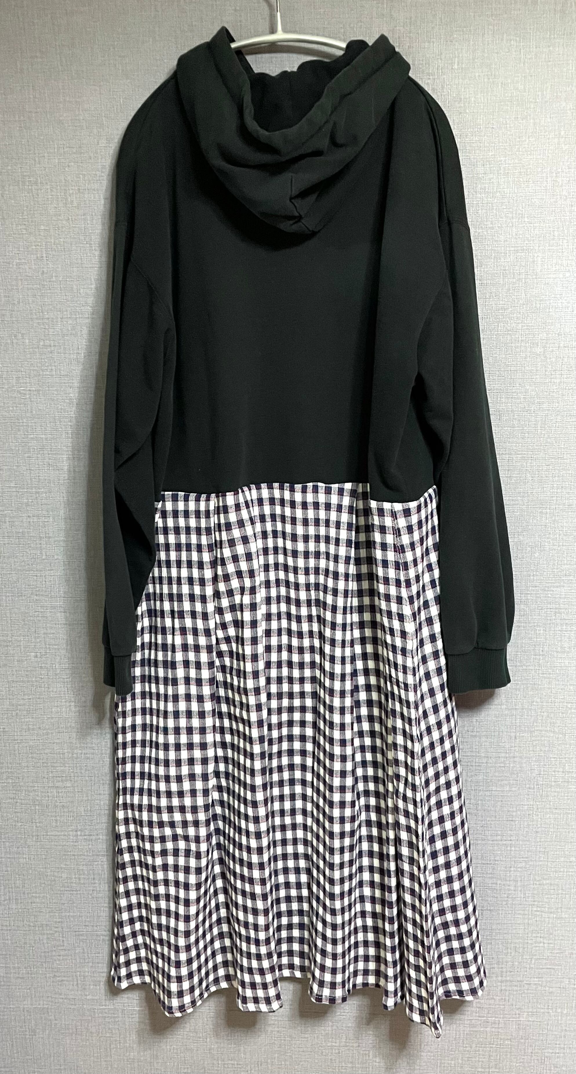 黒パーカーにピッコロを縫いつけ、かわいいチェック柄スカートを合わせています♬