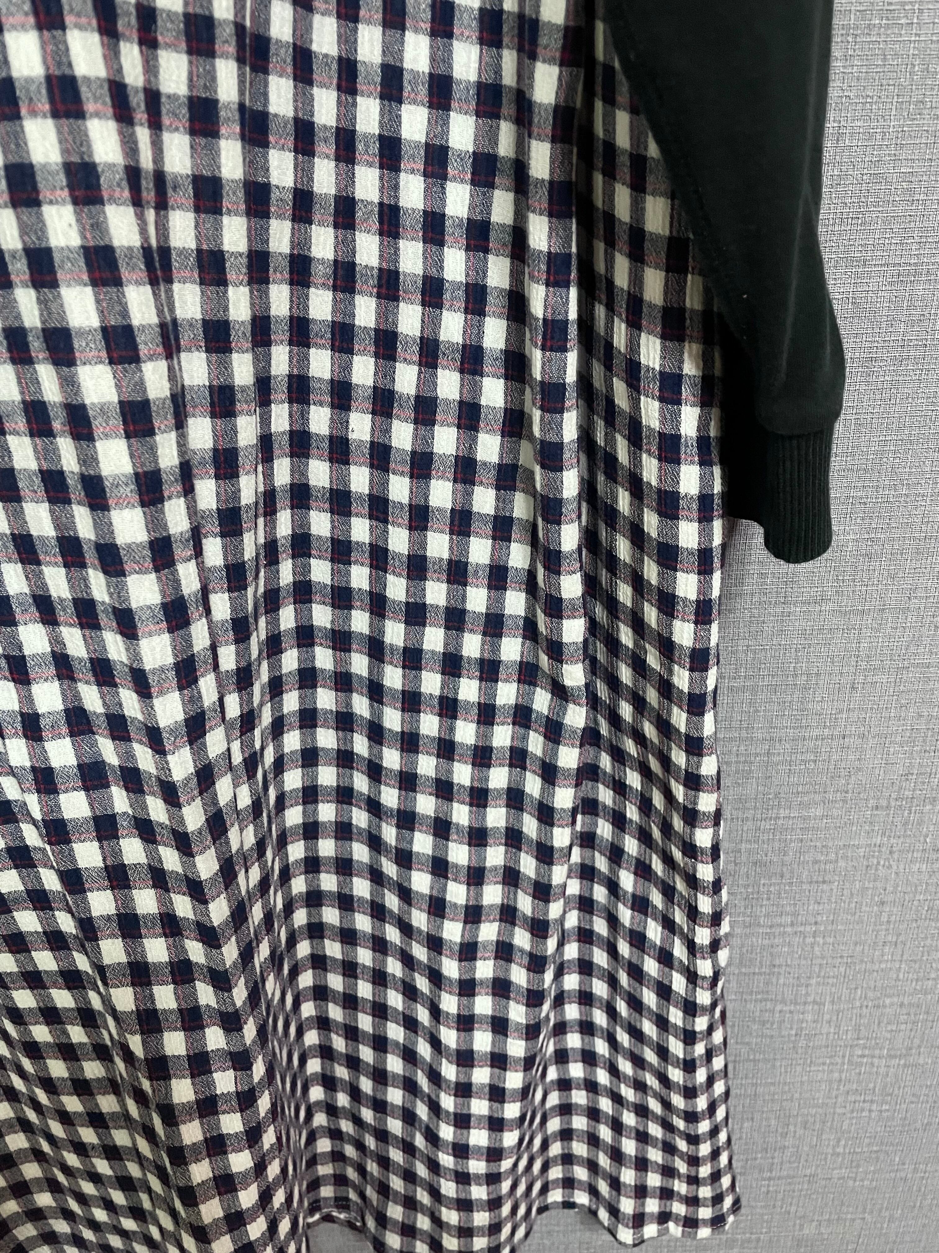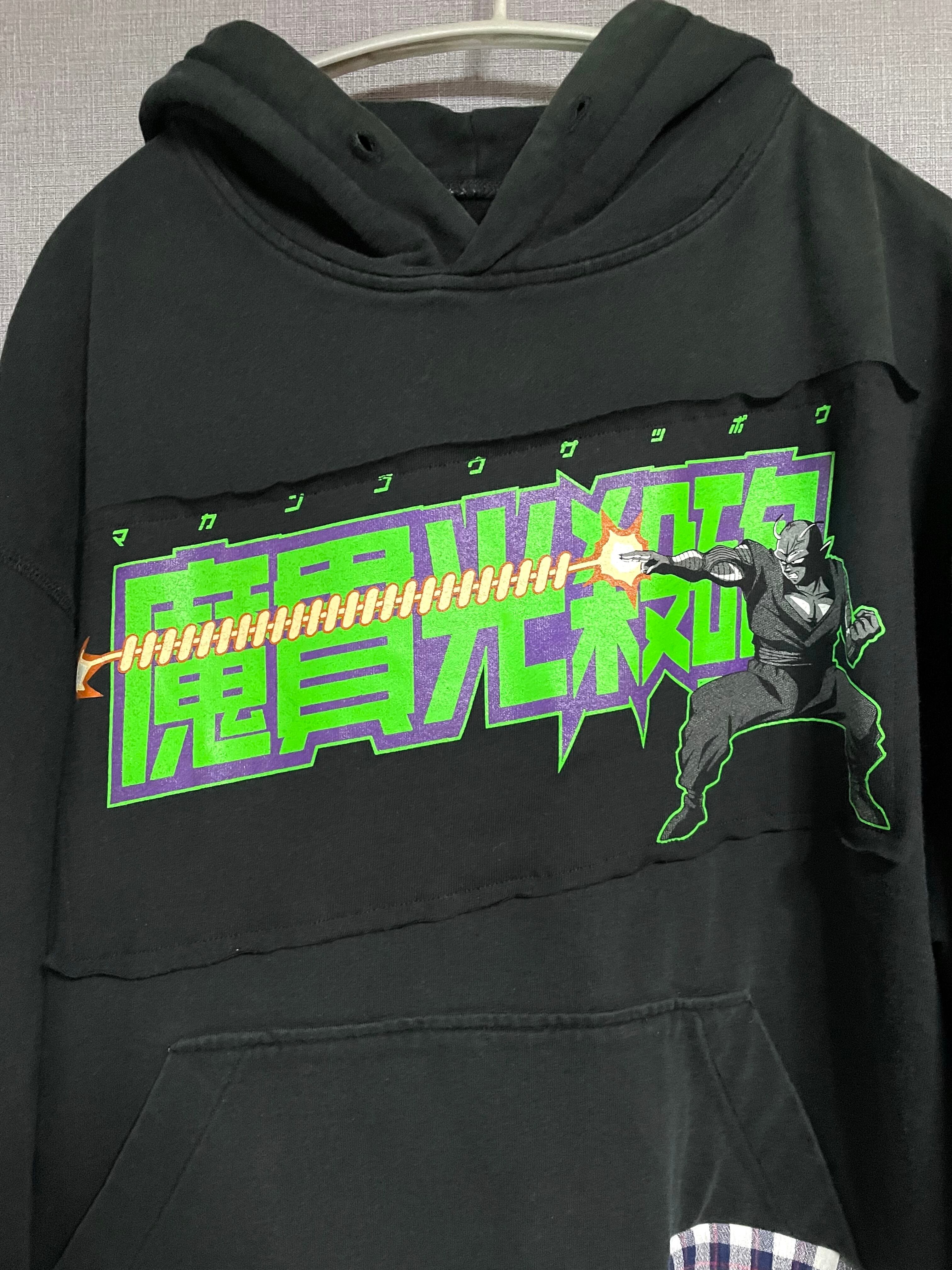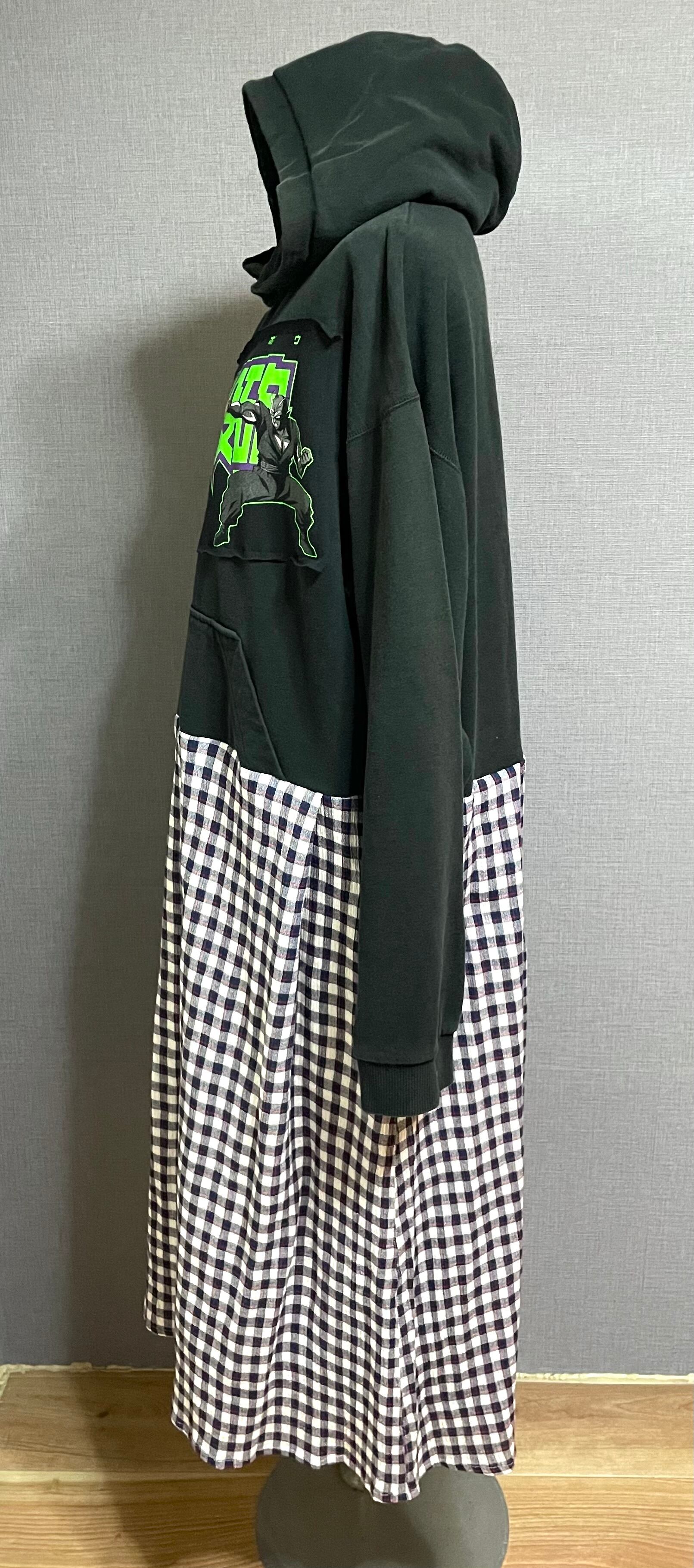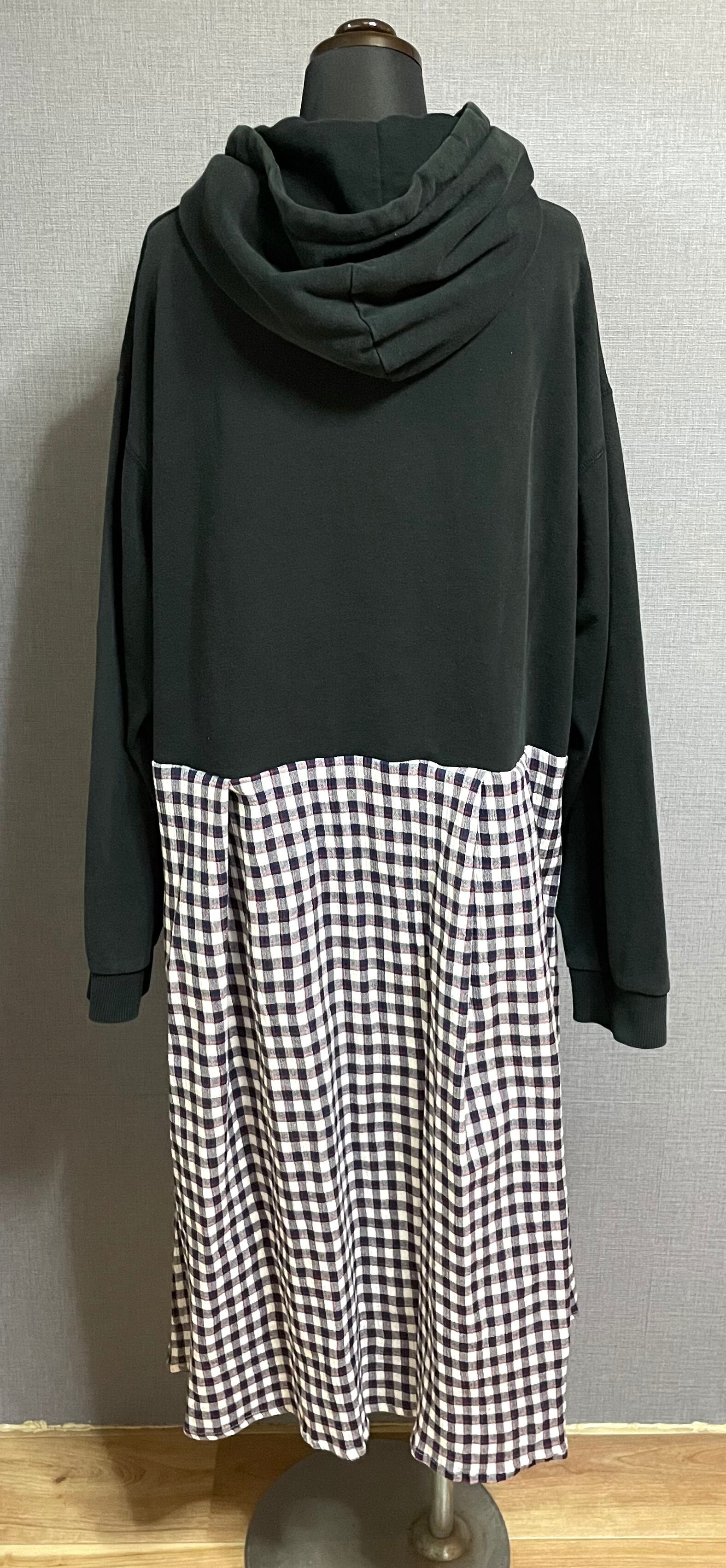 黒パーカーにピッコロを縫いつけ、かわいいチェック柄スカートを合わせています♬