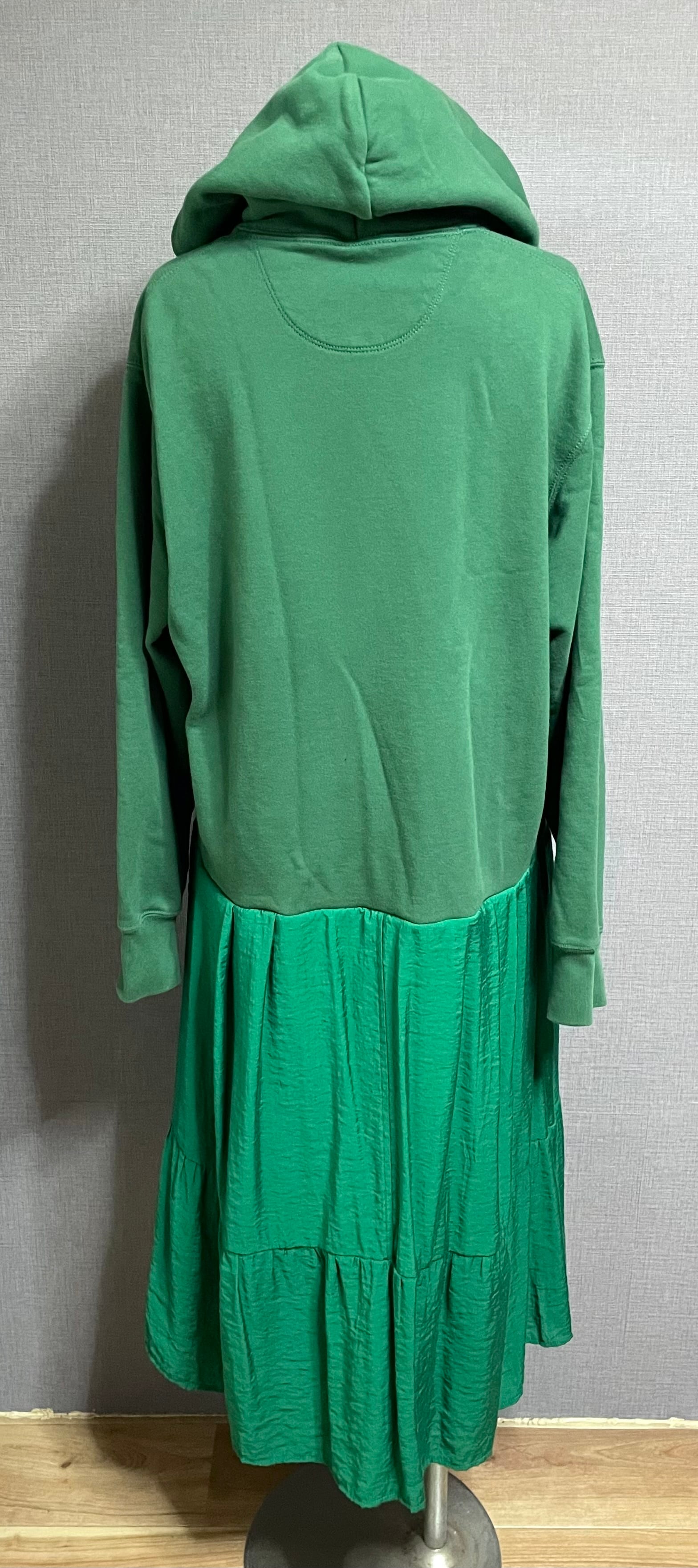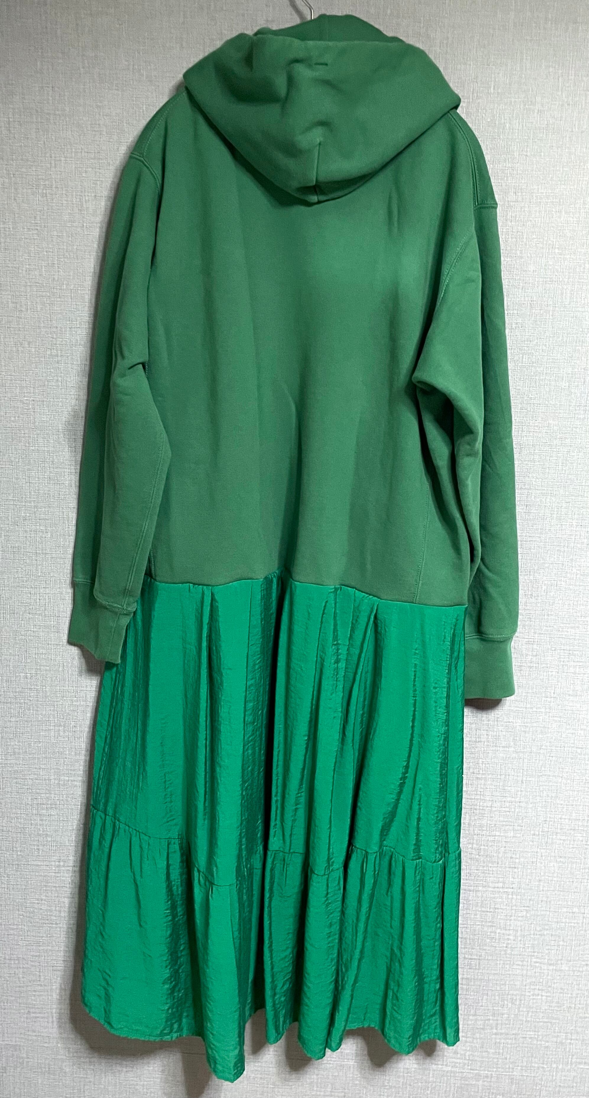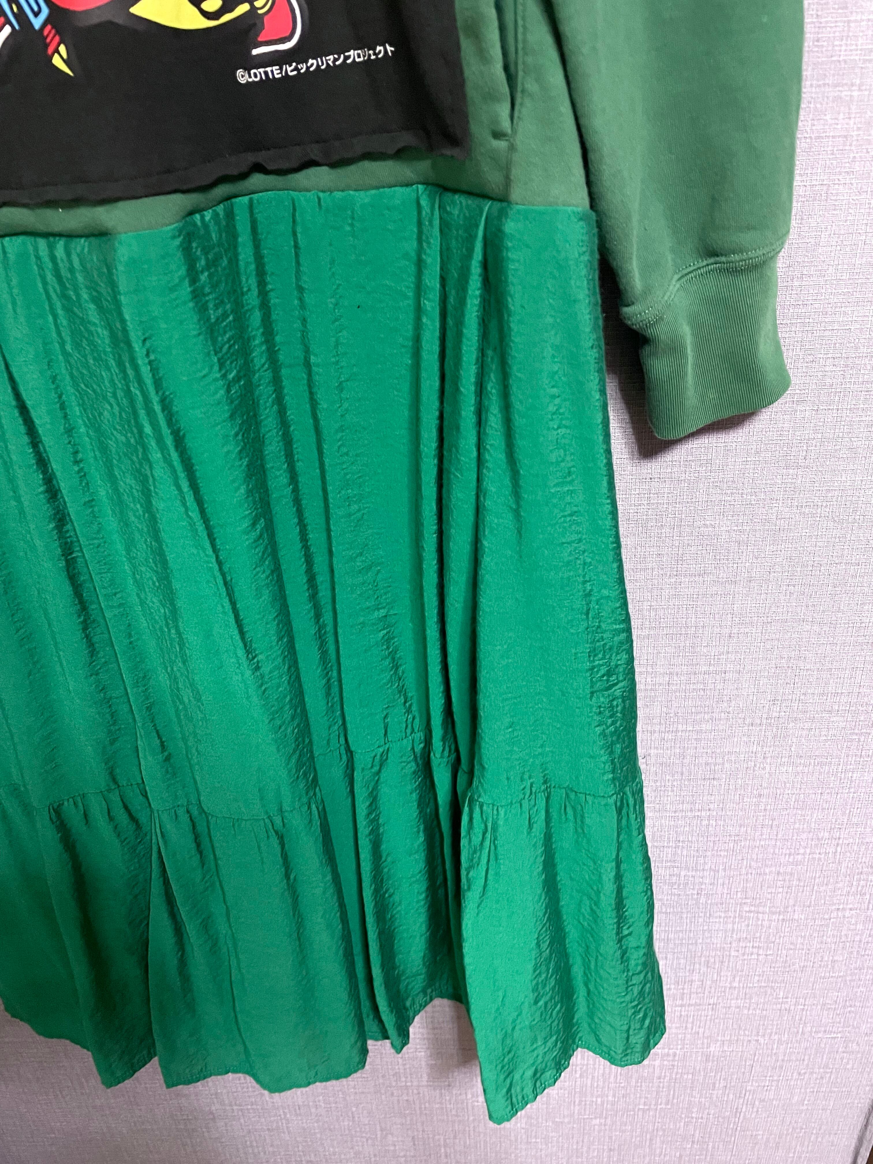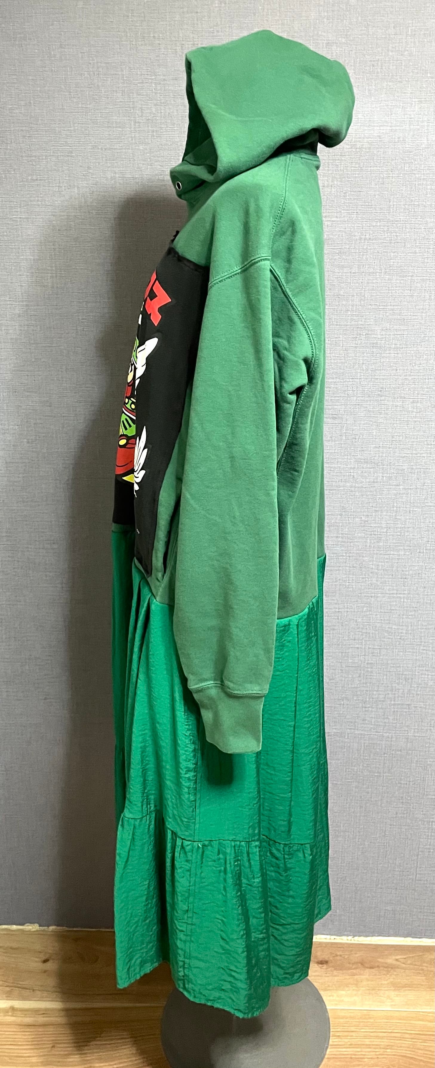 深緑パーカーに聖フェニックスを縫いつけ、緑スカートを合わせています♬
