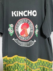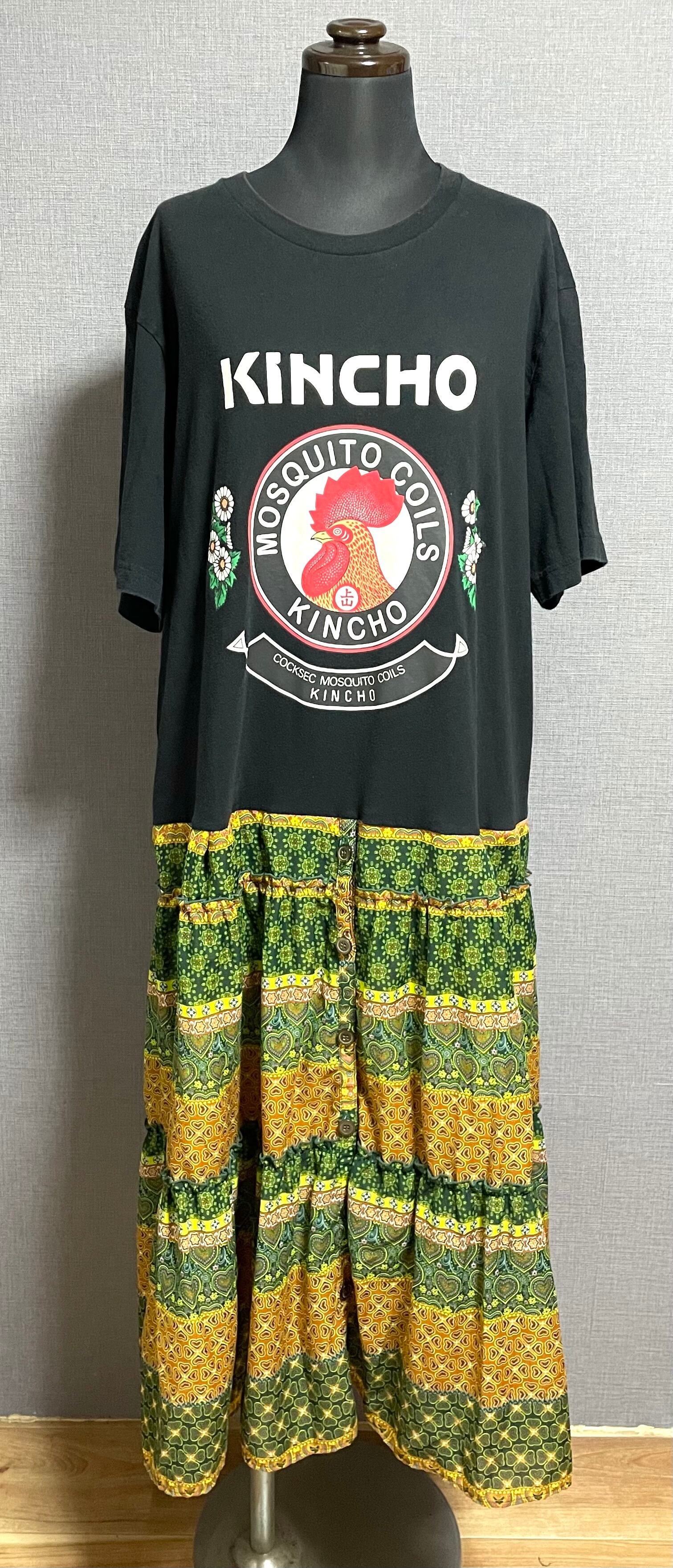 かっこいい金鳥プリント黒Tシャツに、アジアンテイストな柄スカートを合わせています♬