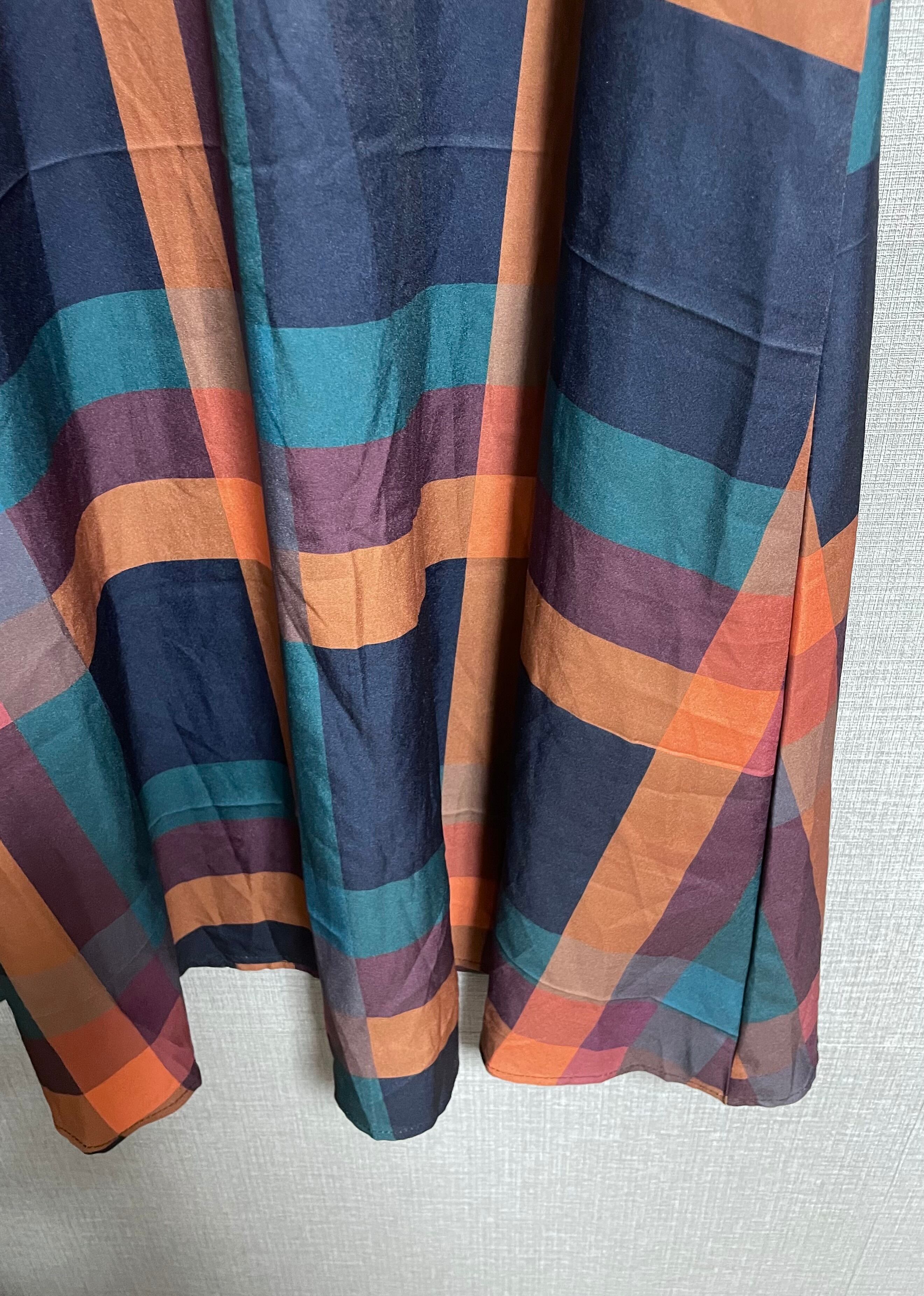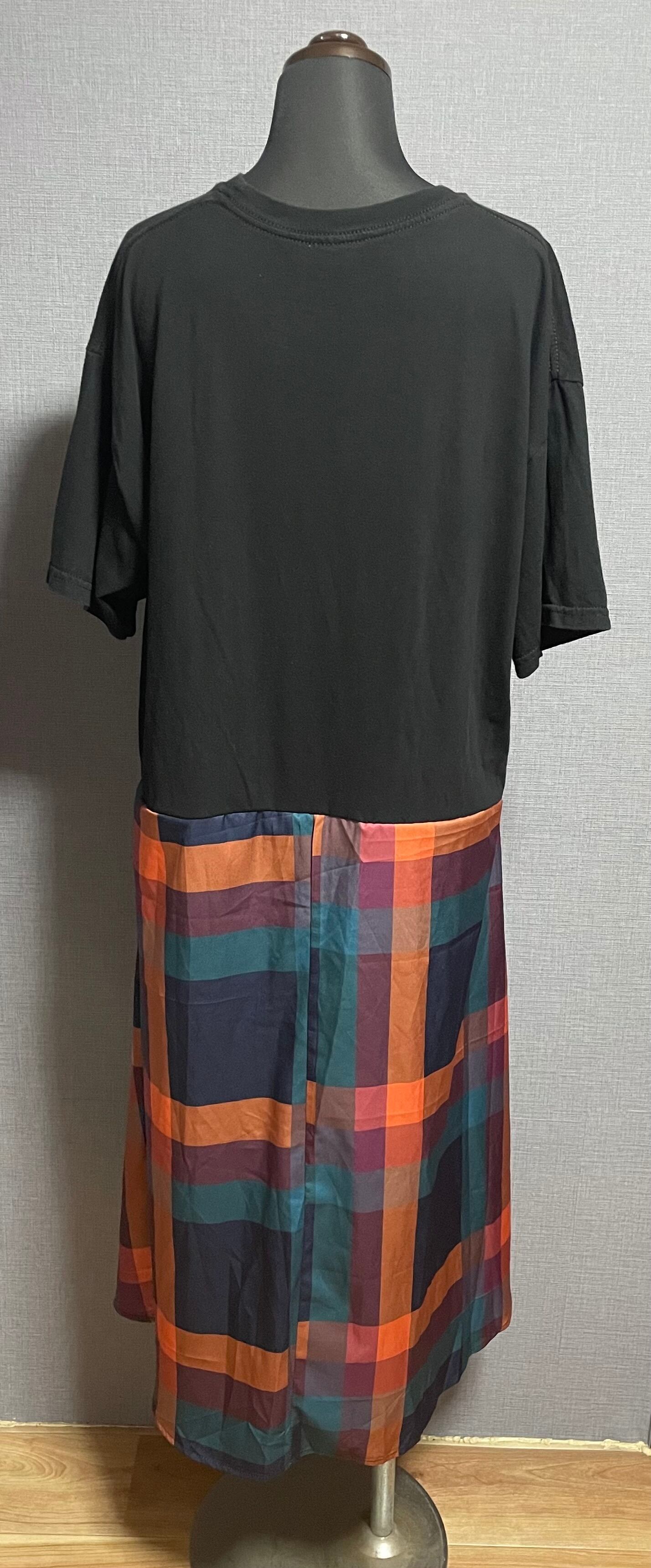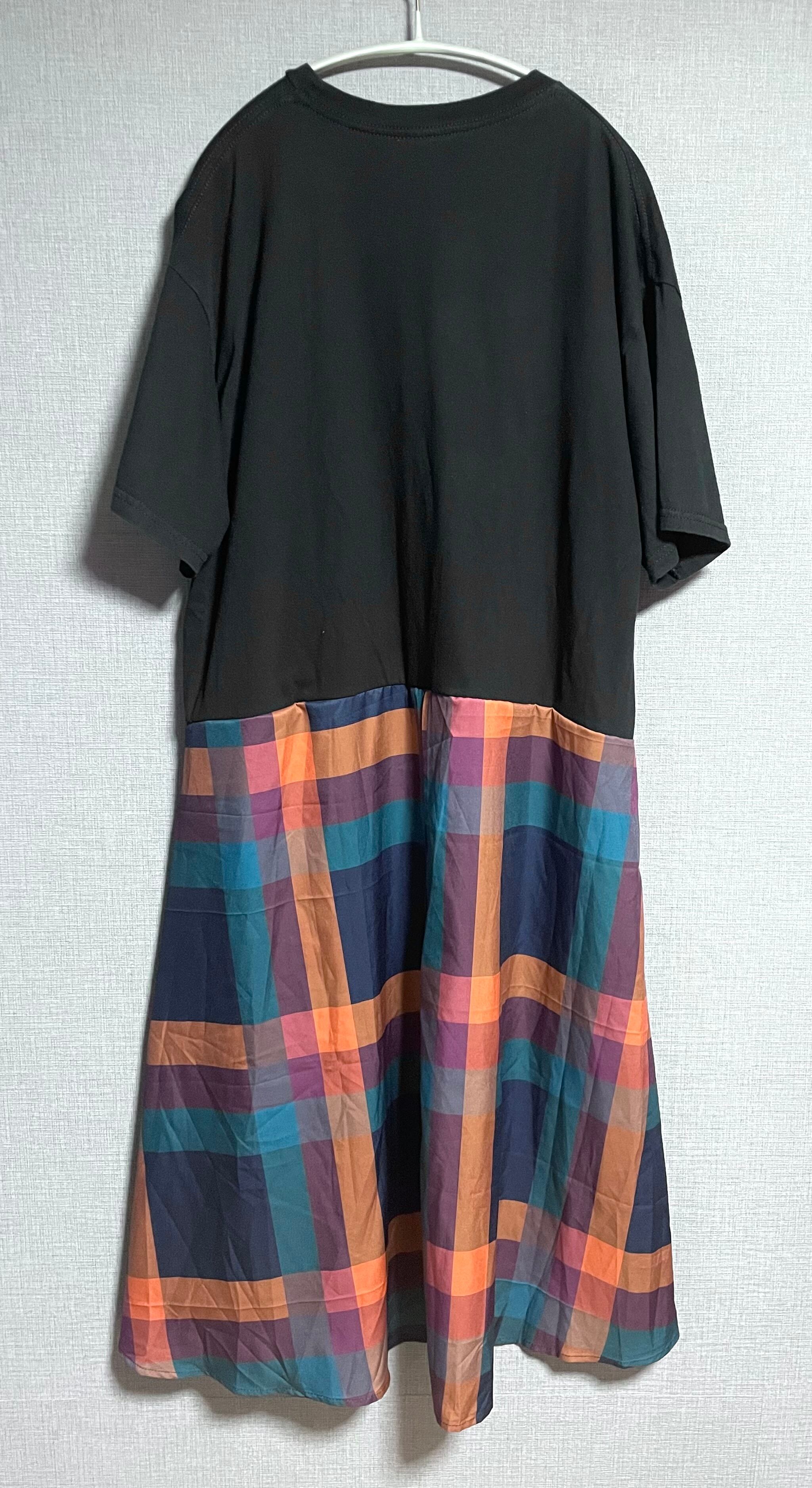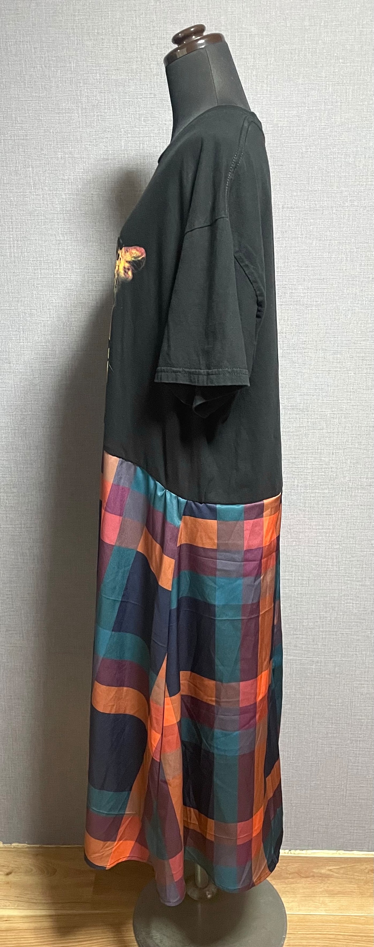 豹が素晴らしい黒Tシャツに、チェック柄スカートを合わせています♬