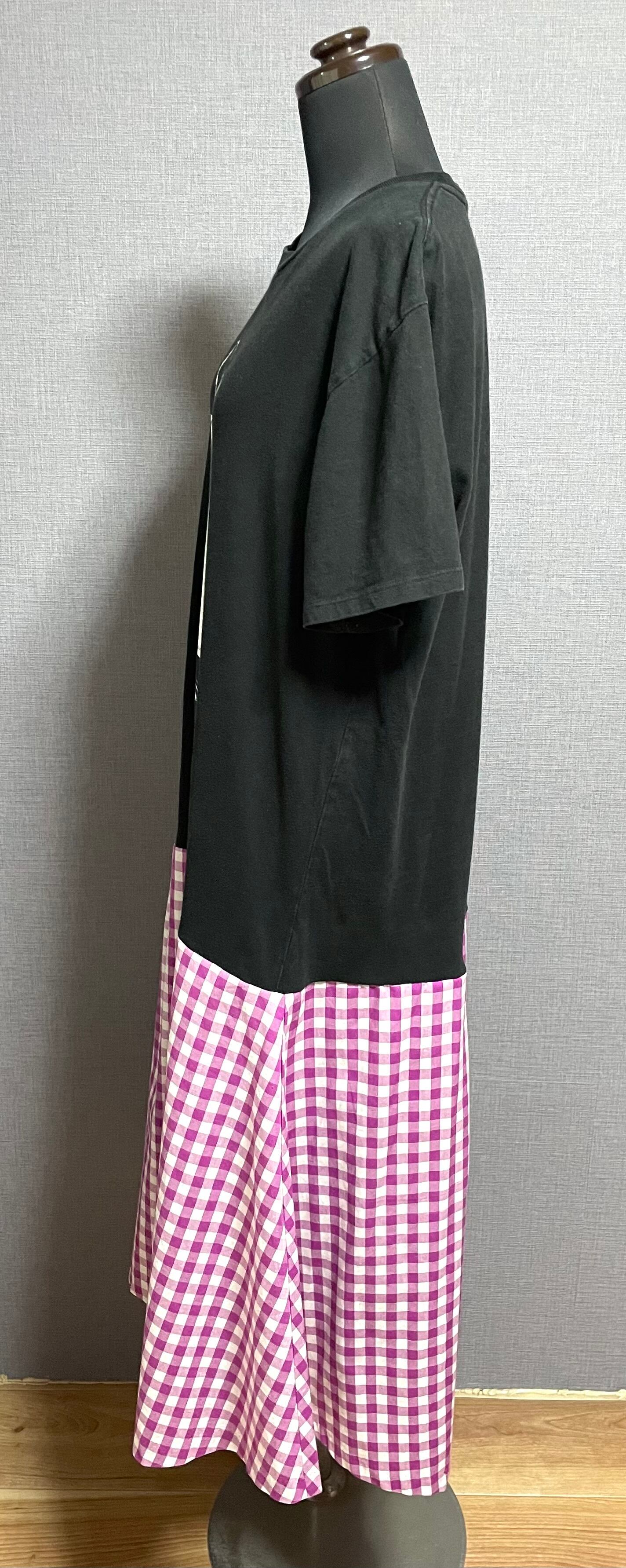メーテル黒Tシャツに、可愛らしい紫のチェック柄スカートを合わせています♬