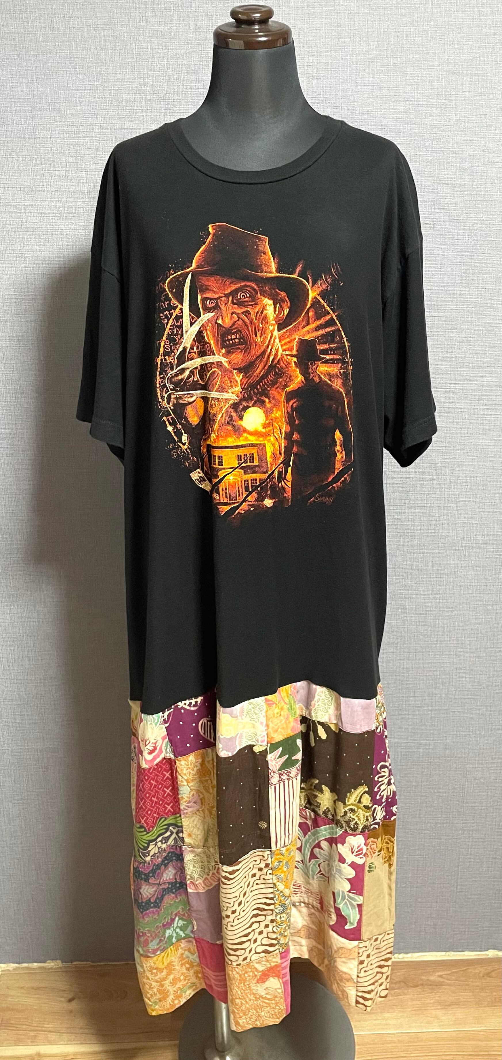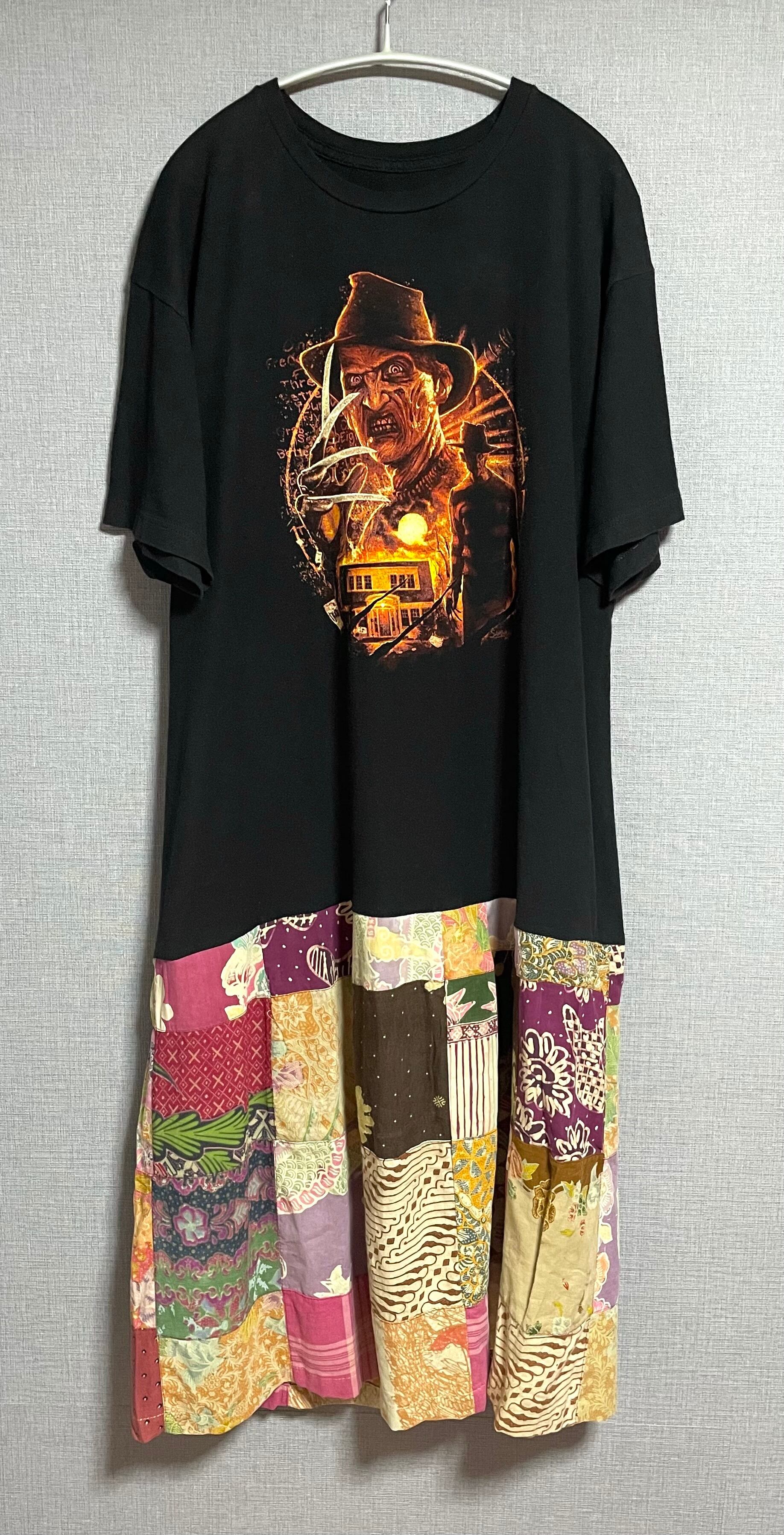フレディ黒Tシャツに、いろんな柄生地のパッチワークスカートを合わせています♬