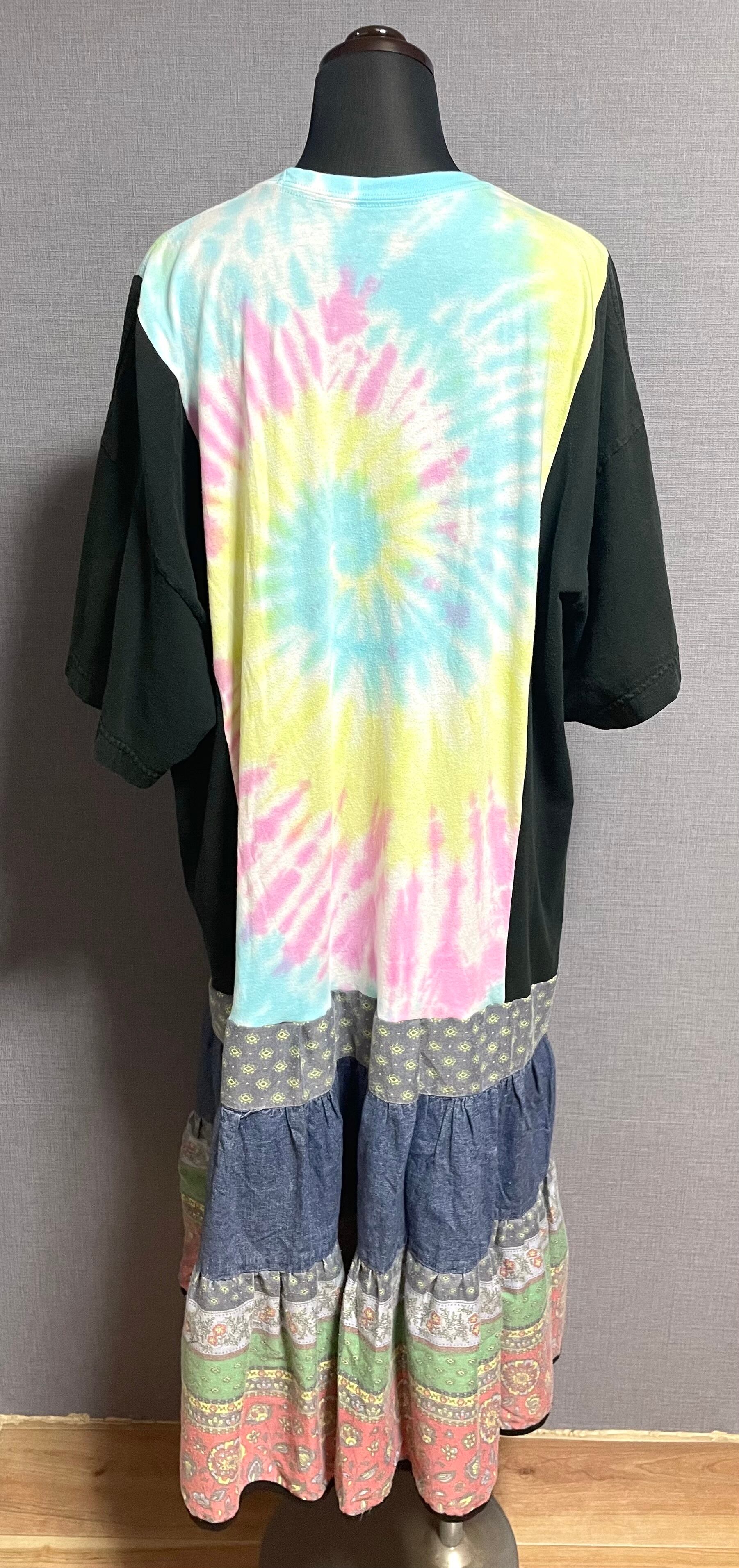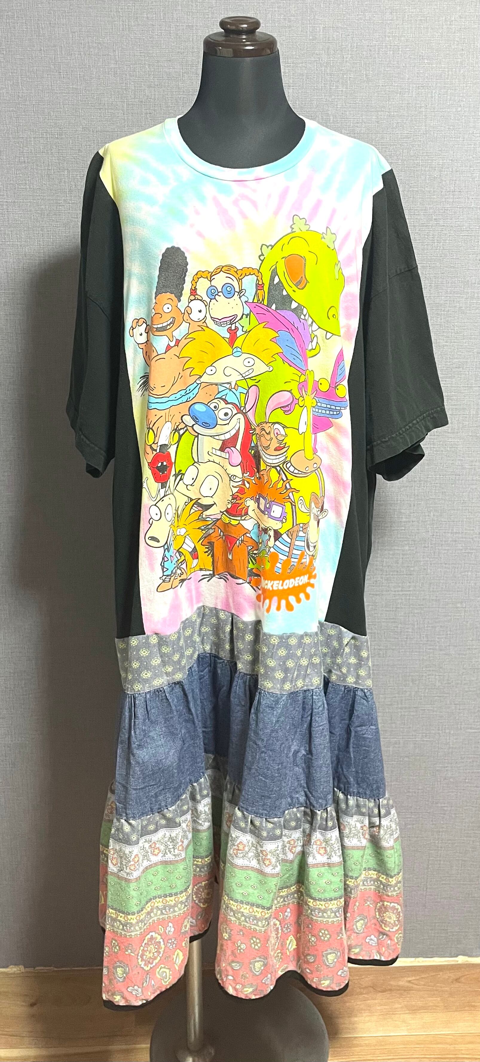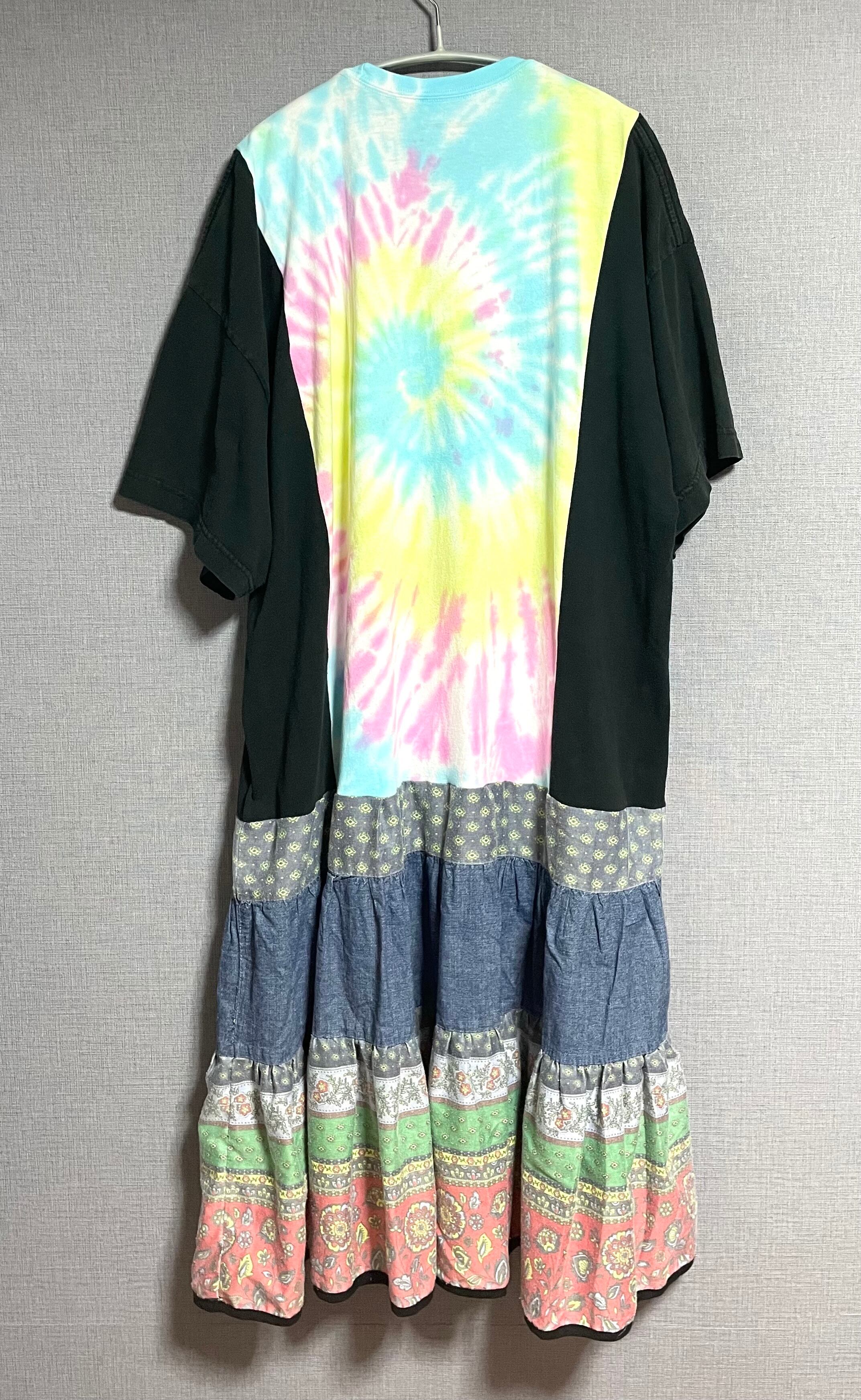 とても可愛いタイダイTシャツに黒Tシャツ袖を合わせ、フリルのスカートを合わせています♬
