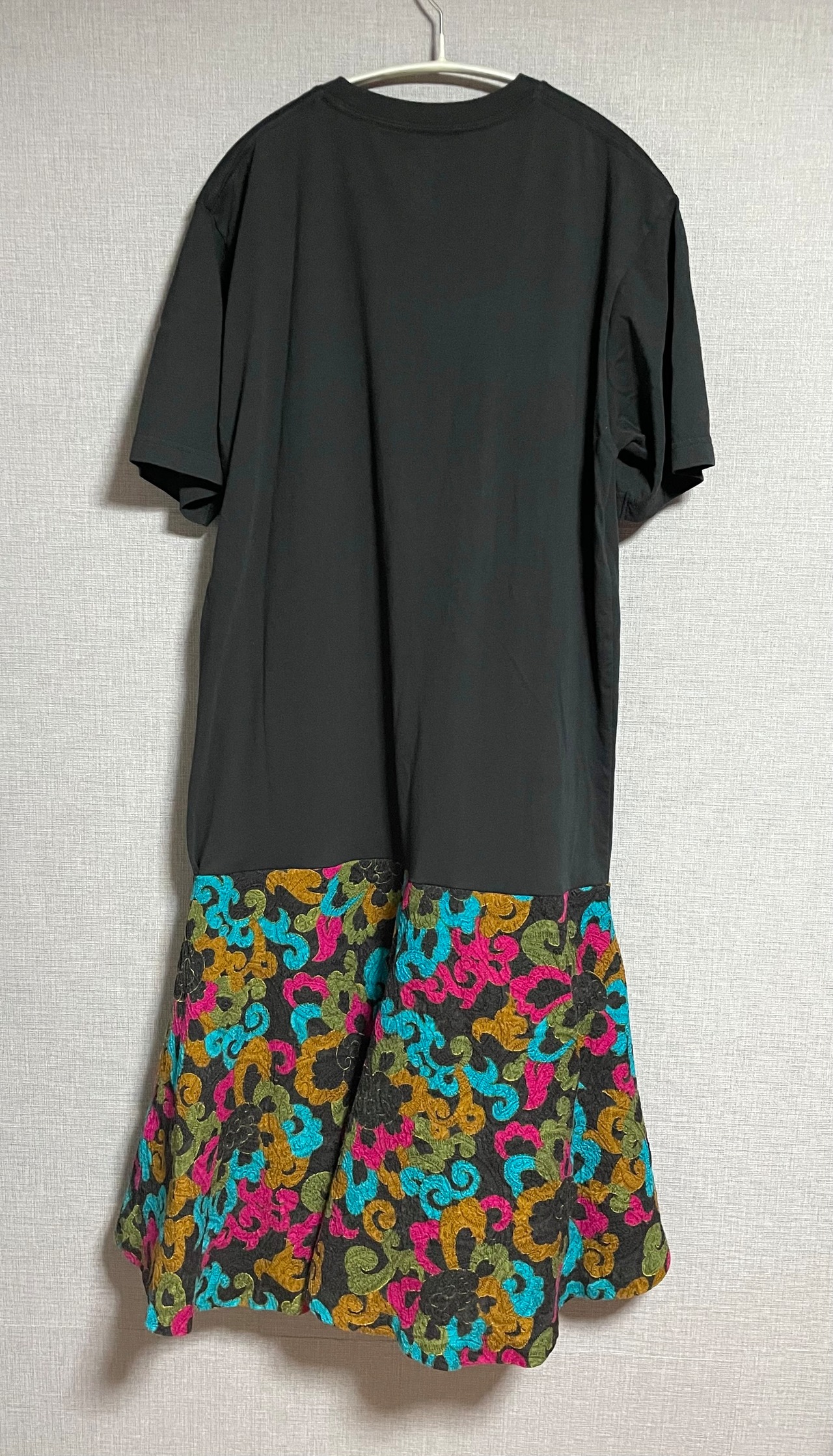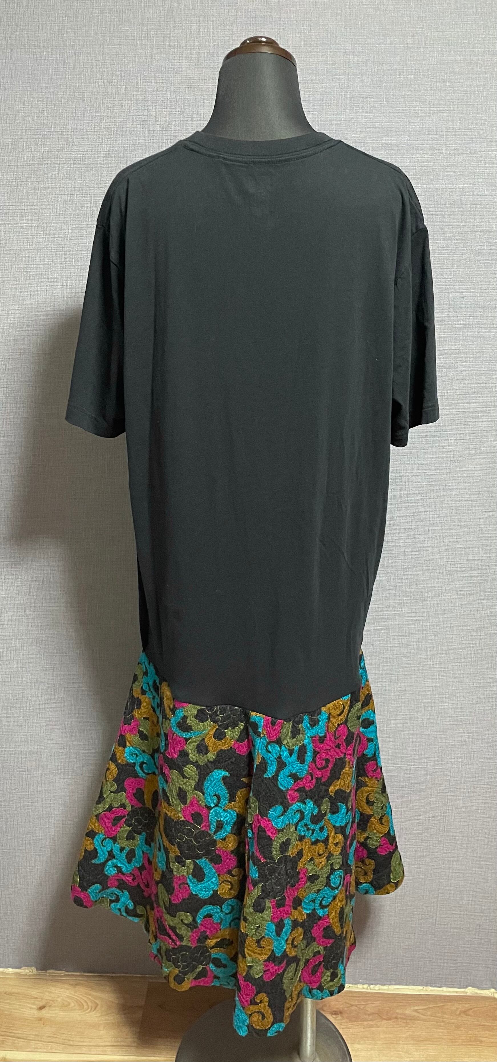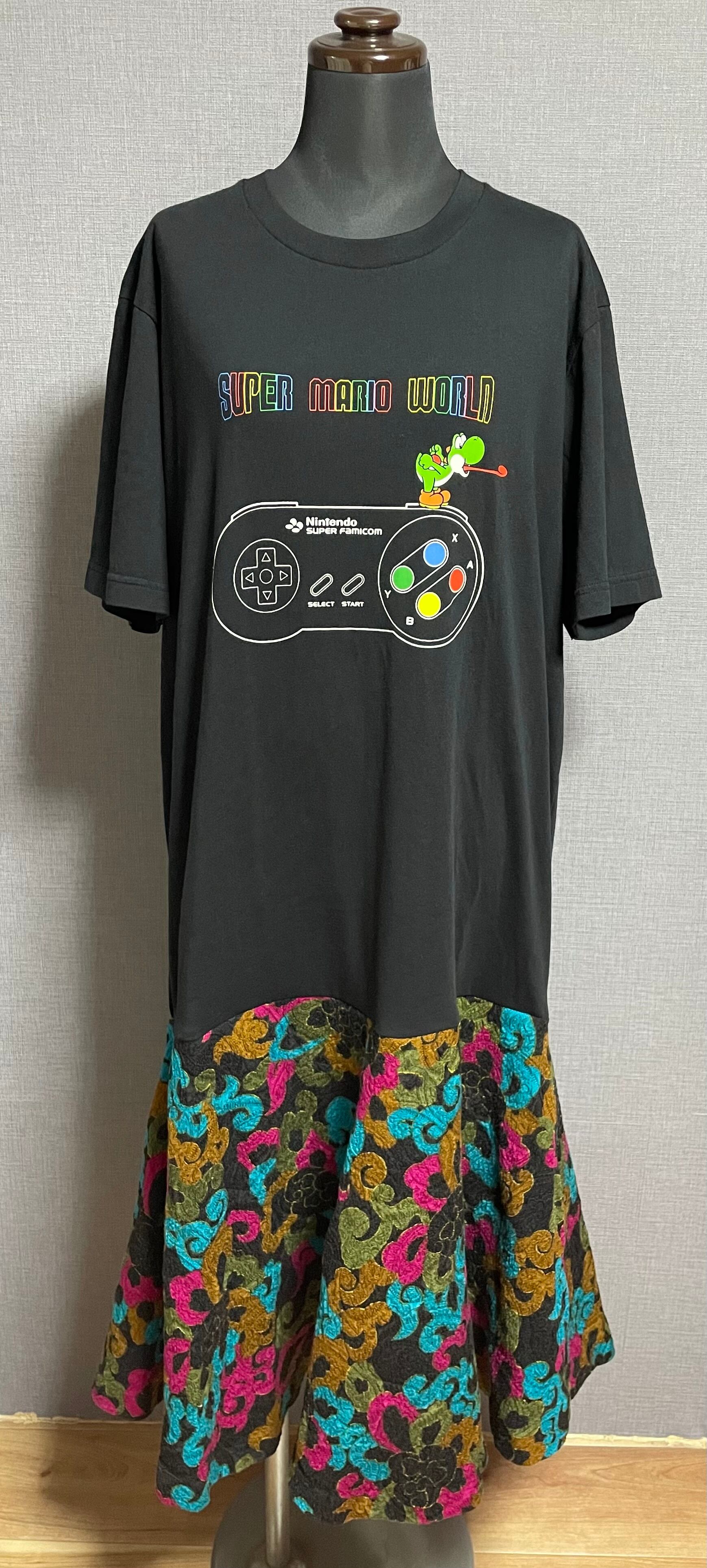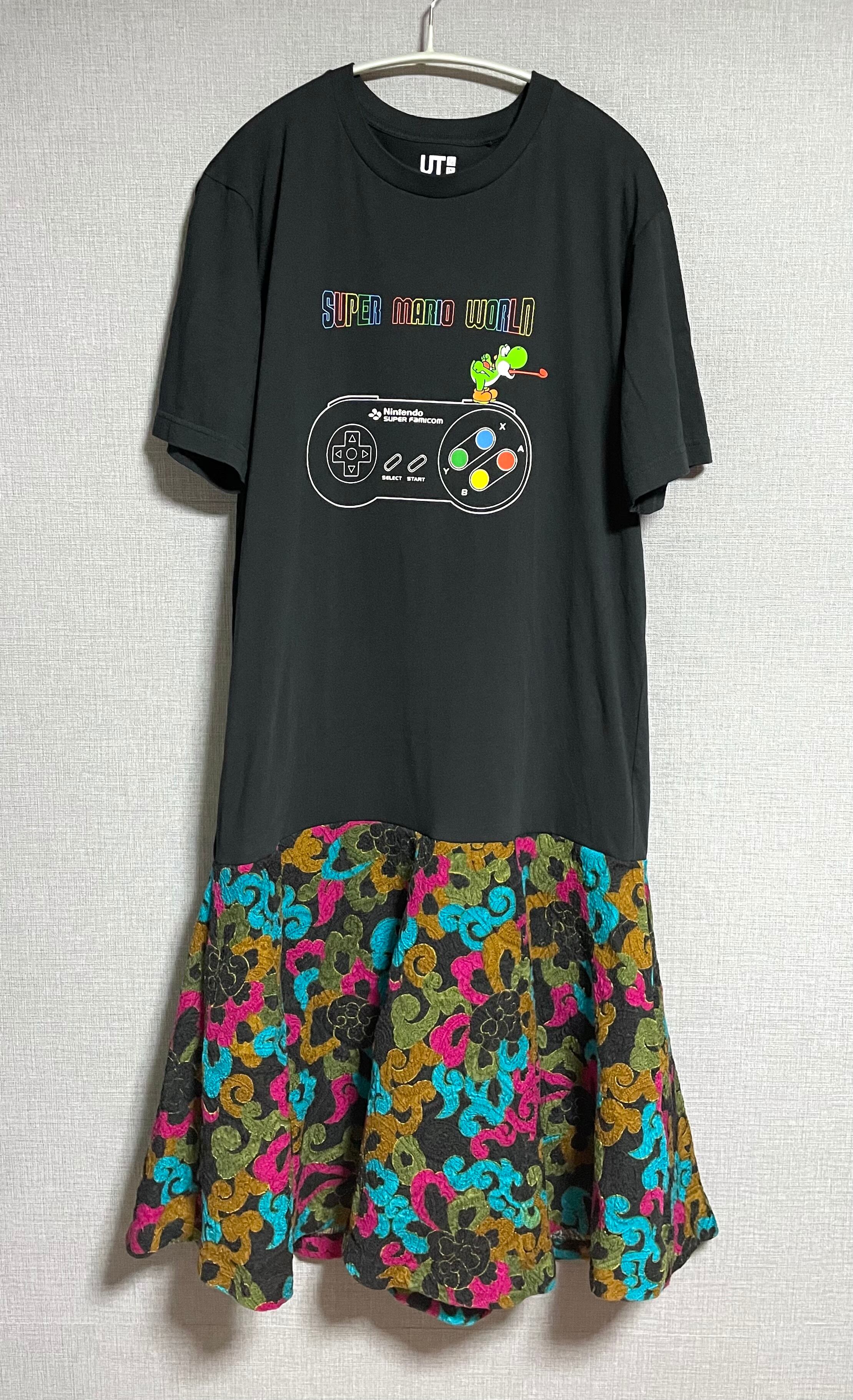 ヨッシー黒Tシャツに、レトロなスカートを合わせています♬