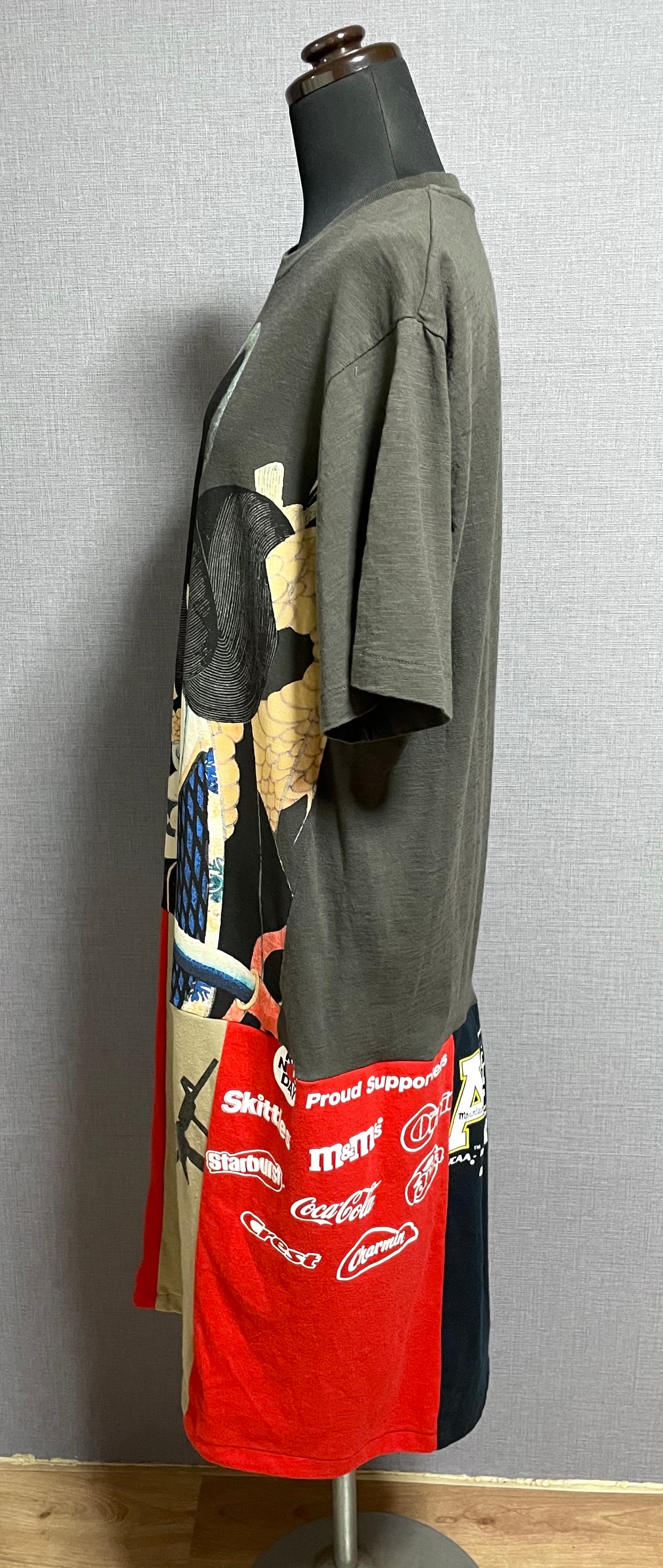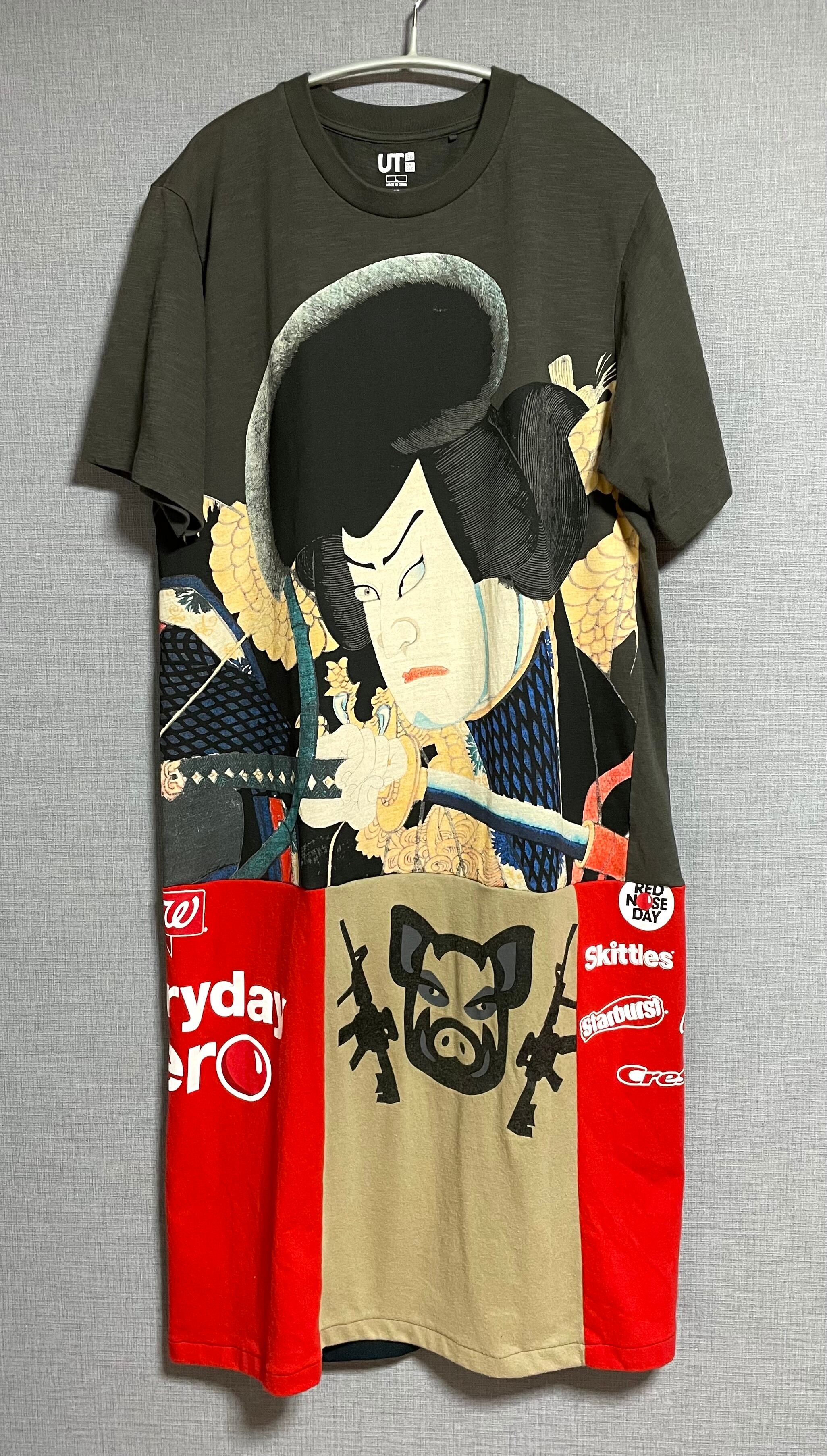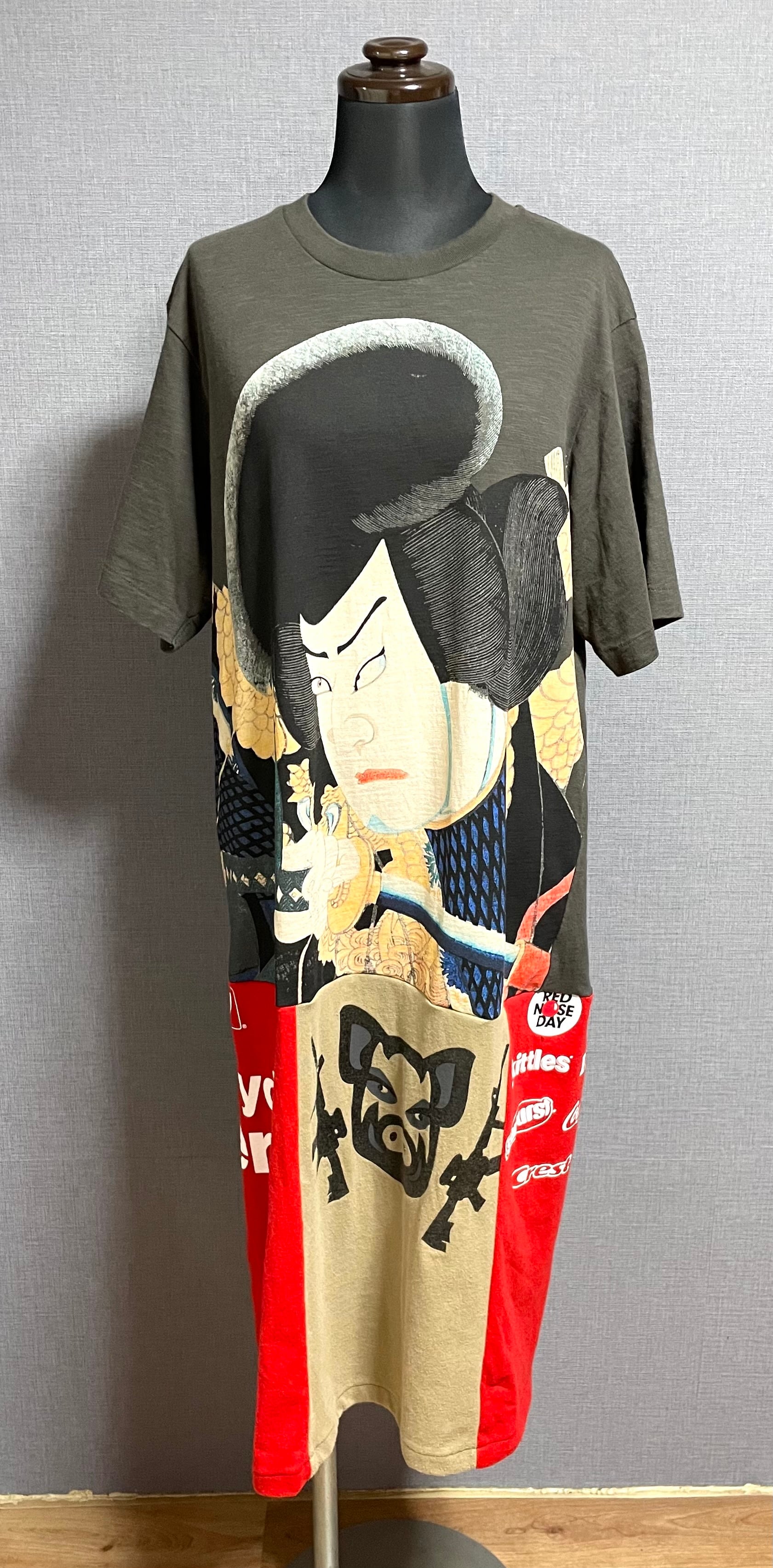 おしゃれな歌舞伎Tシャツに、いろんなTシャツで作ったスカートを合わせています♬