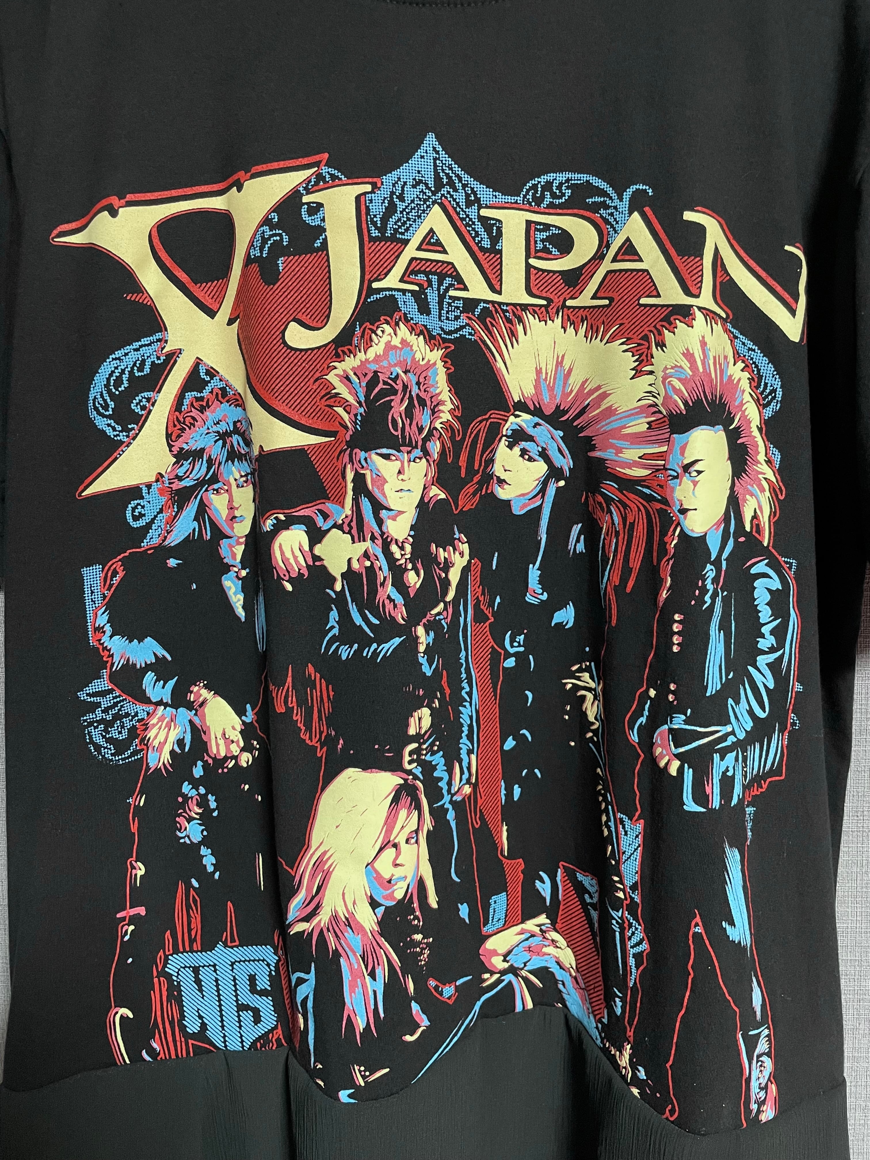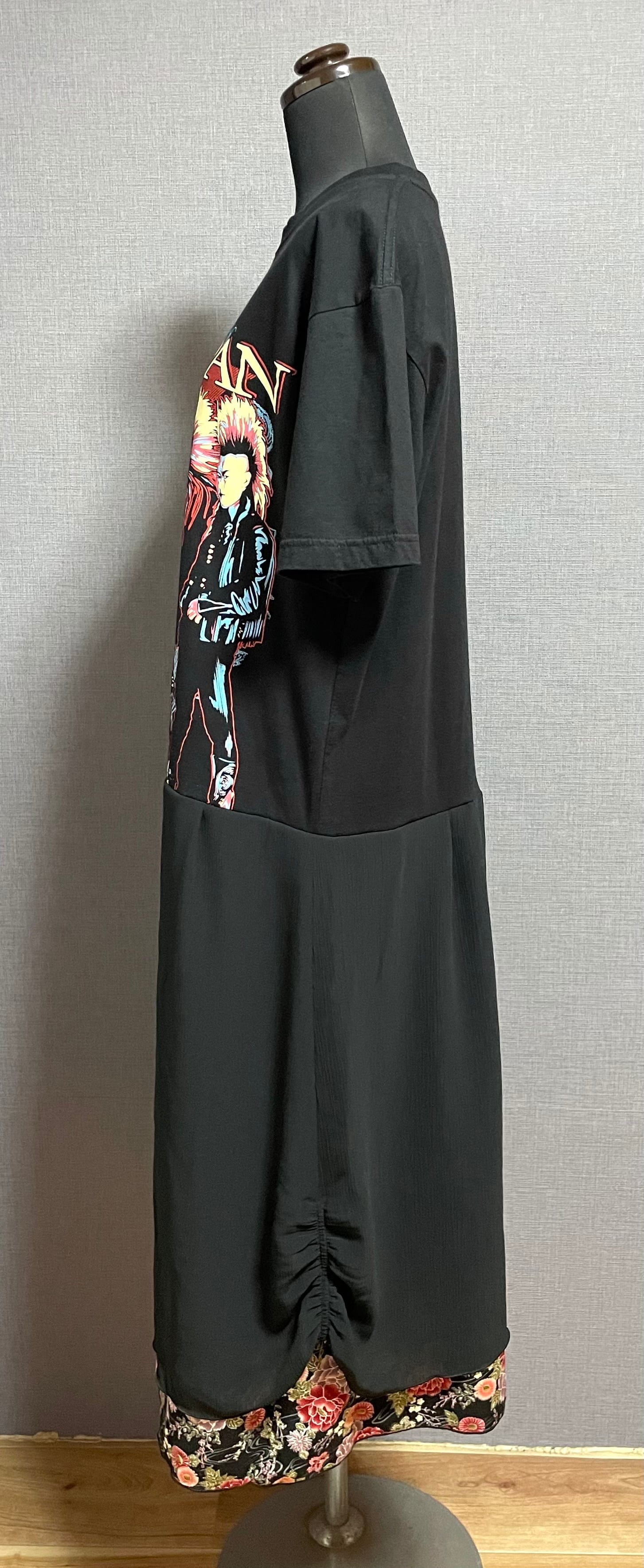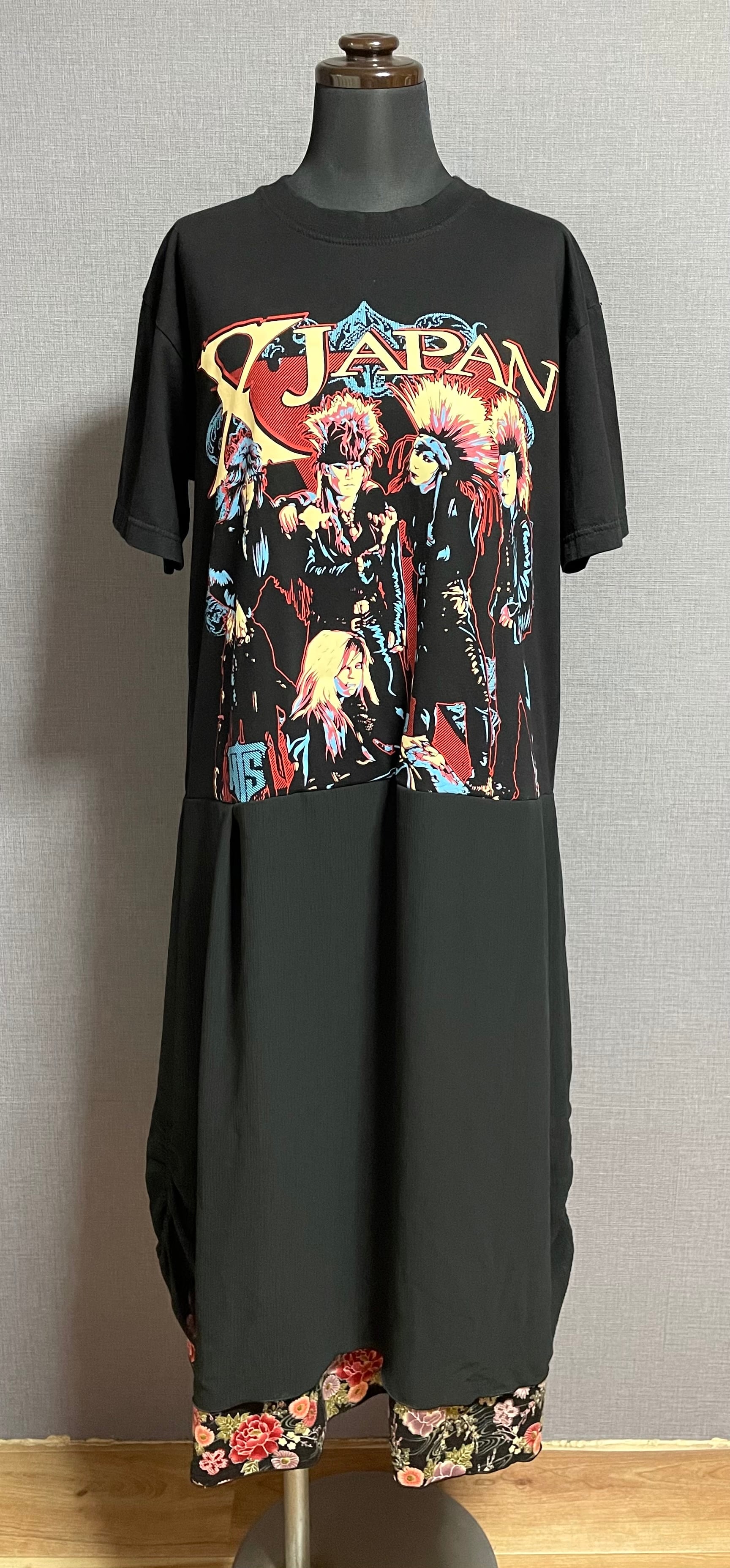 素晴らしい黒Tシャツに、和柄スカートを合わせています♬