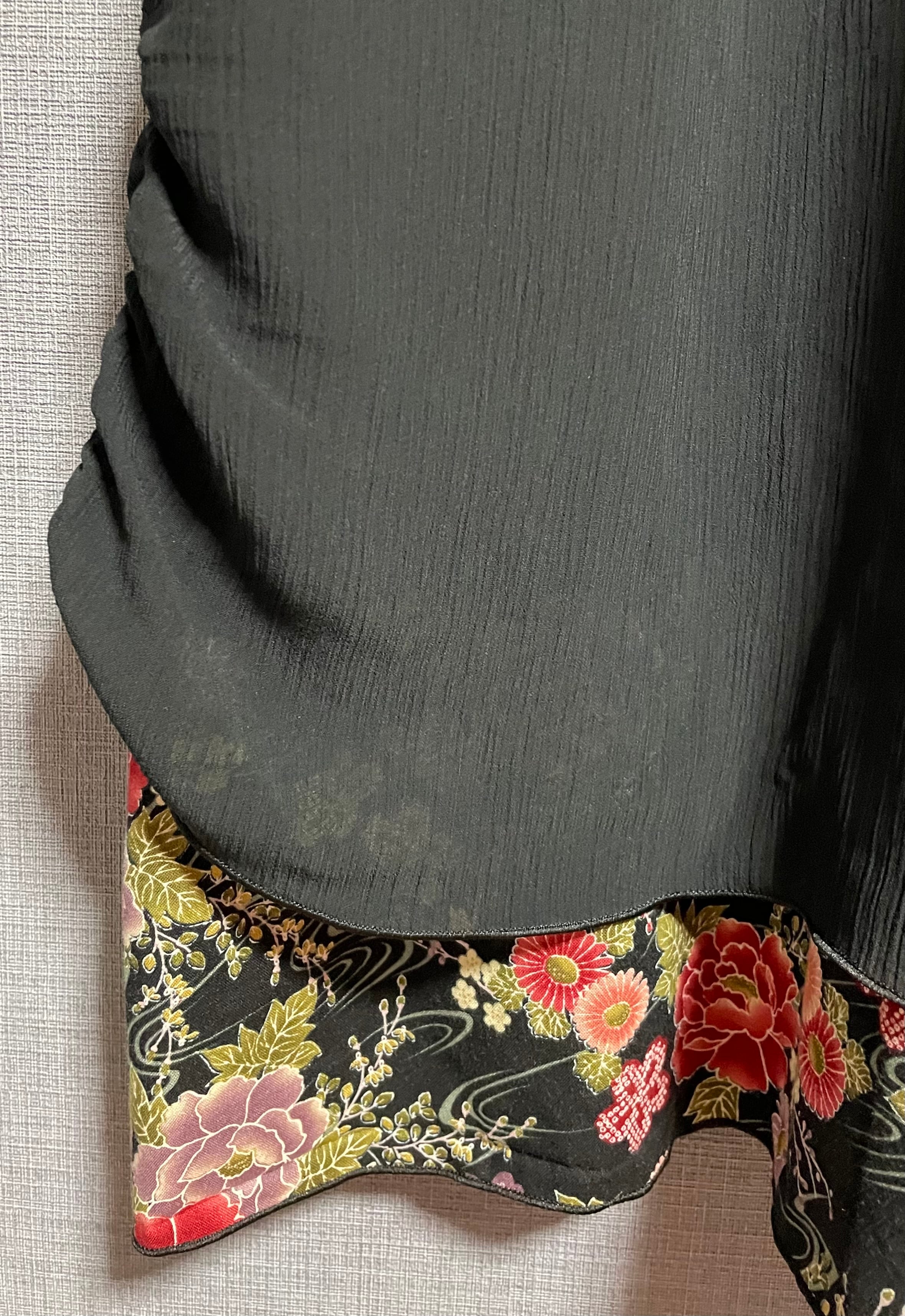 スカートは、シフォン生地で裏地の裾が和柄になったデザインです。