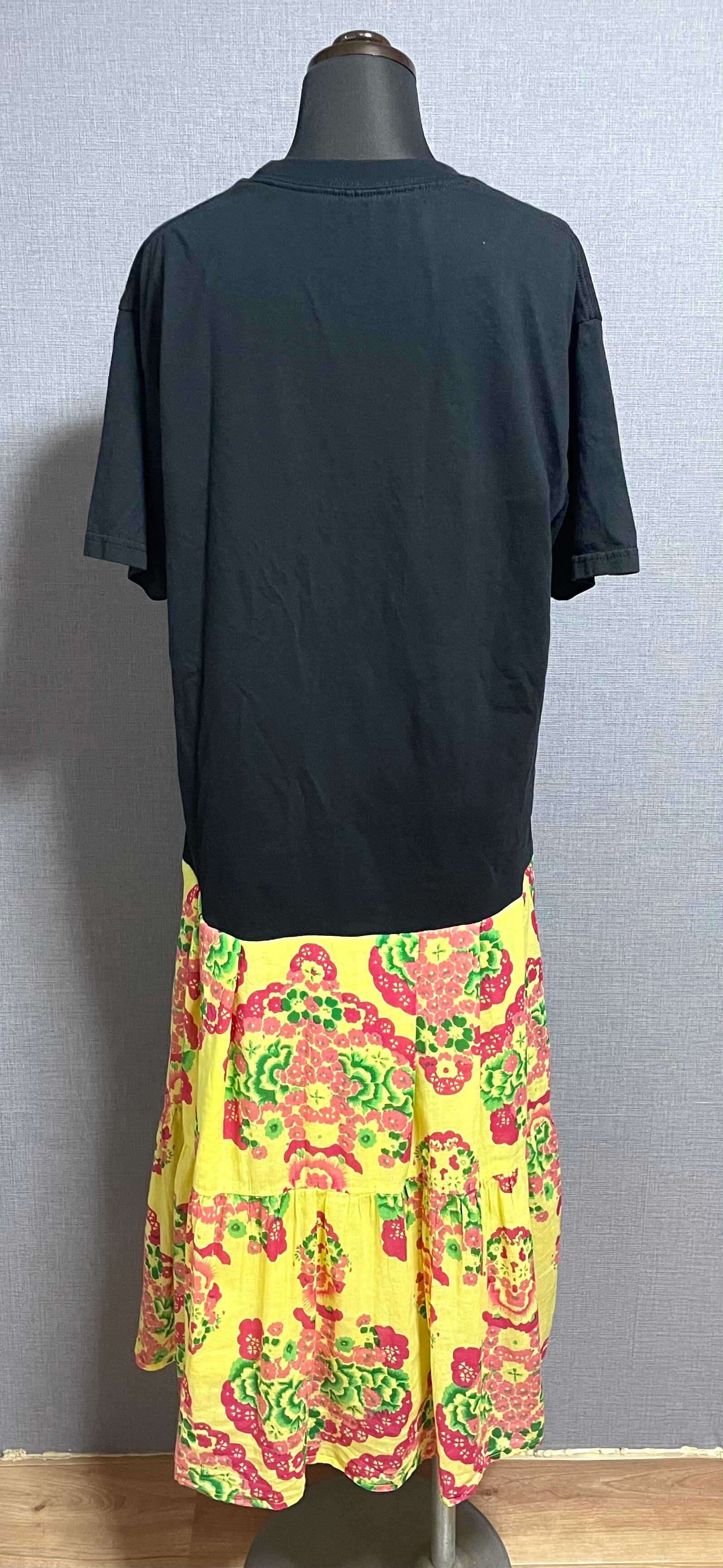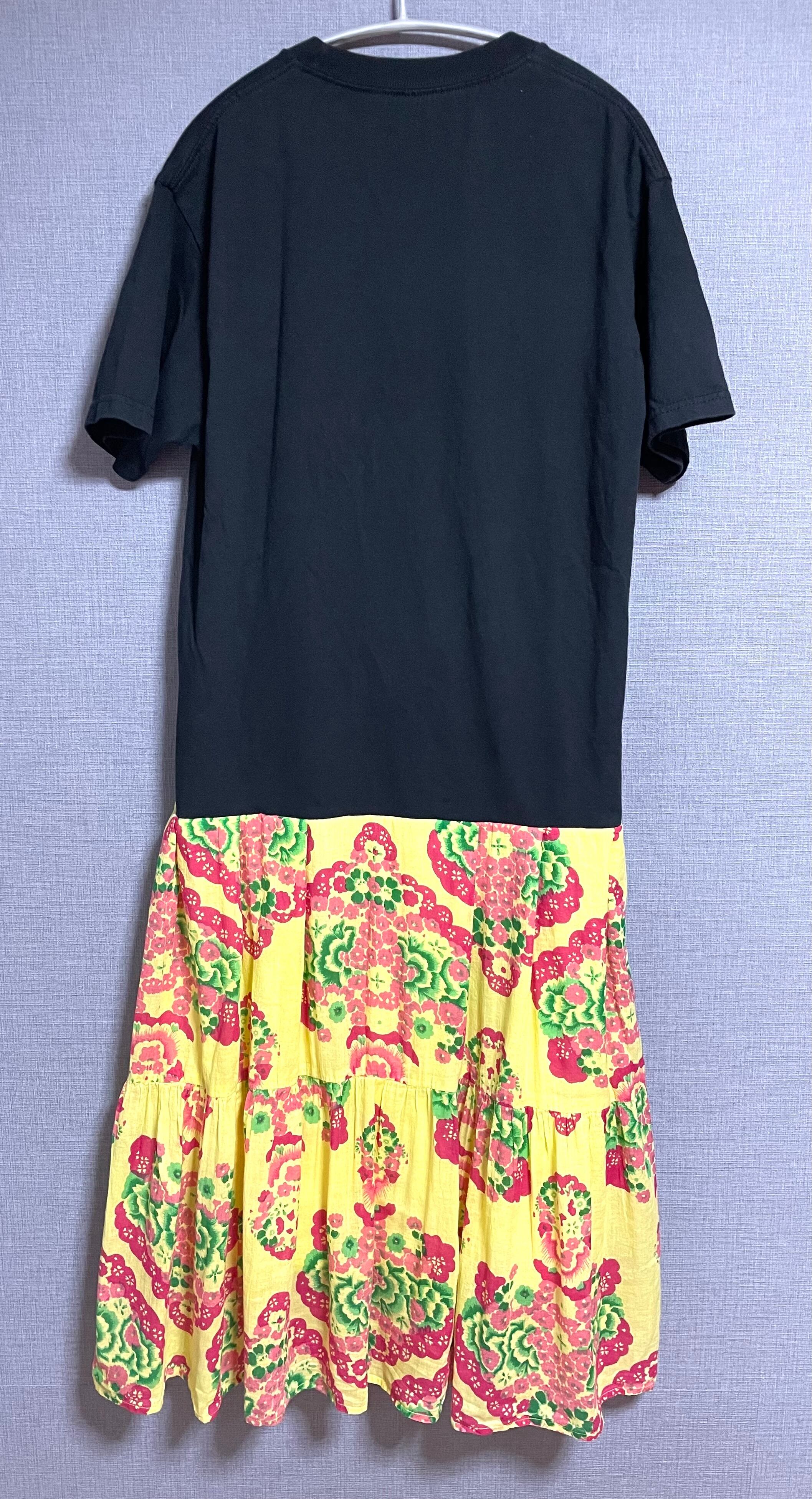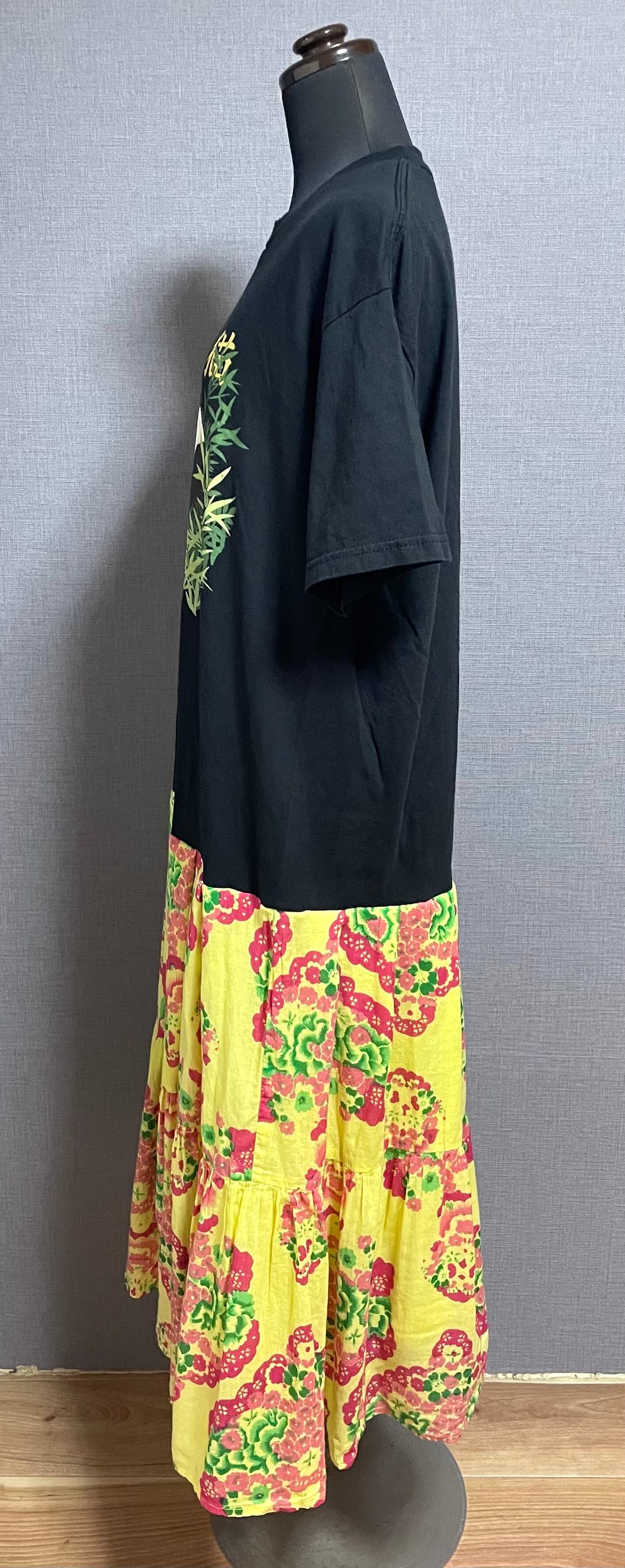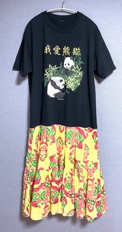 仲良しパンダ黒Tシャツに、黄色の柄スカートを合わせています♬