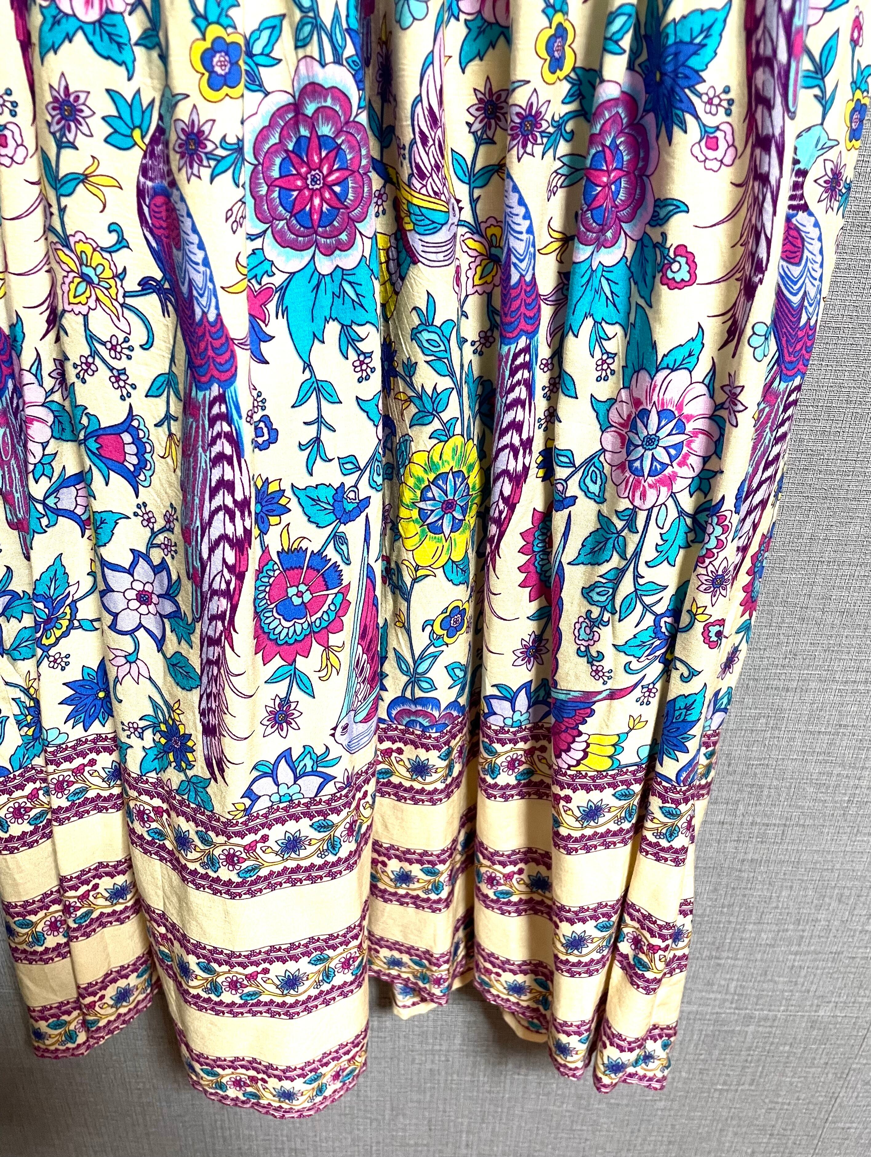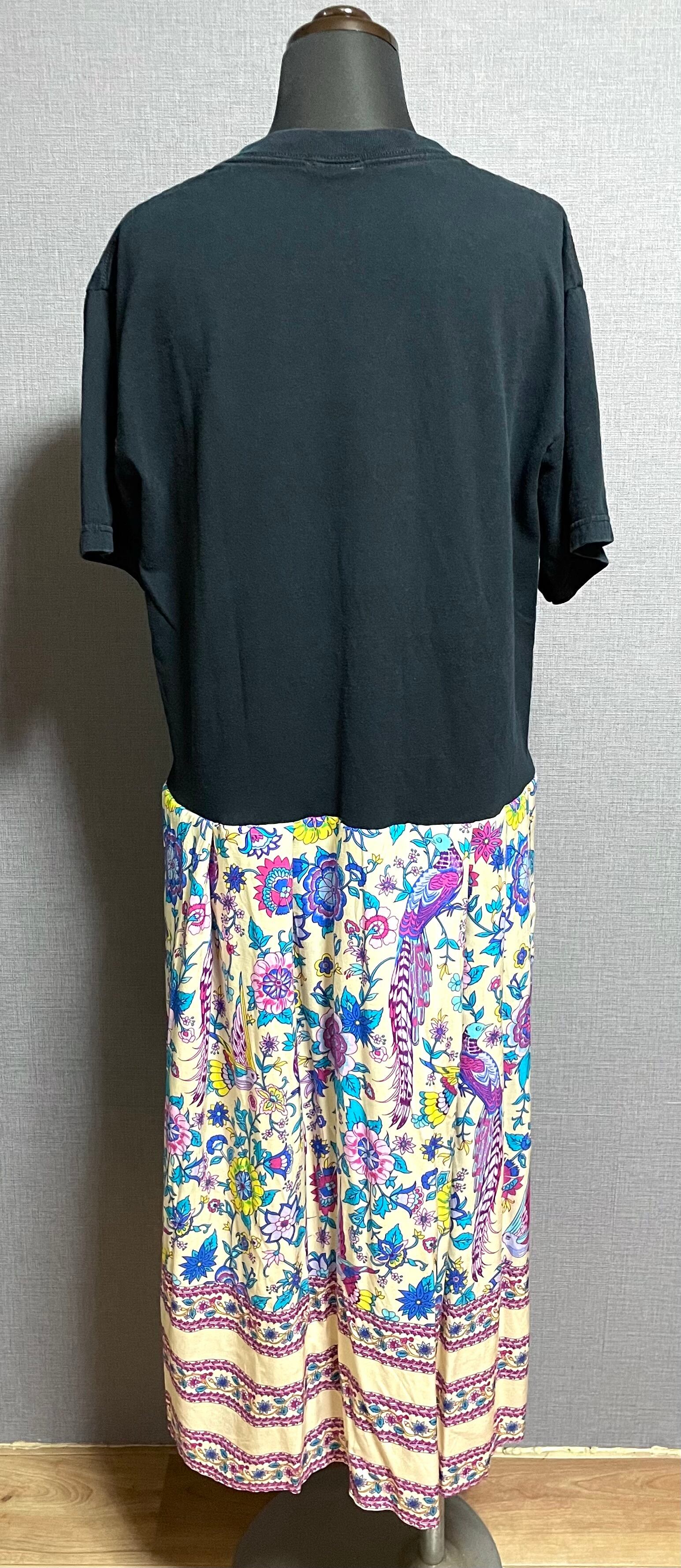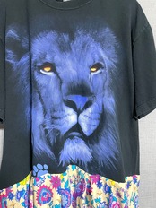 青ライオンの黒Tシャツに、鳥などの柄スカートを合わせています♬